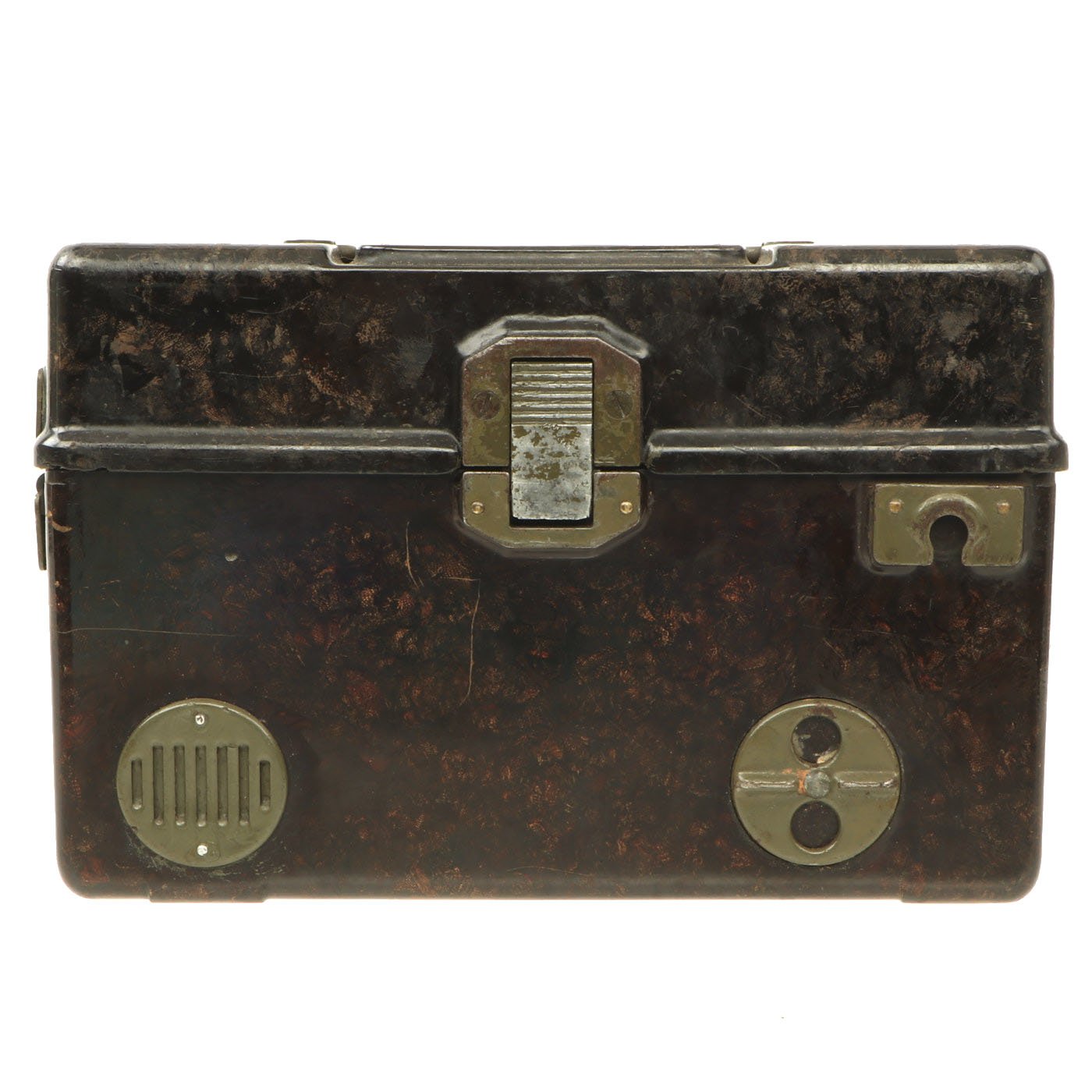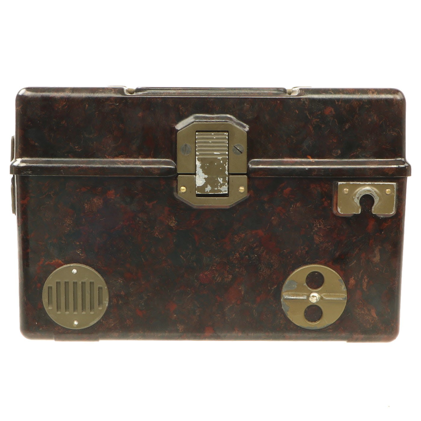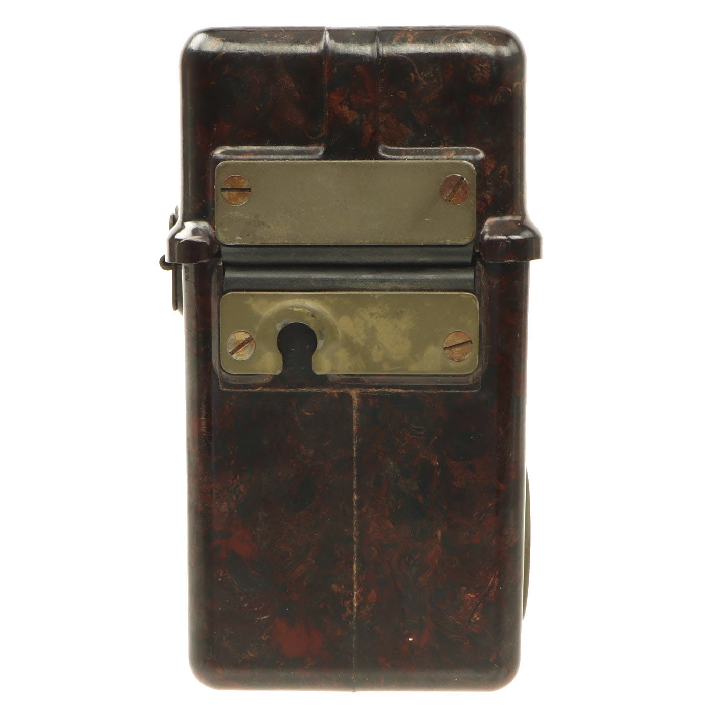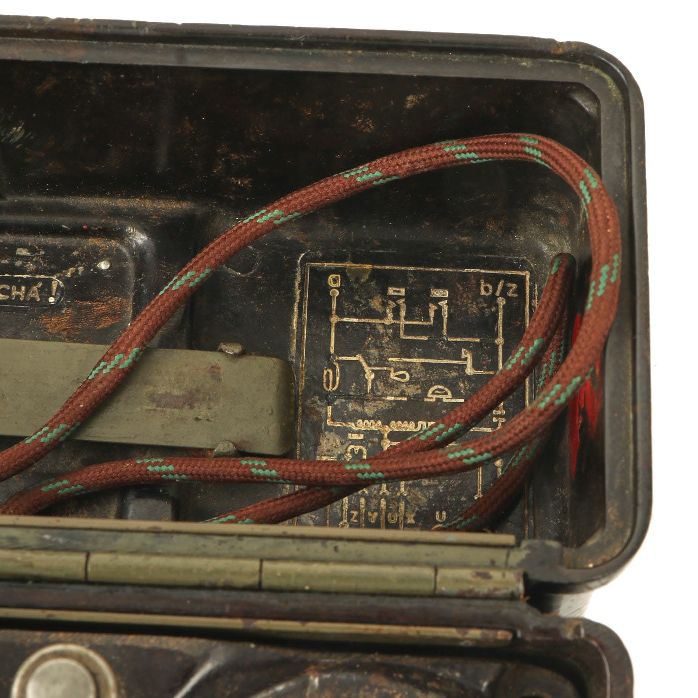 Similar to the German FF-33 phone, these were used by the Czechoslovakian army. Heavy duty Bakelite box with an inside engraving that reads POZOR, NEPŘÍTEL NASLOUCHÁ! (Beware the enemy is listening). They Measure approximately 10” long x 6 ½” tall x 3” wide, and look to have most of the original accessories. One example is missing some screws and the battery compartment locking bolt, but otherwise both look to be complete. They both have the connection cord, handsets, and cranks, as well as intact phonetic alphabet markings on the top covers.