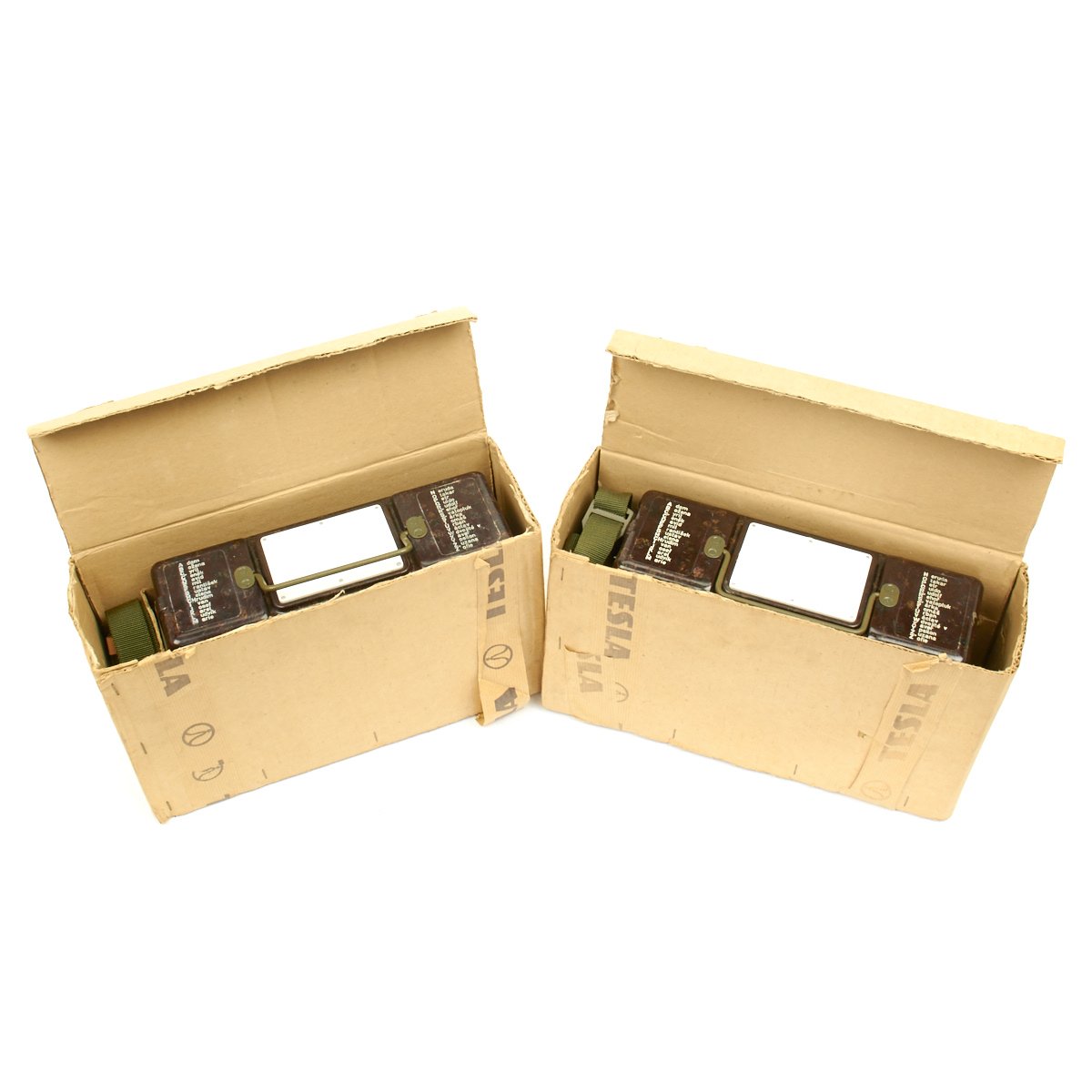 Original Item: Once common on the surplus market, supplies of these phones have unfortunately dwindled. We acquired this pair as part of a private collection of Military telephones. These are original TP 25 Field telephones, manufactured in the 1950s-1960s by Tesla in what was them called Czechoslovakia. This pair is in New Old Stock condition, complete with all parts, inspection tags, and even the original cardboard boxes labeled TESLA.