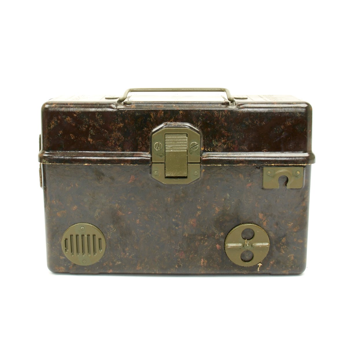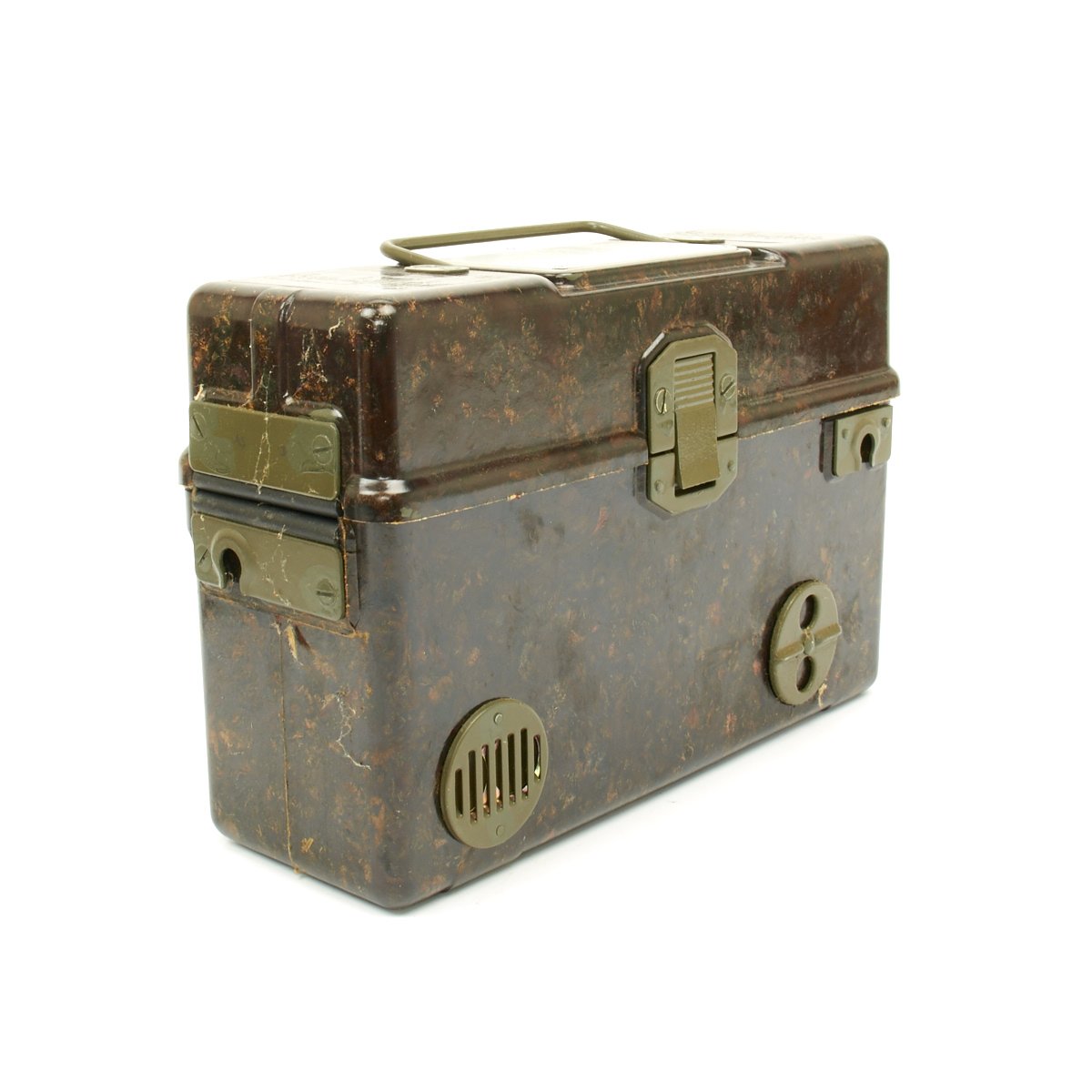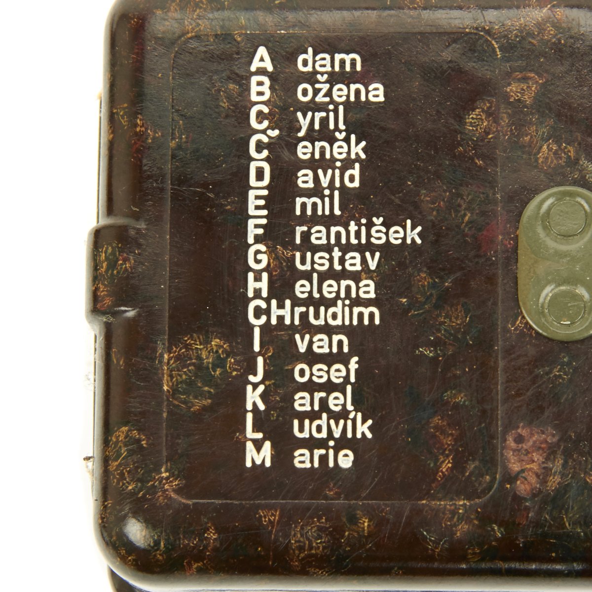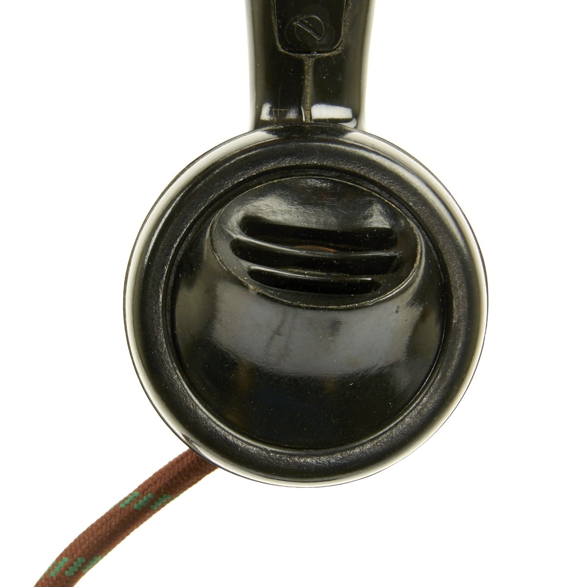 Similar to the German FF-33 phone, these were used by the Czech army. Heavy duty Bakelite box with an inside engraving that reads Pozor nepřítel naslouchá! (Beware the enemy is listening). They Measure approximately 10” long x 6 ½” tall x 3” wide, an come complete with carrying straps and all accessories.