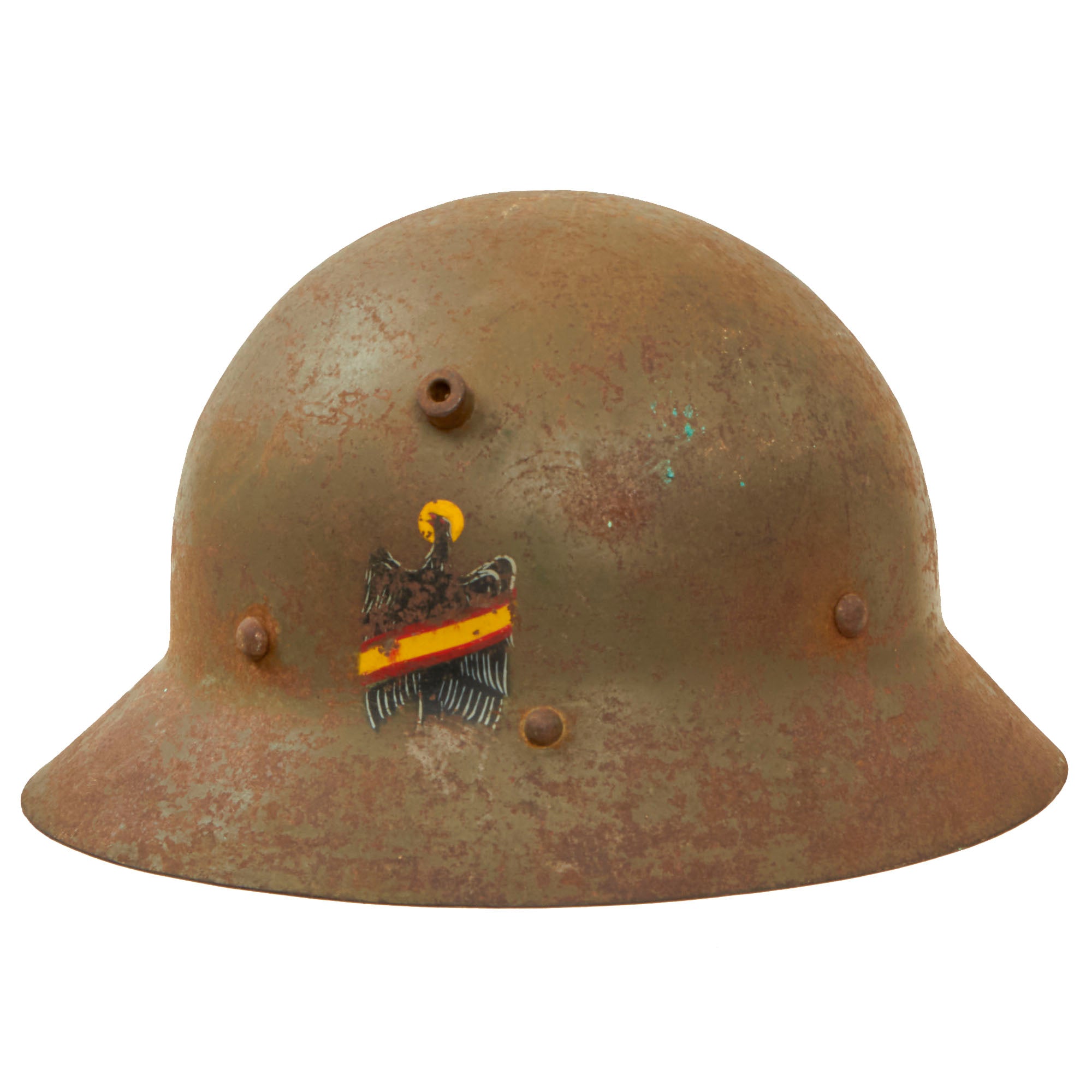 Original Item: Only One Available. During the outbreak of the civil war in Spain, there was a huge demand for helmets. Limited stocks of local manufactured helmets were quickly put to use by both sides in the conflict. As a result, large numbers of foreign helmets were purchased to fill the gap, such as Italian helmets, French Adrian helmets, German Stahlhelms and the Czech M30s.