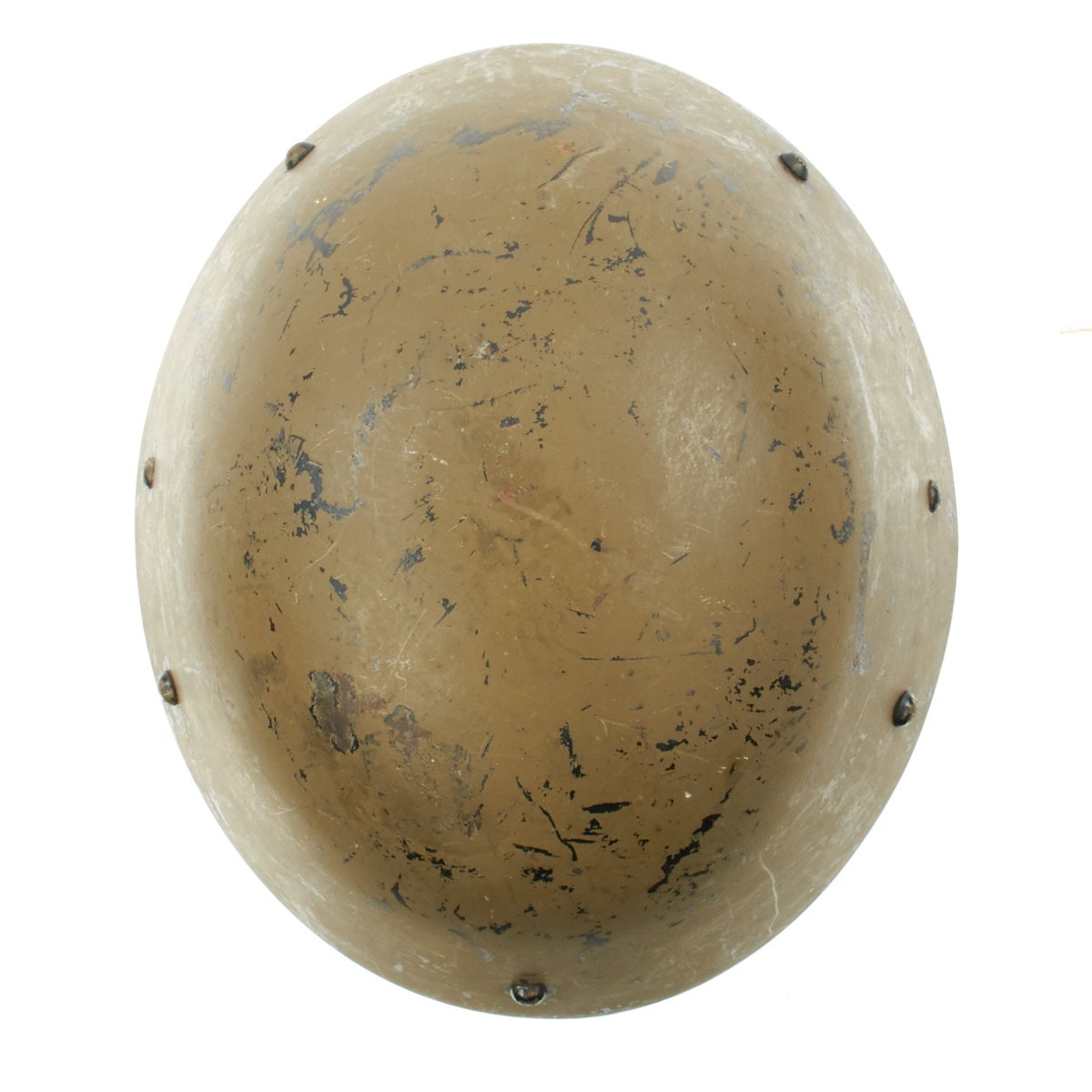 The Vz32 shell is "egg-shell" shaped, unlike many helmets of the day, which had pronounced contouring, front brims, etc. It has a unique 5 pad liner system, which utilizes 5 discrete pads that are riveted to the shell, along with a standard heavy leather split chinstrap attached on bales that are riveted directly to the shell.