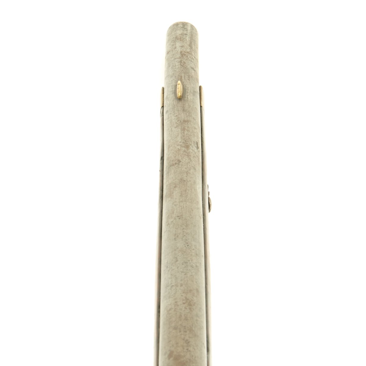 Original Item. One Only. Danish antique weapons are always very difficult to find. This is an example off a very scarce M-1794 Flintlock short musket for use by Engineers, otherwise known as Sappers and Miners. It has a 34" barrel with two brass ram rod pipes and three barrel wedges. The brass mounts are all of the M-1794 pattern.