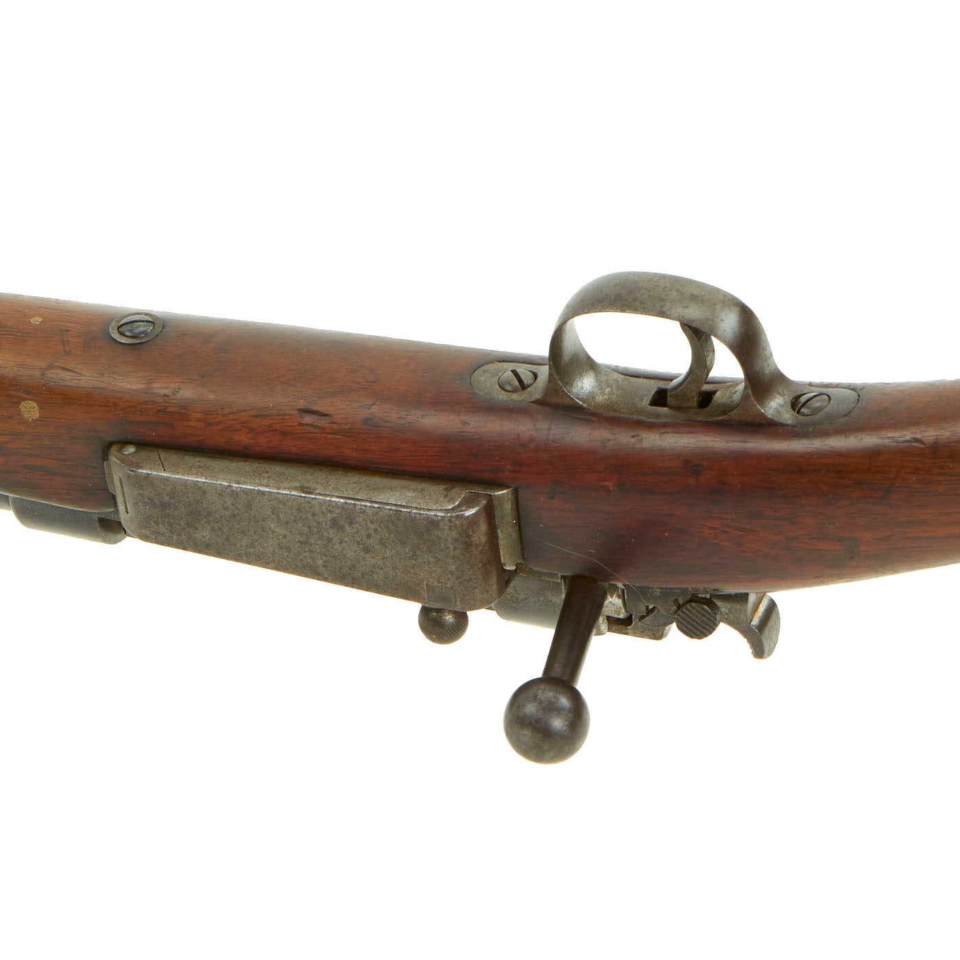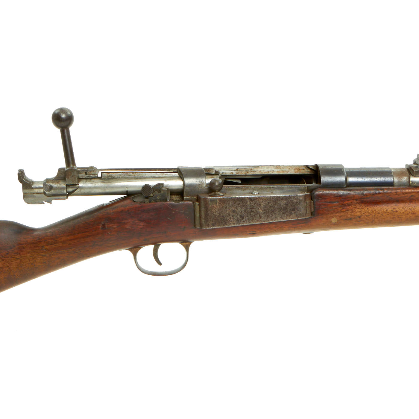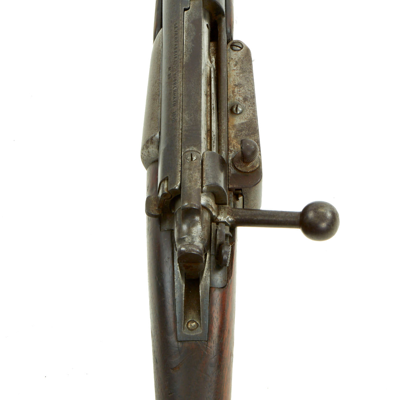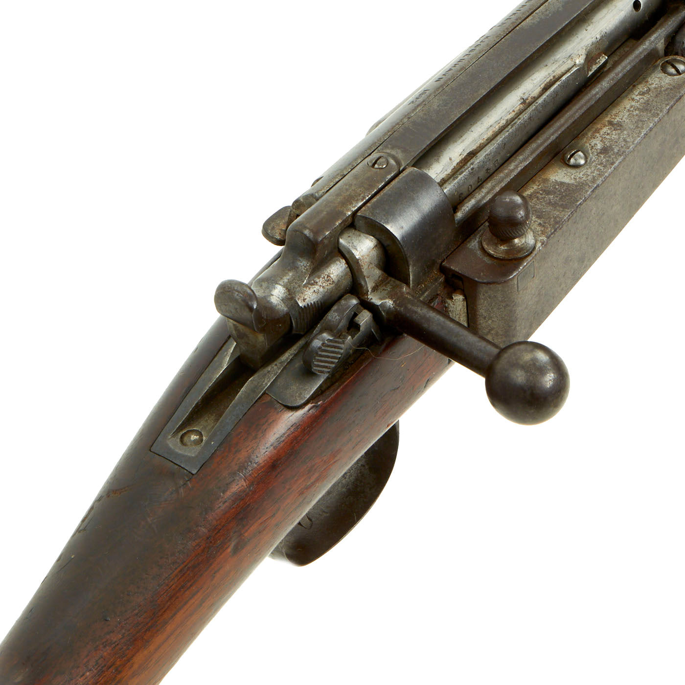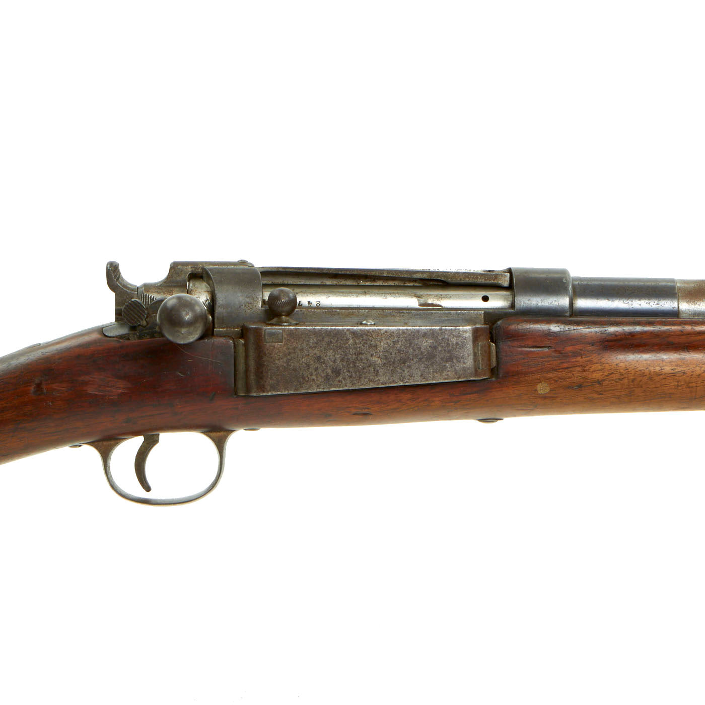 Original Item: Only One Available. The Krag–Jørgensen system was invented in 1886 by Captain Ole Herman Johannes Krag of the Norwegian Army and Erik Jørgensen, a Norwegian gunsmith. It was adopted as a standard arm by Norway, Sweden, Denmark, and the United States. It was adopted in 1889 by the Danish Army to replace the Model 1867 Rolling Block rifle. Caliber is in 8mm x 58mmR and used a fixed side mounted 5 round magazine.