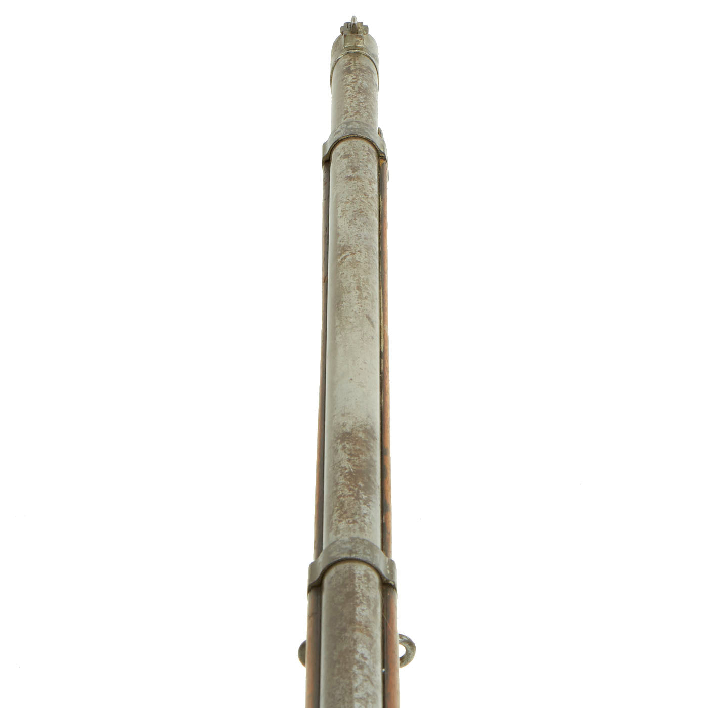 The bore shows clear lands and grooves, with a partly bright finish. The lands are worn, so this rifle definitely did see service, but was well taken care of and cleaned after use to avoid corrosion. The stock is in good condition, however it has a "Duffle Cut" under the lower barrel band. This was a common thing to see on USGI bring back rifles, as they would take the barrel and receiver out of the stock, and then cut the stock in half so it would fit into a Duffle bag or crate.