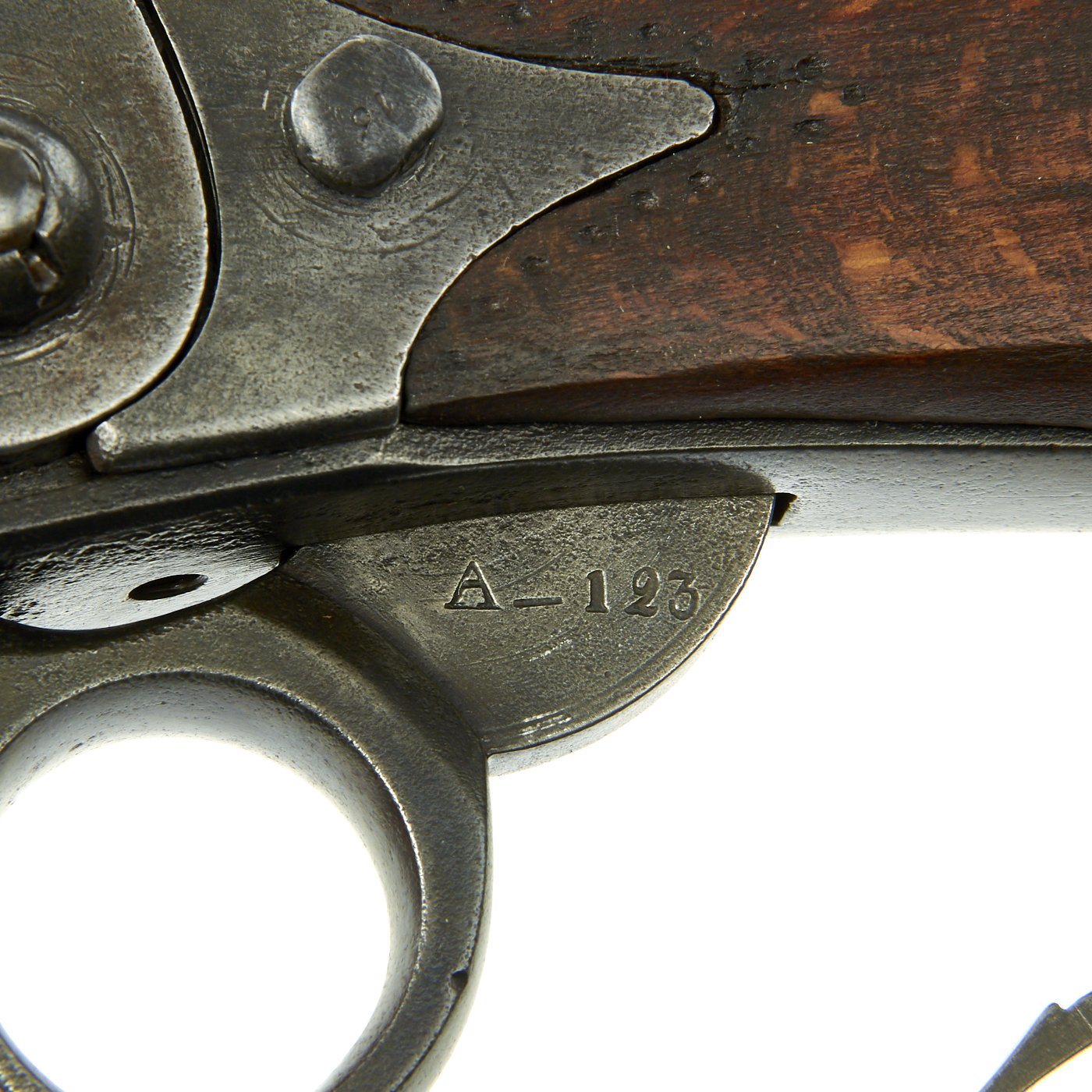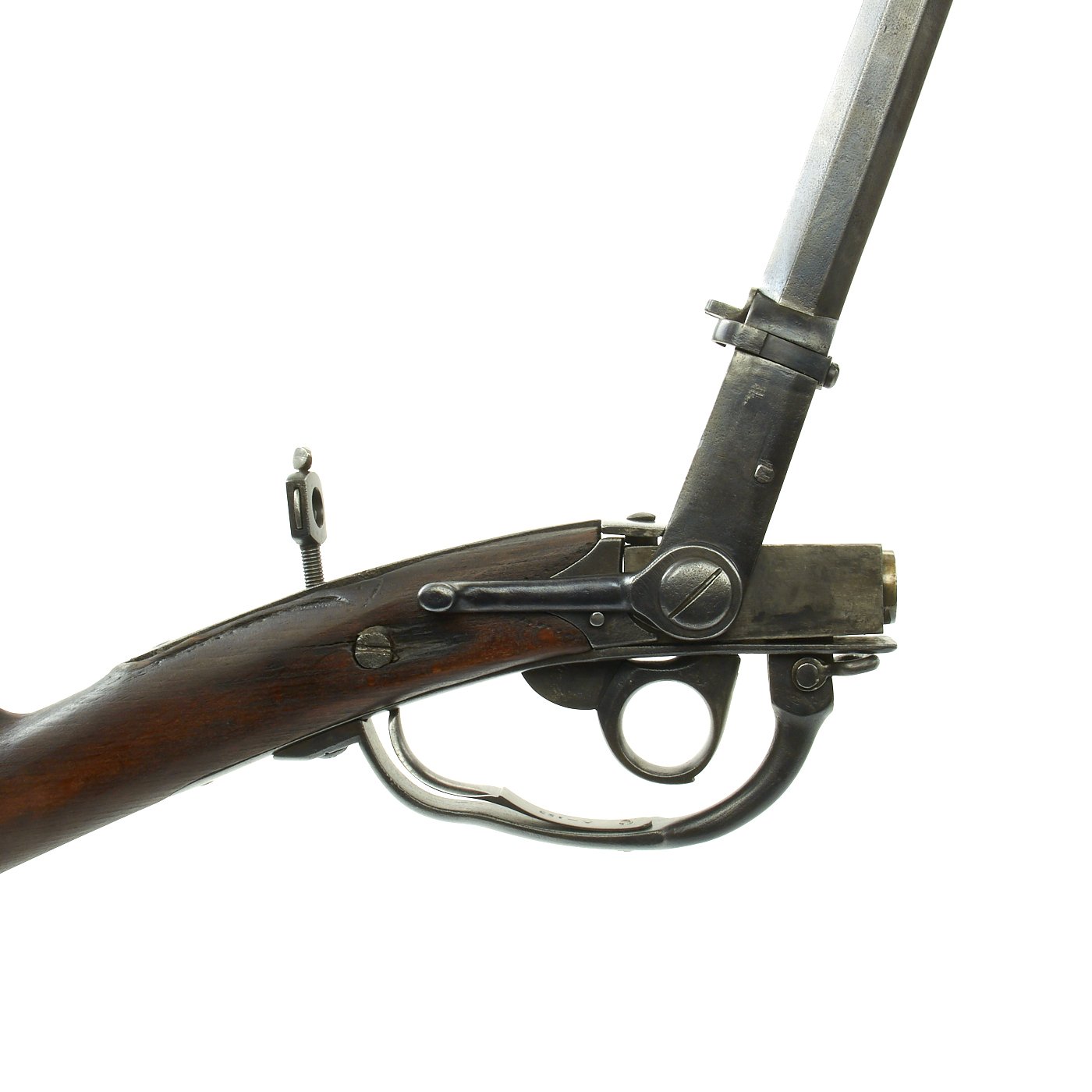 These were an ingenious design but unfortunately not terribly efficient. As with all "under hammer" designs, chronic issues with the cap falling off the nipple sealed their fate, and the Carbines were all withdrawn from service in 1855.