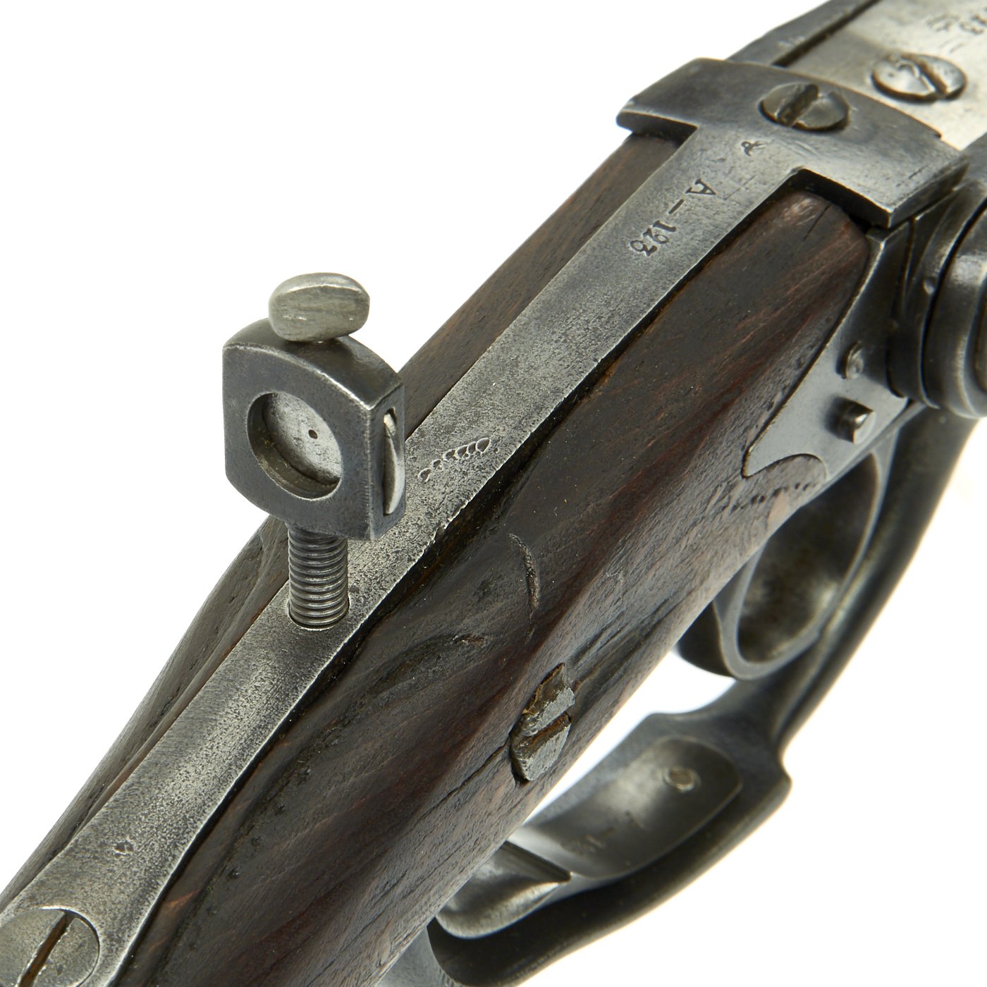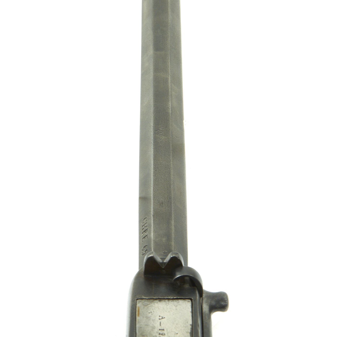 The Carbine features a regular blade fore sight and a "V" back sight at the rear of the 18" heavily rifled barrel and also an elevated adjustable "Peep Sight" on the barrel tang.