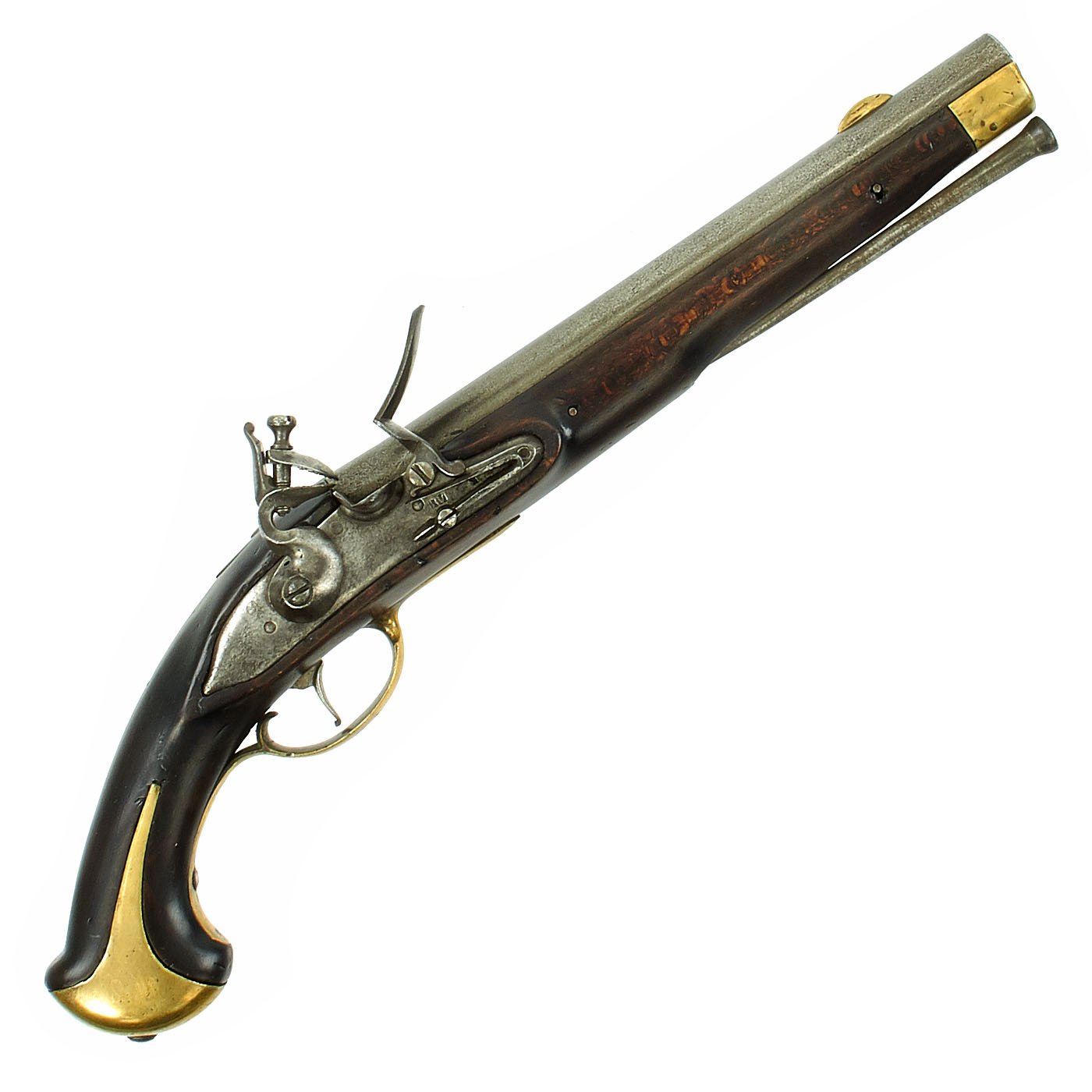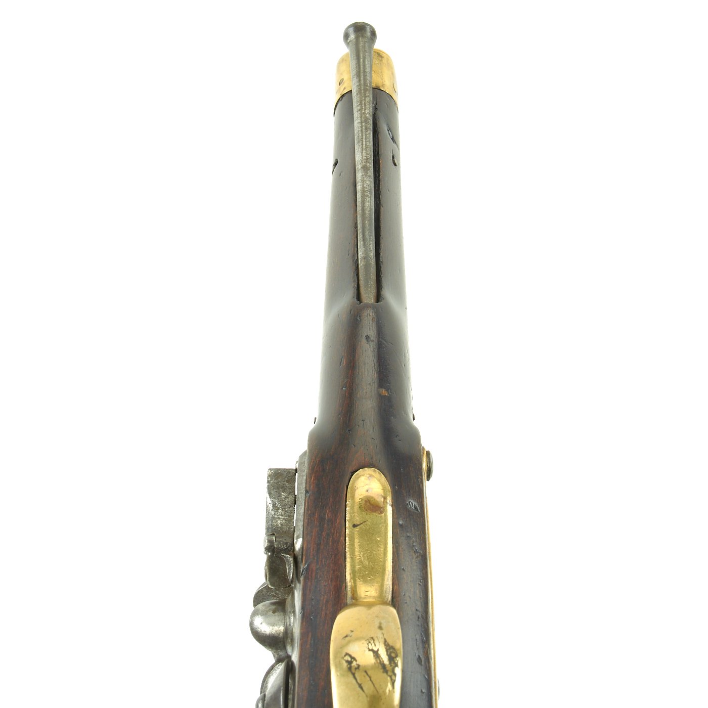 Original Item: Only One Available. These are very rare, and seldom seen on the market, especially in the original flintlock configuration. This is the scarce Danish Model of 1795 Dragoon/Naval Flintlock pistol, produced during the reign of King Christian VII of Denmark, who reigned 1766 - 1808. This pistol is the transitional model between the longer Model of 1772 and the shorter Model of 1806. It has the shorter 10 1/2 barrel of the M1806, but still retains the ramrod from the M1772. After 1806 Denmark did away with the carrying of the ram rod from under the barrel, as it was considered a hindrance to mounted Dragoons and Sailors who thereafter kept the ram rod suspended from the saddle or belt.