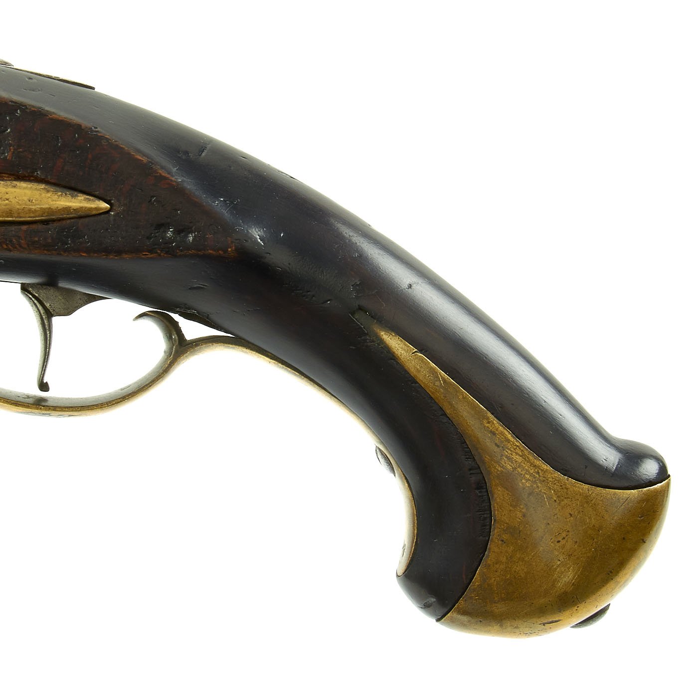 The pistol features a nice Beech wood stock with heavy brass mounts and is very substantially made. These classic Danish pistols were in service throughout the Napoleonic wars, when Denmark allied itself to France and suffered two terrible Naval Defeats at the hands of the British, firstly by Admiral Horatio Nelson in 1800 and again in 1808, at what were to be known as the Battles of Copenhagen.