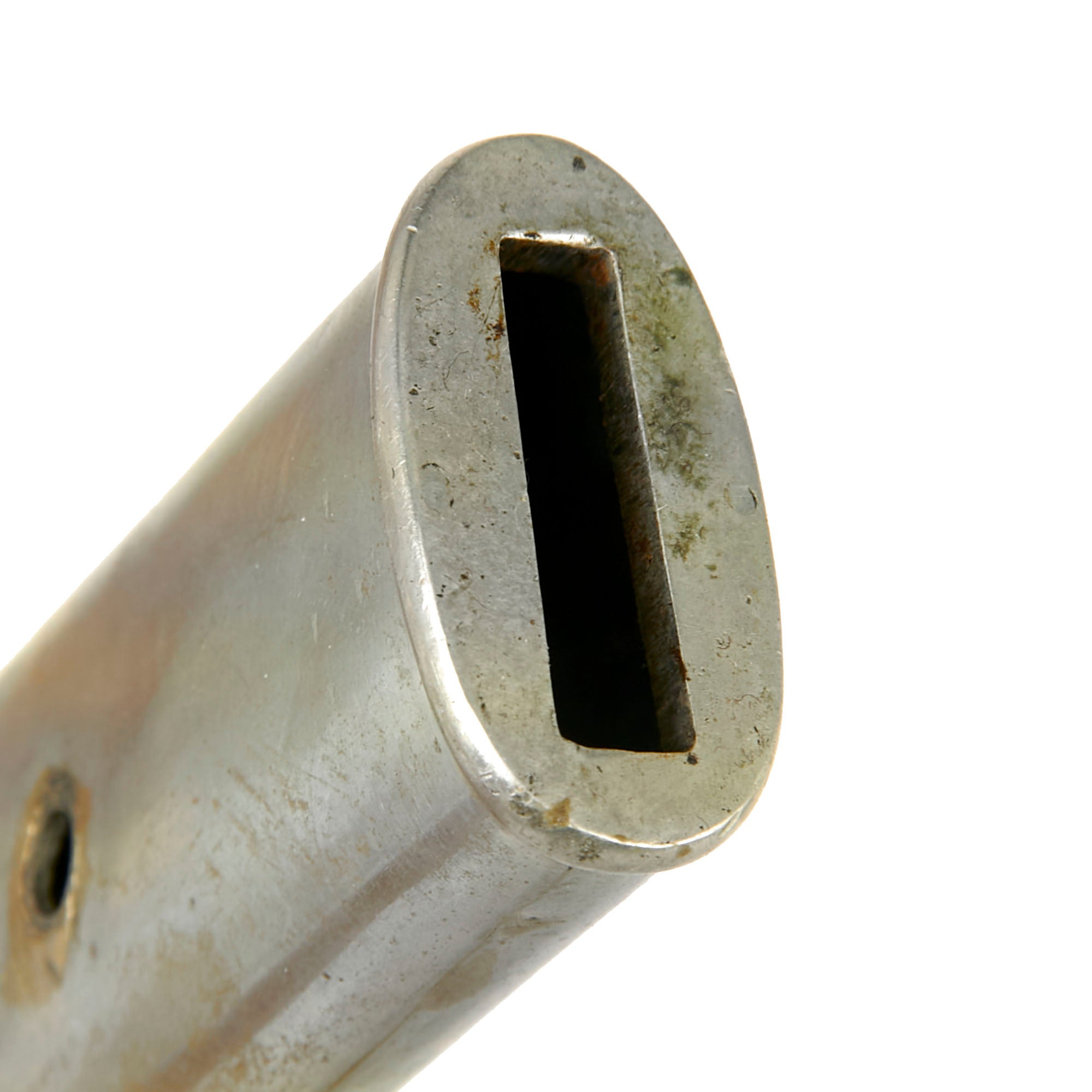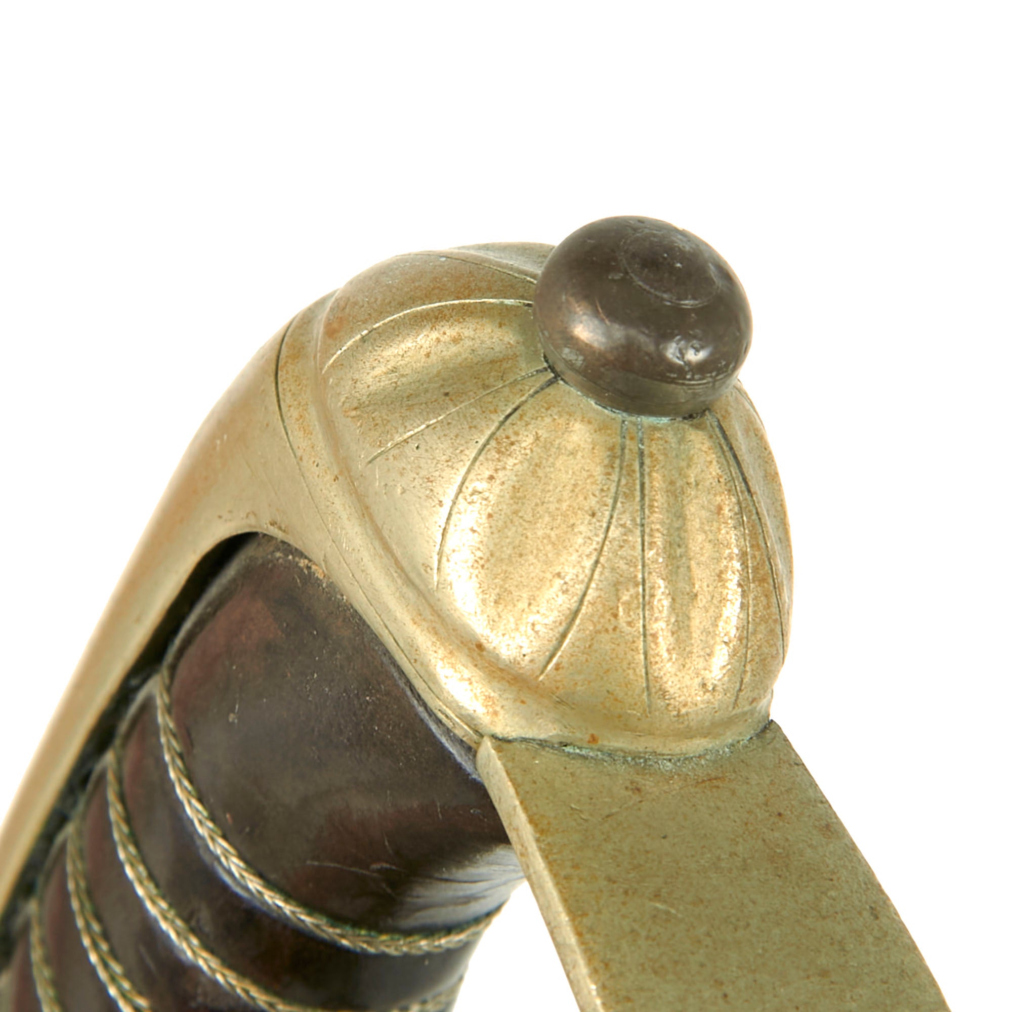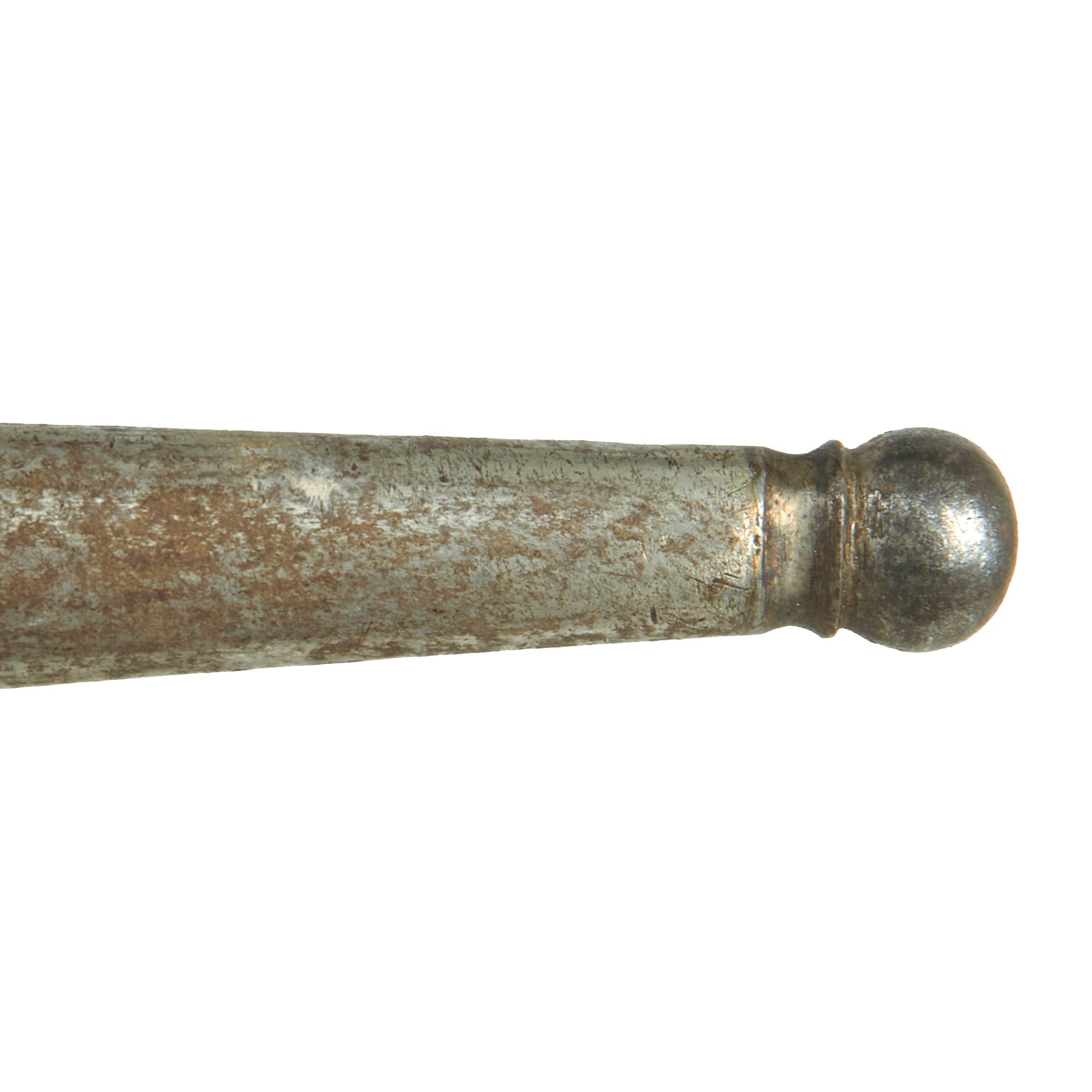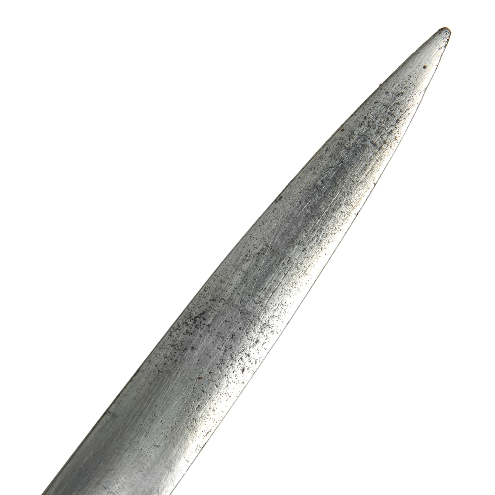 The scabbard is in rough shape and is missing its frog knob, and doesn’t fit entirely well due to leather shrinkage. A good example, ready for further research and display.