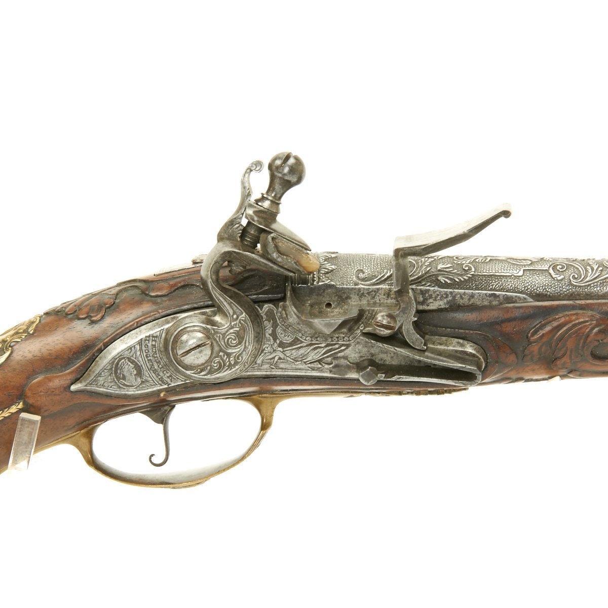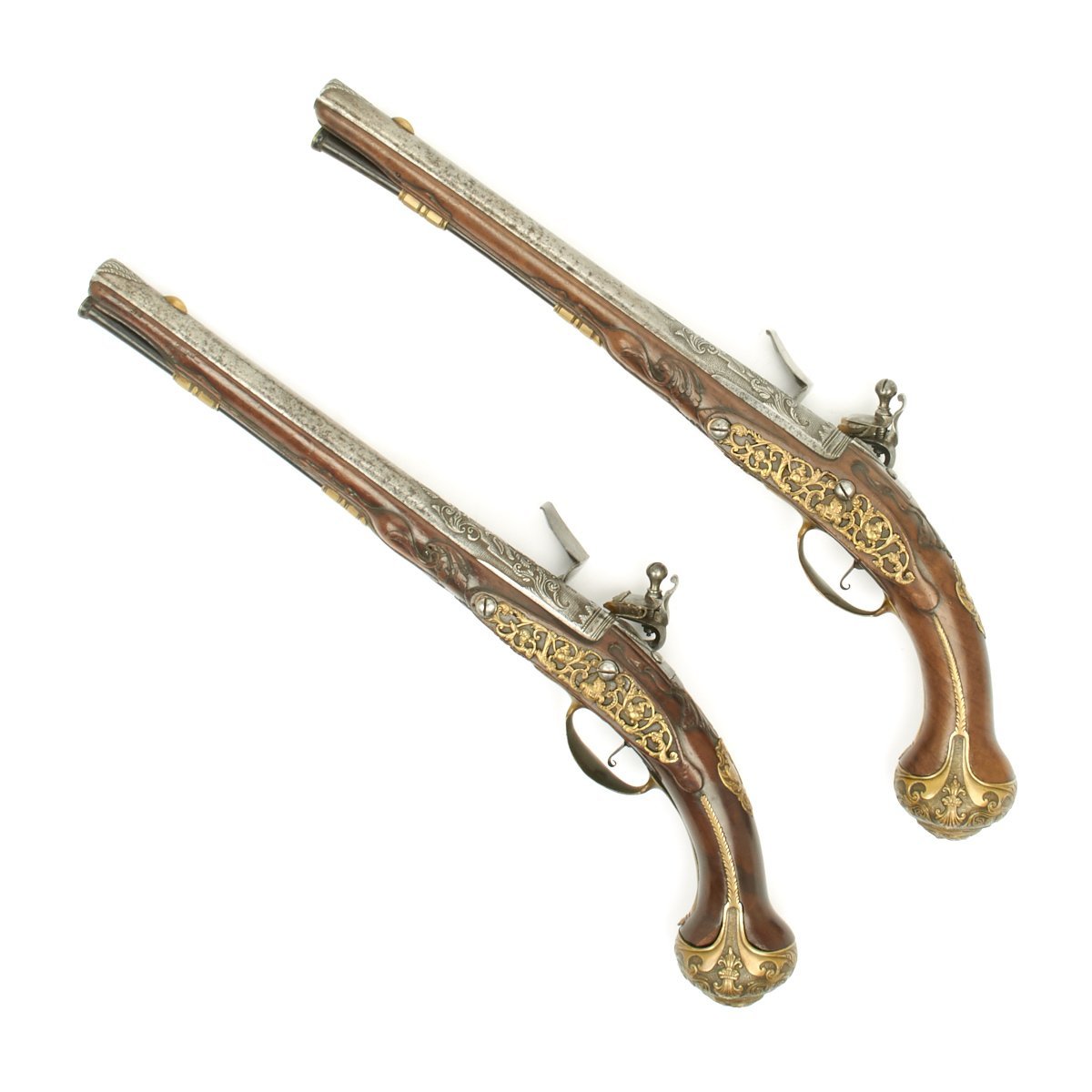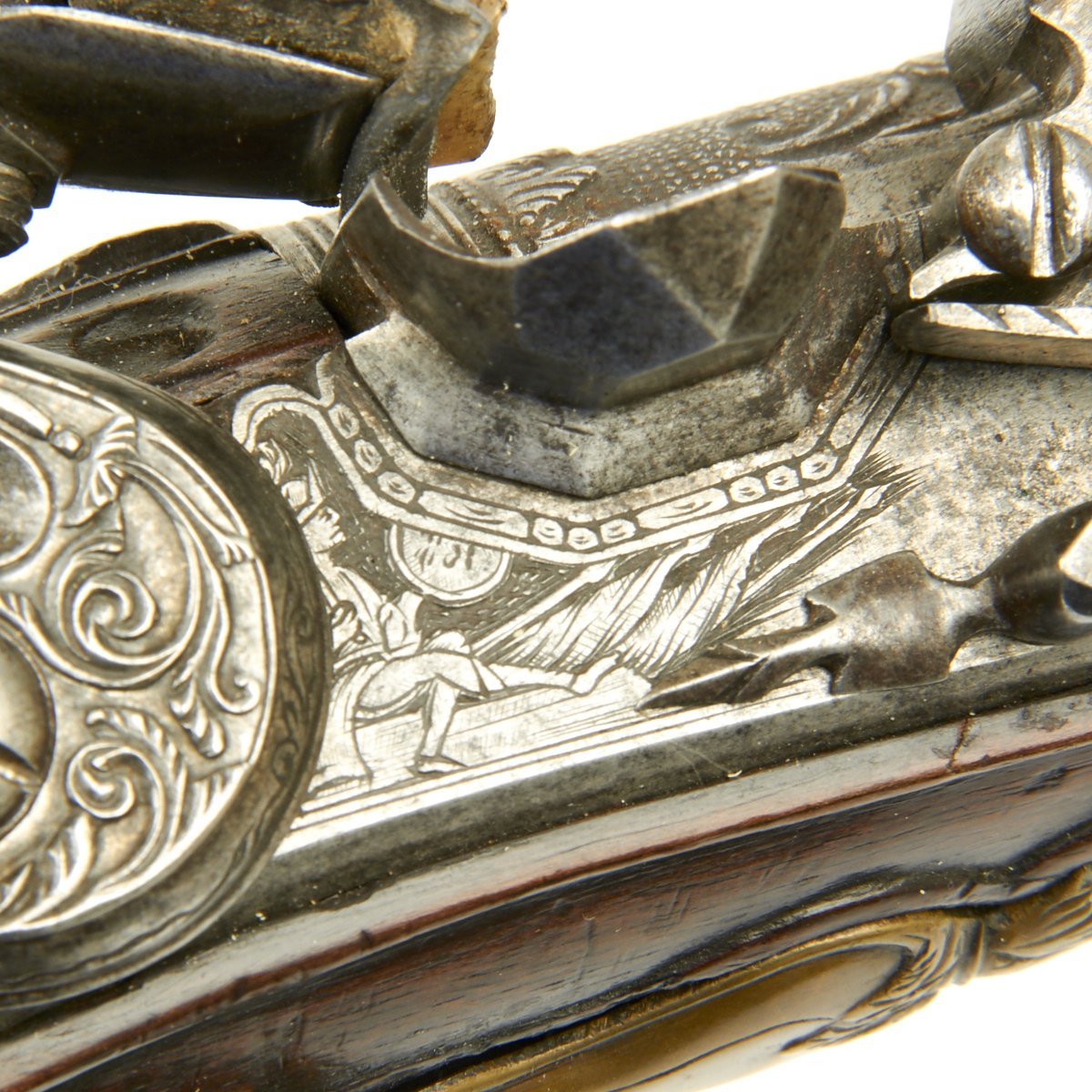 A stunning ornate and totally genuine pair of early Dutch flintlock pistol which have been in the IMA private collection for more than 20 years having originated from one of the world's foremost dealers in antique arms.
