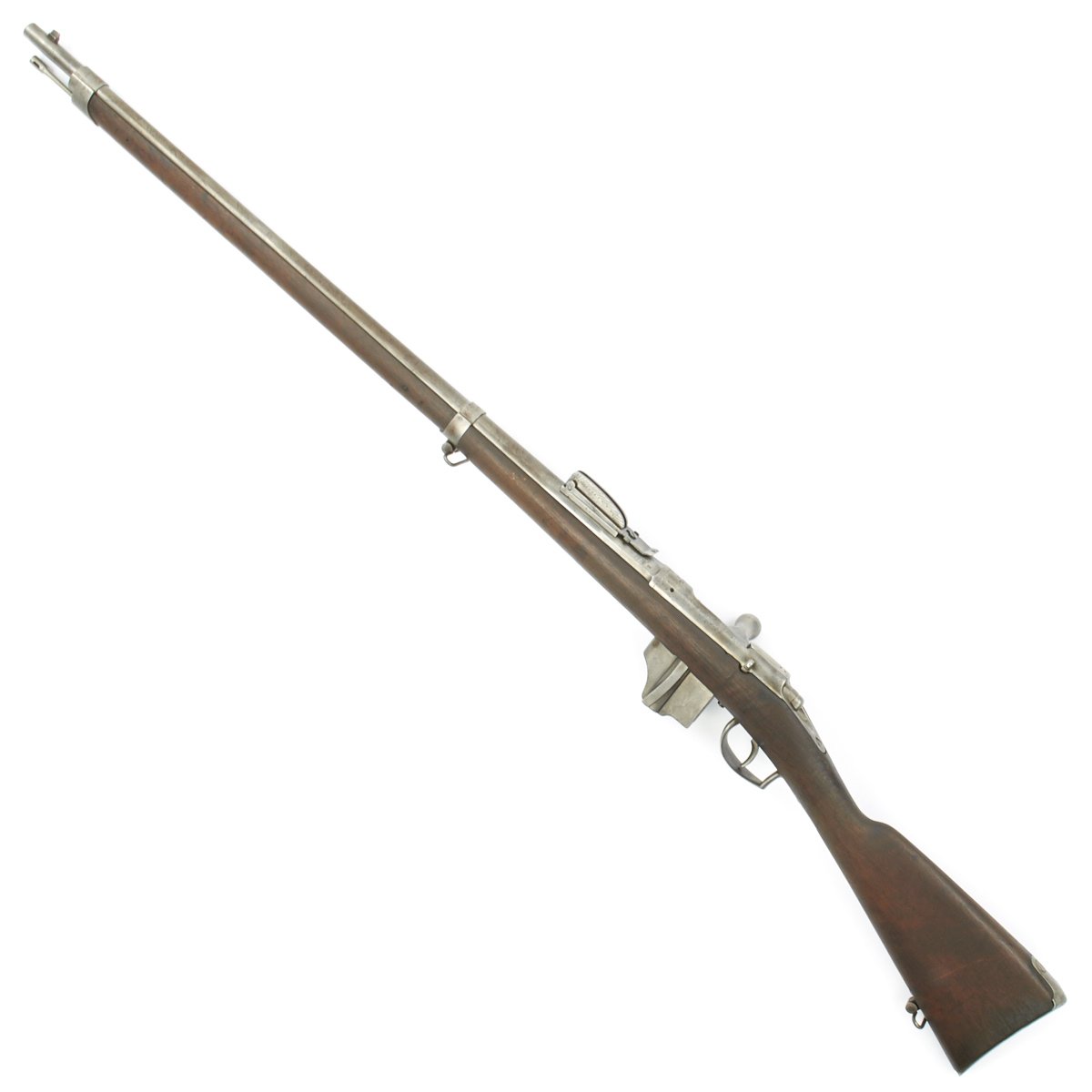 History of the Beaumont: Created in 1871 by a Dutch engineer named Messerecht, the Dutch Beaumont rifle was one of the first metallic cartridge bolt-action rifle to be adopted by any military. Firing an 11.3x50mm cartridge it was single shot only, meaning the user had to insert a new cartridge after every shot. Unlike other rifles, the mainspring of the Beaumont was located within the bolt handle, an exact copy of the Mauser Norris rifle, which would also be copied by the Japanese with the Murate rifle. This same feature, however, made it impossible to turn down the bolt on cavalry and carbine models.