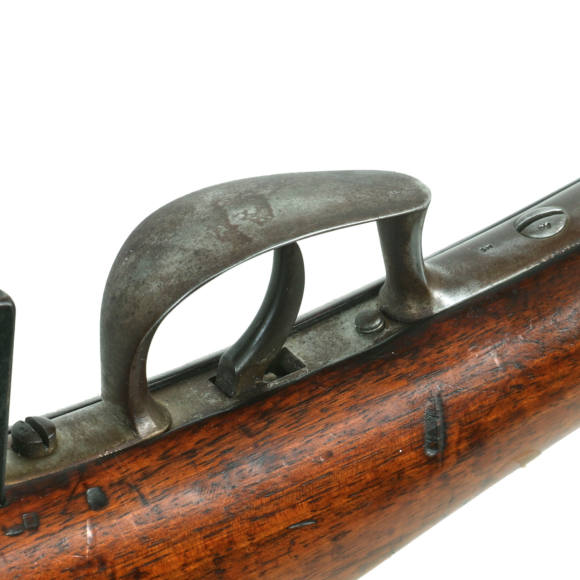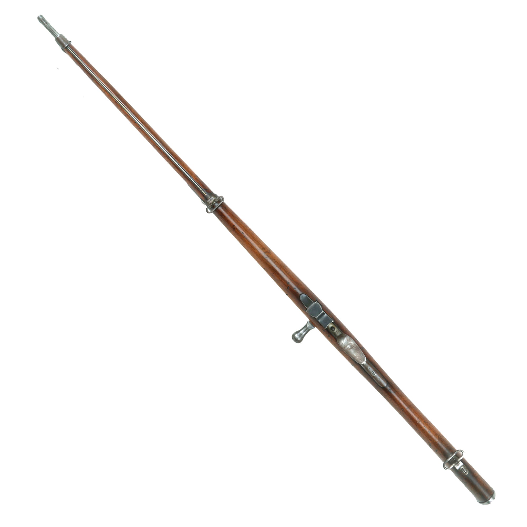 Still in use by the time WW1 came in 1914 but was much outclassed by the Mauser and Enfield rifle systems introduced in the late 1890s. An unusual system, the bolts spring is in fact housed inside the bolt handle, from an era of great firearms development worldwide, the dawn of the breech-loading period this is unusual and not easy to find. Ready to display!