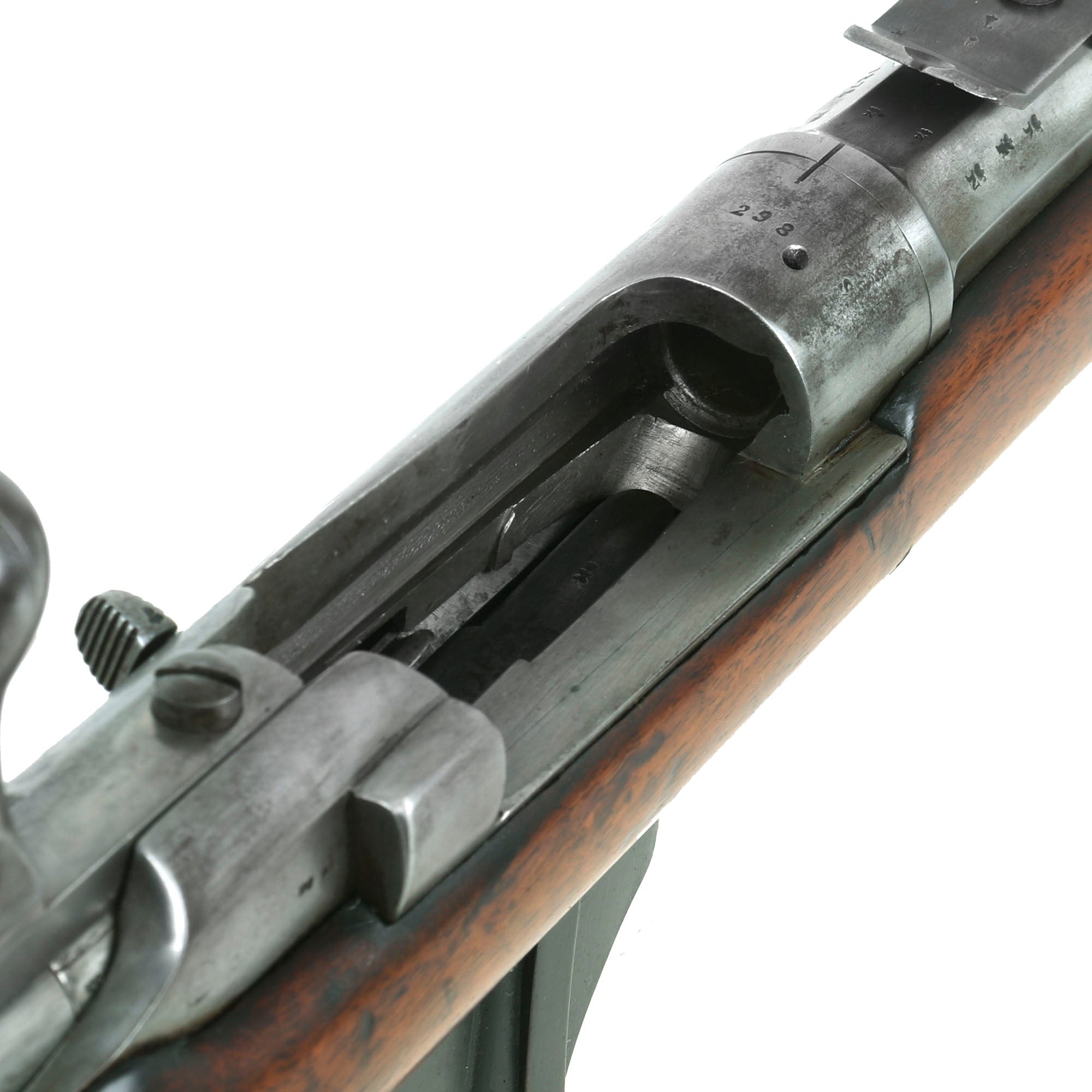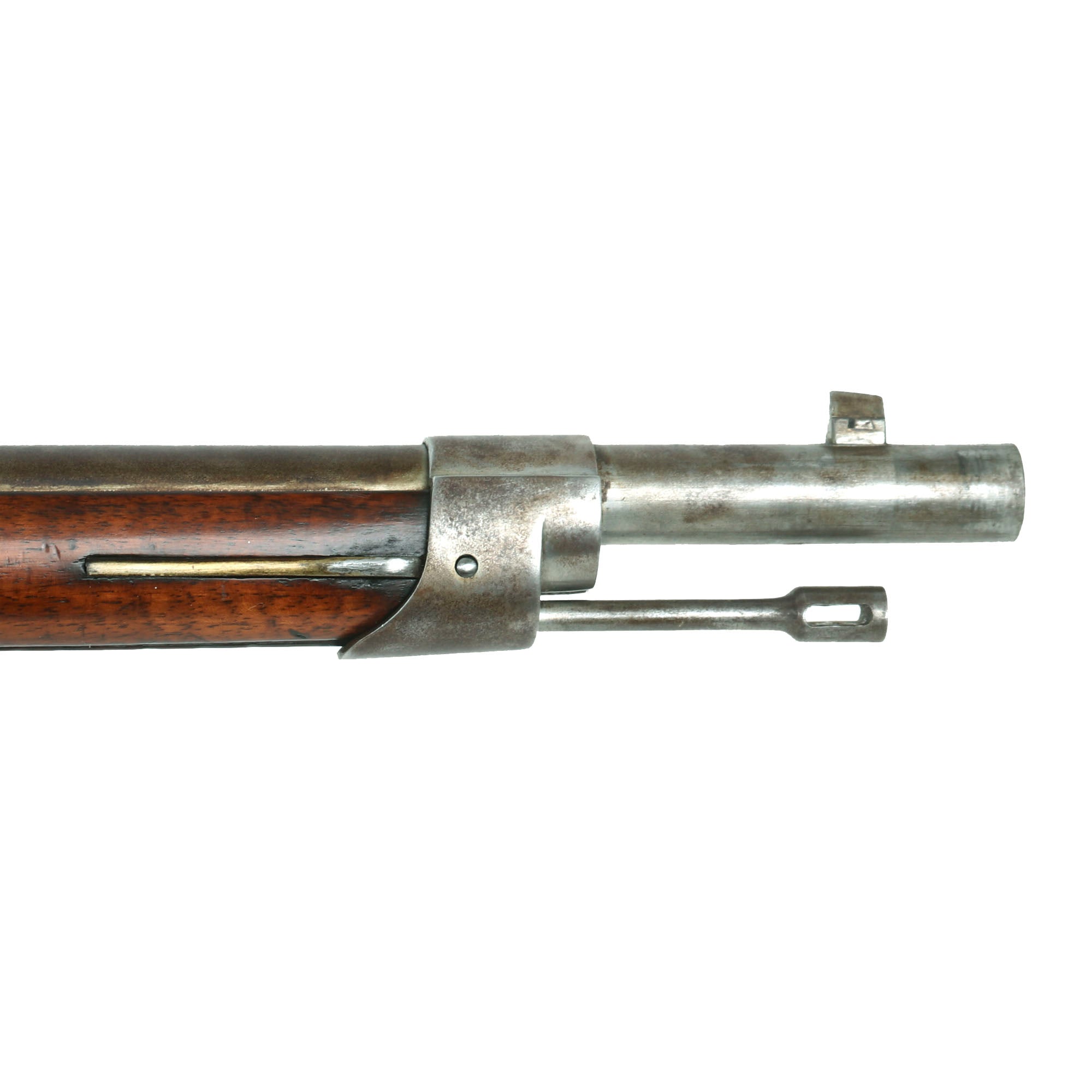 The rifle is in very good overall condition, with a great patinated look from years of care and cleaning. It still retains the original ramrod, which is definitely a rarity with these. The metalwork has a nice aged patina, showing some areas of staining and oxidation, but no major peppering or other oxidation. All components are solid and the bolt moves crisply with just a bit of slop due to wear. The magazine cutoff is present and functional, though it can be a bit difficult to move. The bore is in very good condition, with crisp lands and grooves and a mostly bright finish. There are just a few areas of oxidation, and it looks to have seen only light service during its service life.