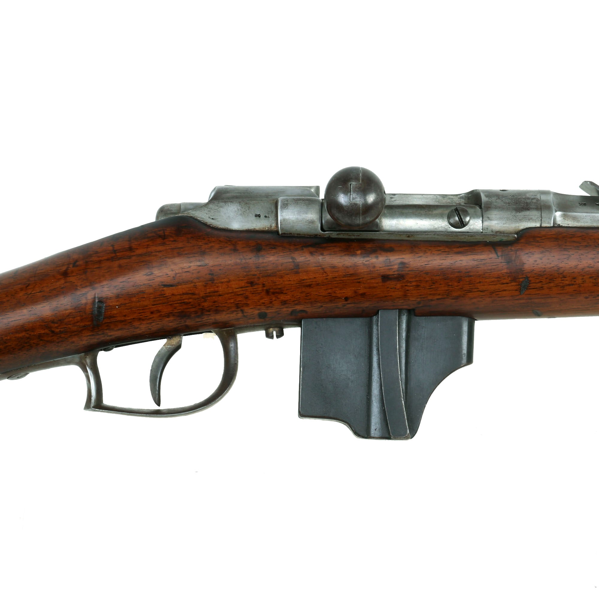 Original Item: Only One Available. This Dutch Infantry Rifle was made by Stevens in Maastricht in the Netherlands, and is actually dated 1873. The model M-71 was a single shot 11mm rifle that was converted to a bolt-action magazine rifle with a capacity of four rounds in 1891. This magazine system was introduced in 1888, derived from Vitali's improvements to the Italian Vetterli rifle, and led to the designation Beaumont-Vitali M1871/88. Our example also comes with an original bayonet, which are seldom encountered.