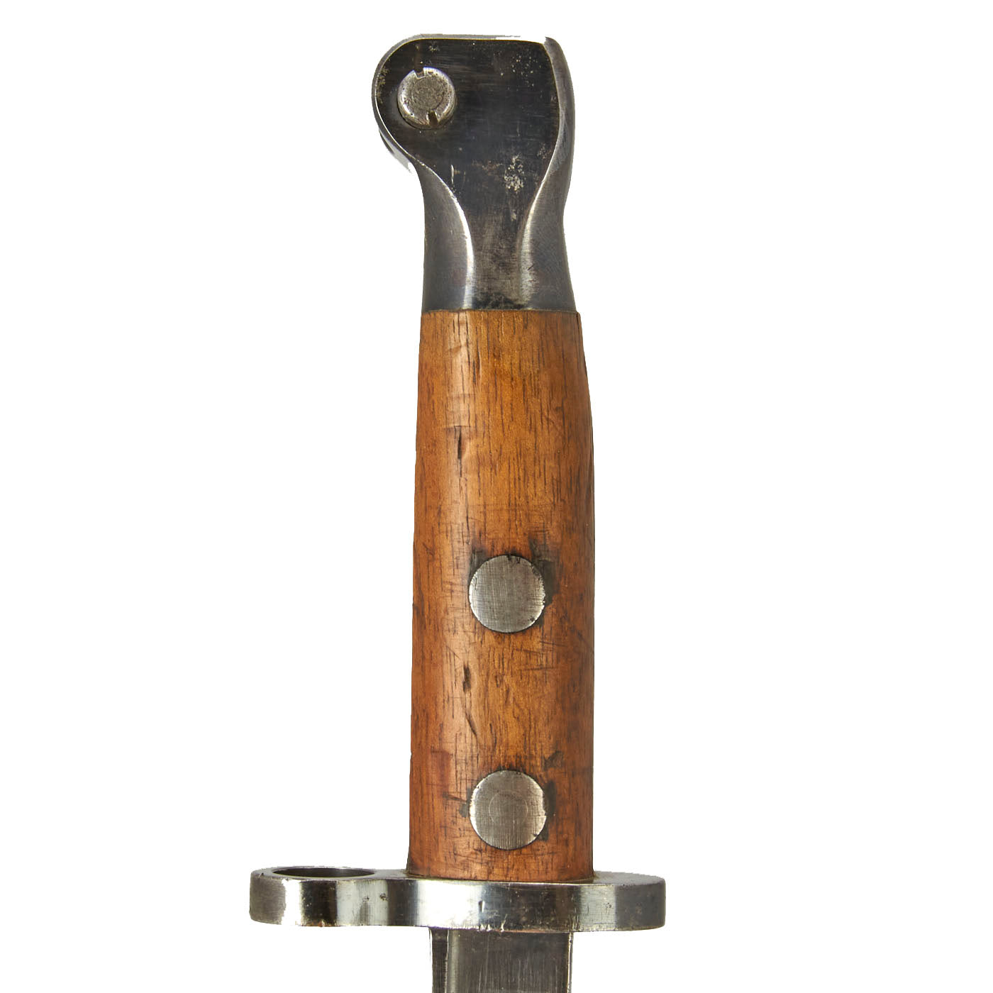 A great example of a rare German WWII modified Dutch Bayonet! Complete with scabbard and ready to display!