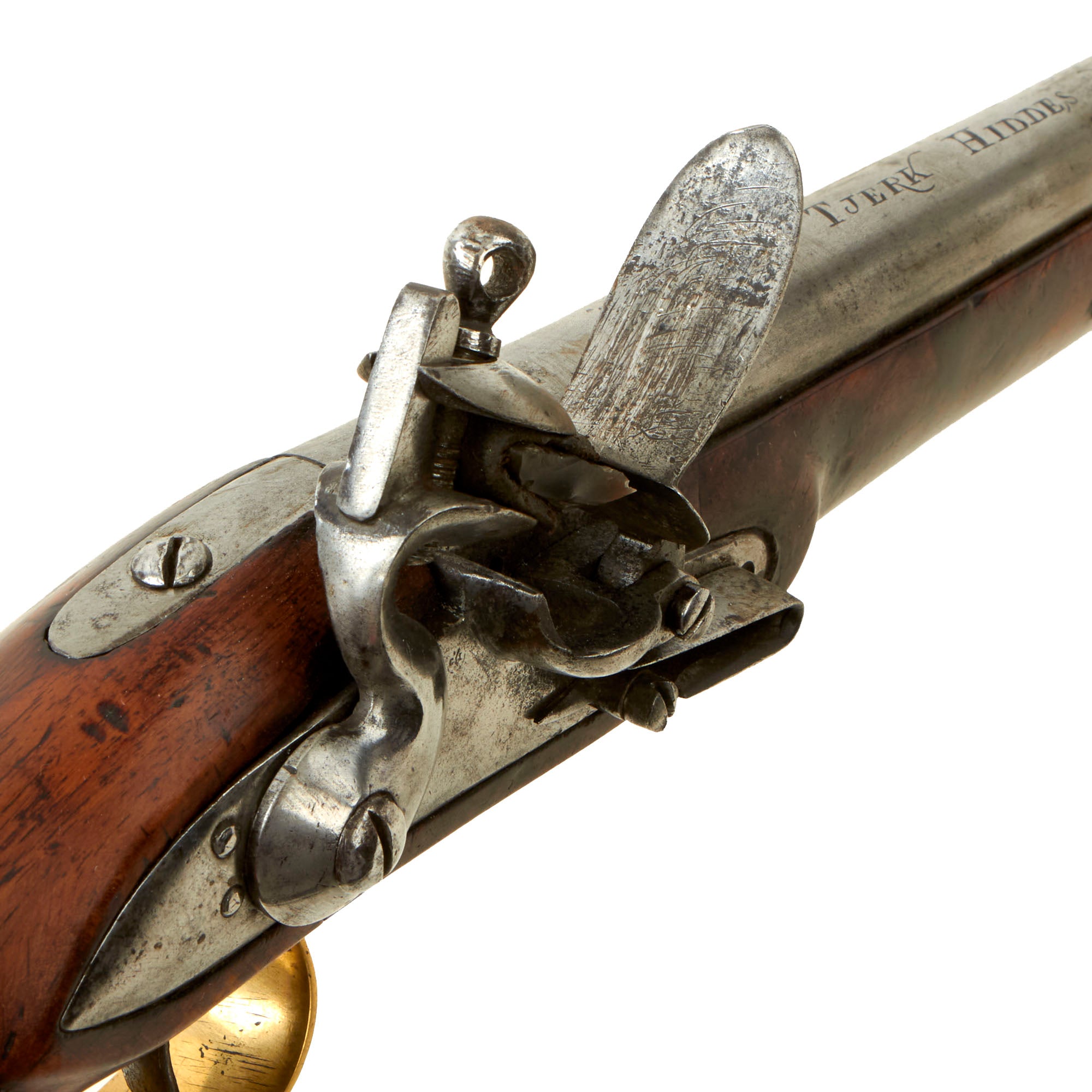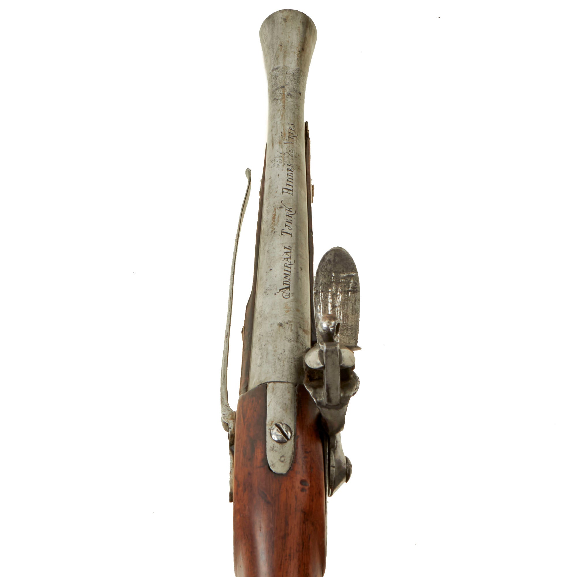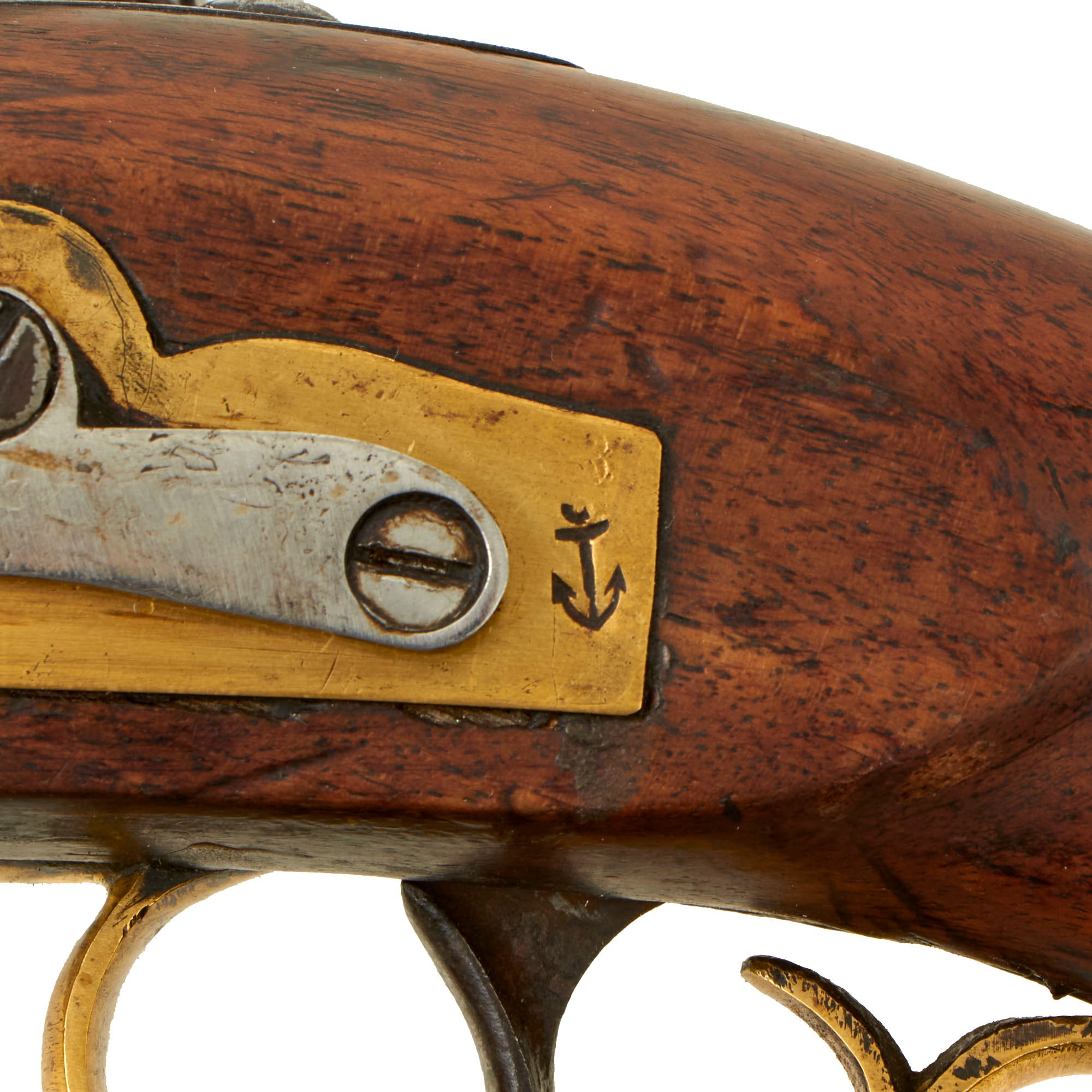 Original Item: Only One Available. This is a very interesting Dutch Flintlock Naval Blunderbuss Pistol Carbine, very similar to many Naval Flintlock pistols manufactured for the Dutch in Belgium, which was under Napoleon Bonaparte's control until 1814. The shape of the stock, the characteristic butt cap with lanyard loop, and square barrel escutcheons are typical. The mounts are all of brass and the grade of manufacture is really quite high.