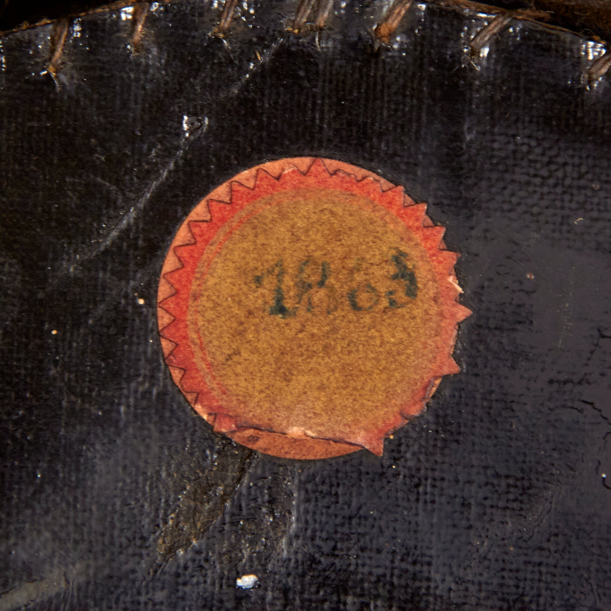 Many dealers would sell this cap as an original Civil War era piece, as the early Indian War M-1872 Kepis are very similar to those made and issued during the American Civil War. This is a great cap, which shows signs of honest period wear, and unfortunately extensive mothing and visor detach. The Ridabock and Co marking on the top pasteboard is extremely faint and the leather sweatband is torn, delicate and worn.