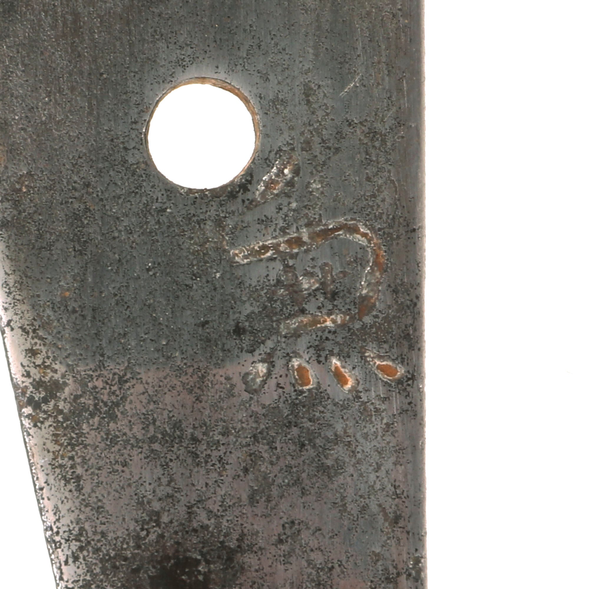 - Folded steel blade (fold lines are evident on the spine and body of the blade)