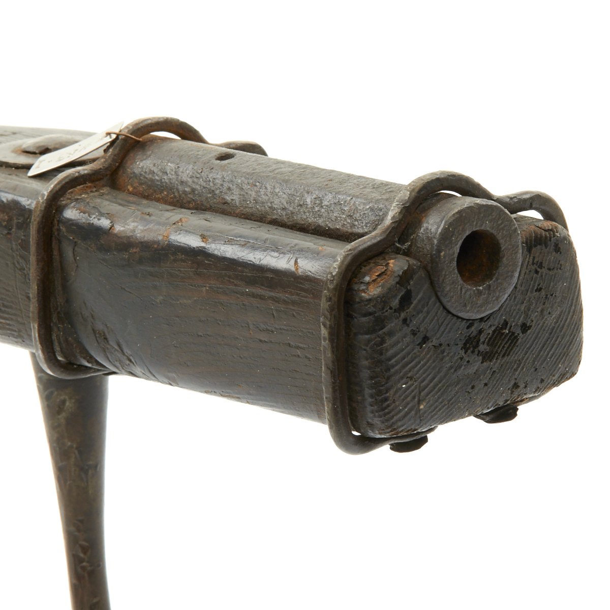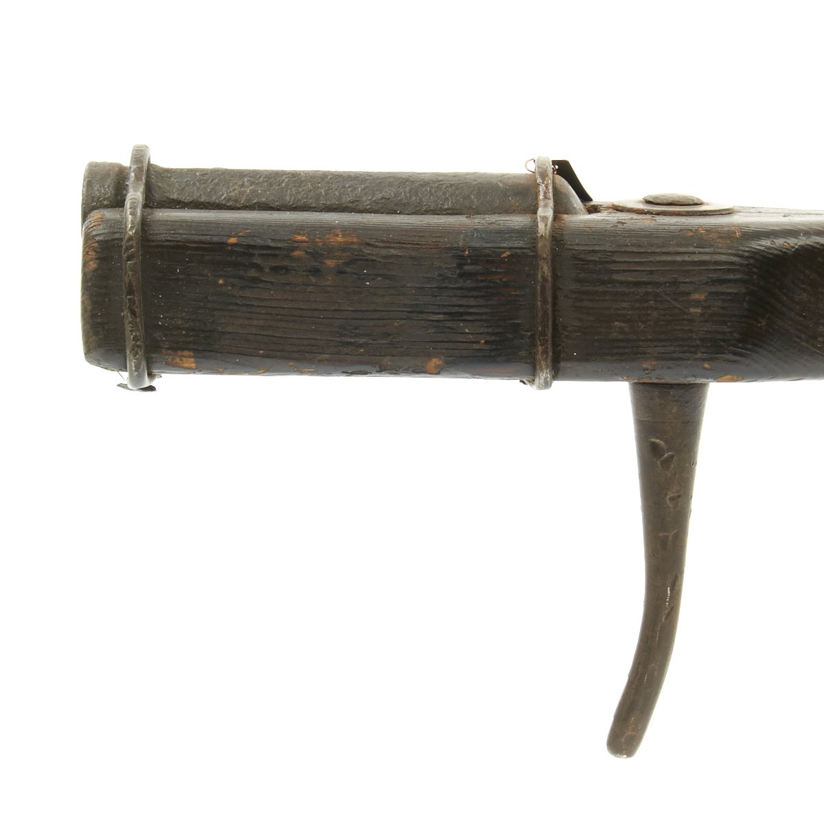 Original Item: One of a Kind. This came from a very old New York Collection and is nothing short of extraordinary. This is a single iron barrel hand cannon of only about 5" in length and just over a half inch bore. It is said to be one of a small lot of similar barrels found in the mud of the River Thames, near the Tower of London in the very early Victorian era, about 1840. Apparently these were taken by the Crown Armories and were restored to what they once were for Museum Display.