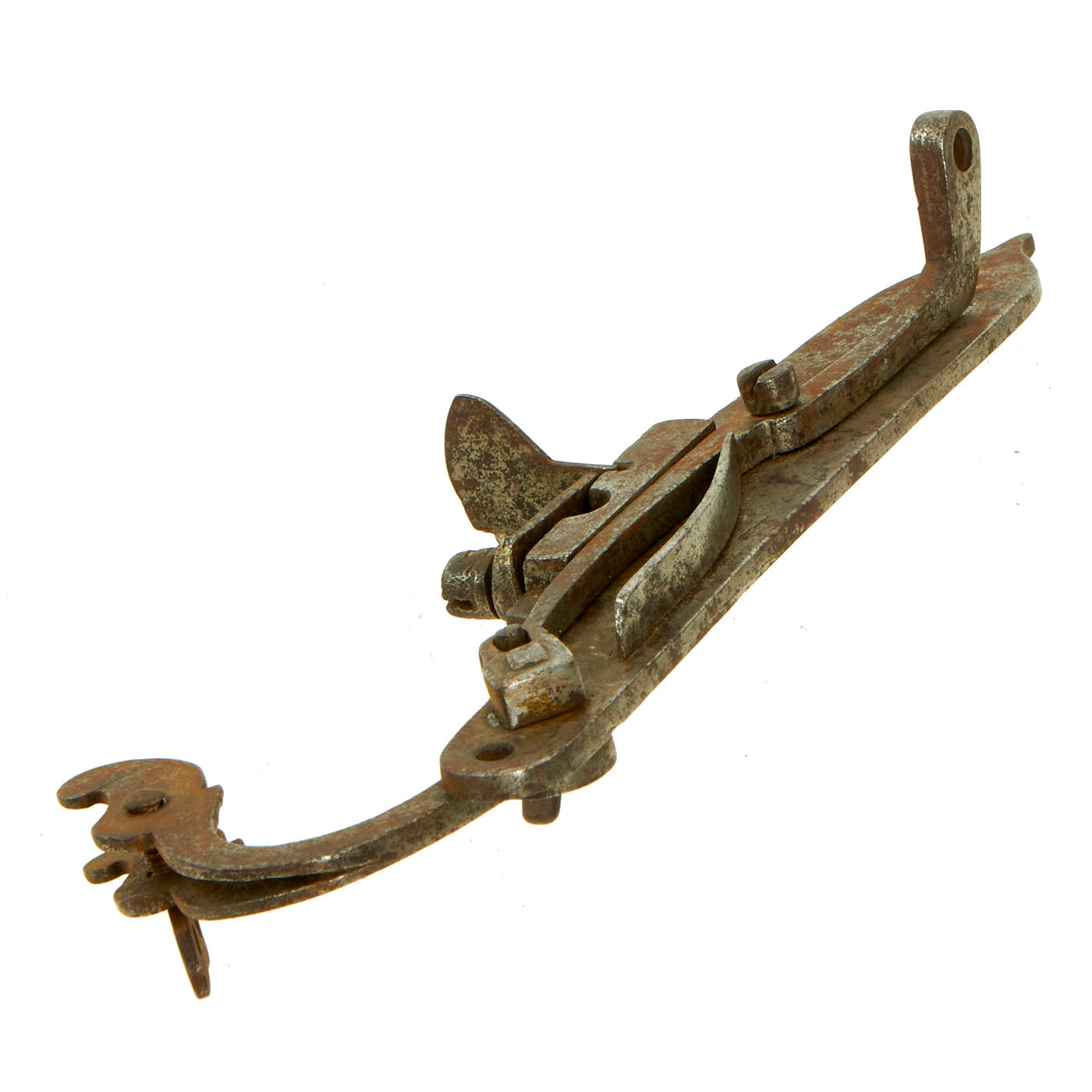 Condition is very good, especially considering the age. It has a lovely aged patina on the metal, showing no major pitting or oxidation. Most likely this was a later production example, and may very well have been removed so that a flintlock could be fitted in its place. There was no easy way to convert the Matchlock to a Flintlock, so many locks were simply disposed of. This one somehow managed to survive.