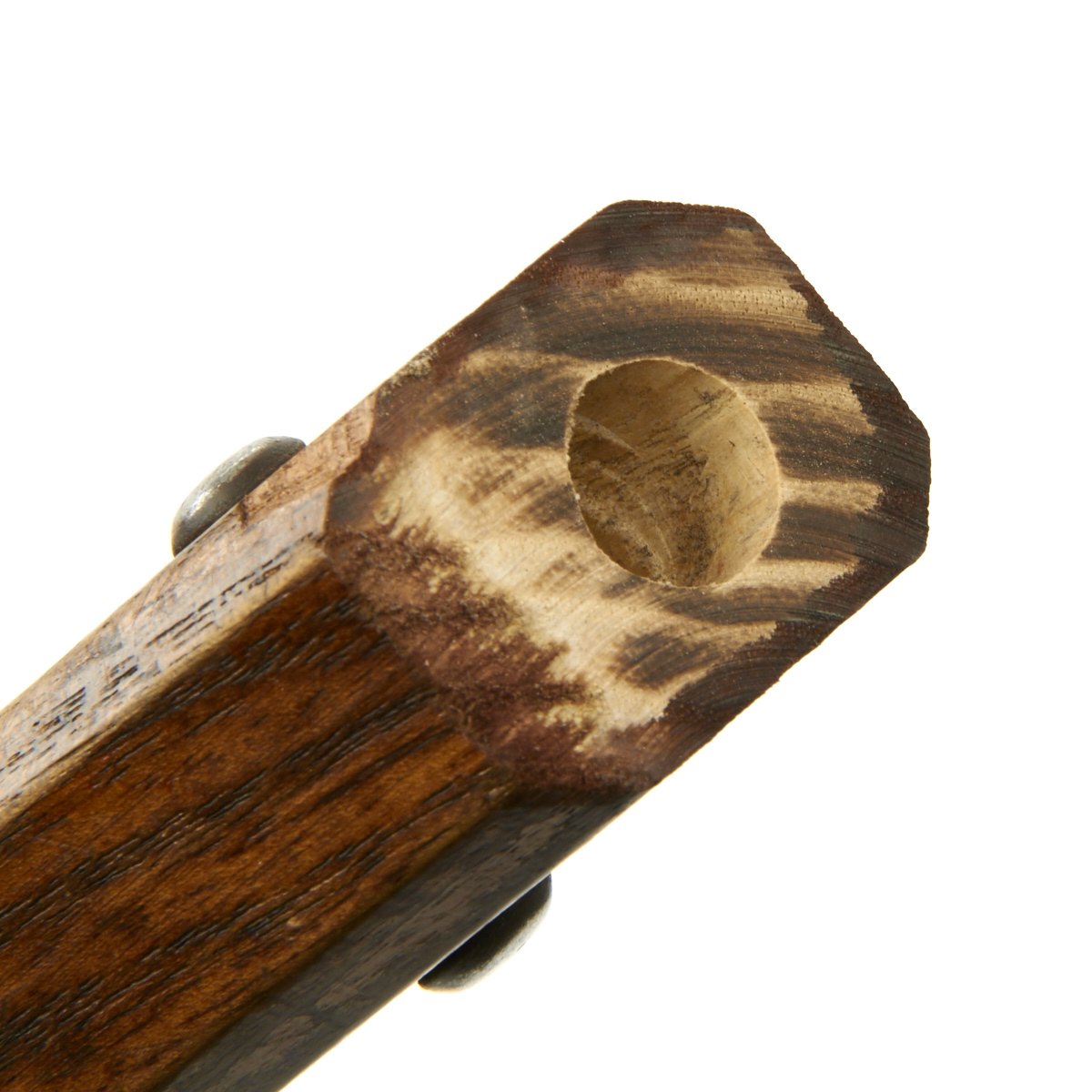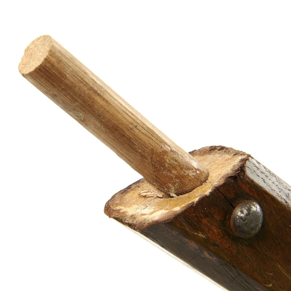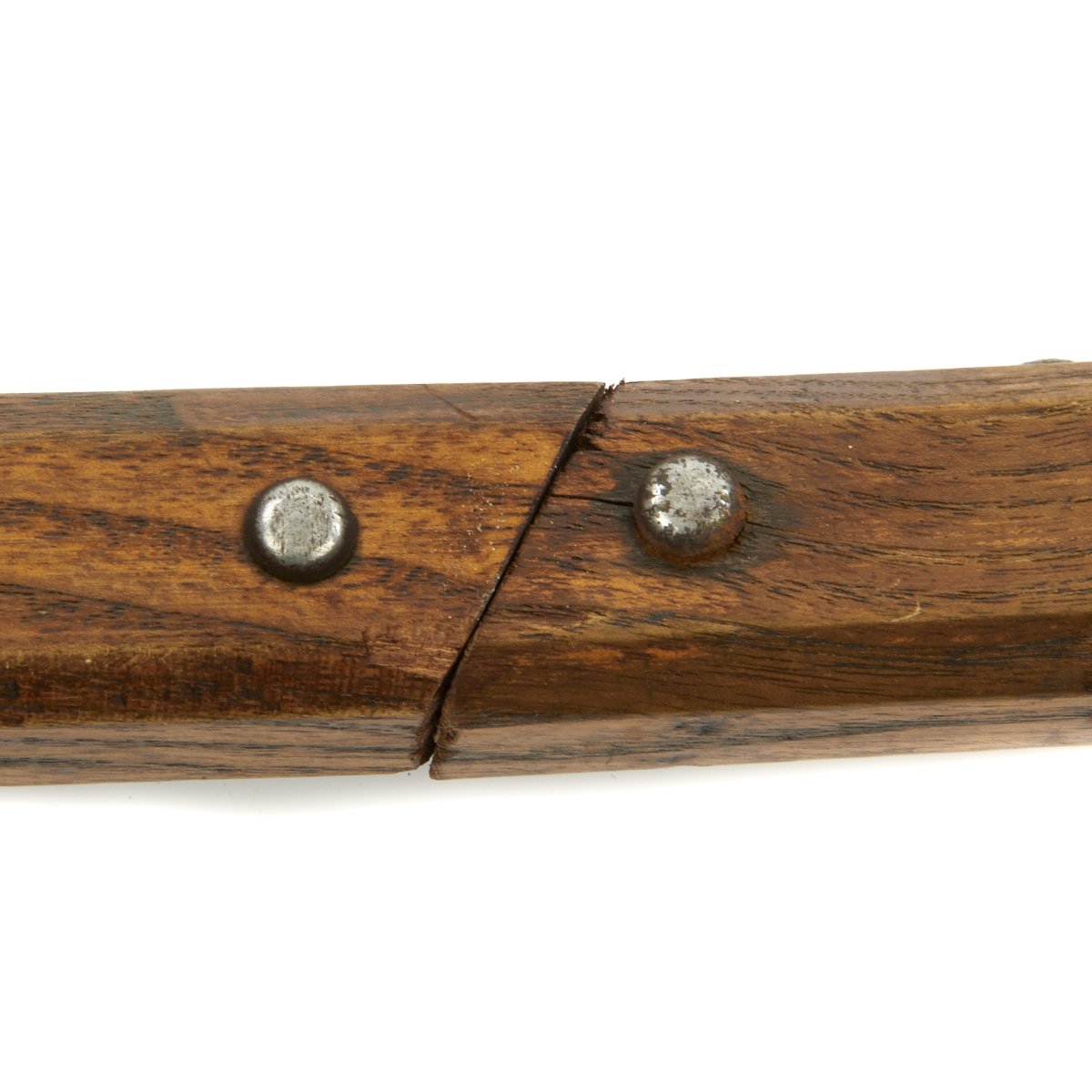 This is one of five varying examples we purchased in England in 2014. The two halves of the haft come from the same Halberd which can be confirmed by the wood grain pattern. These came straight off the wall having been there for possibly 300 years. Ready to Display!