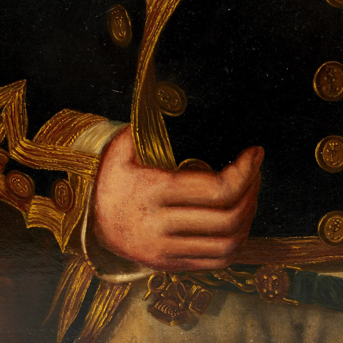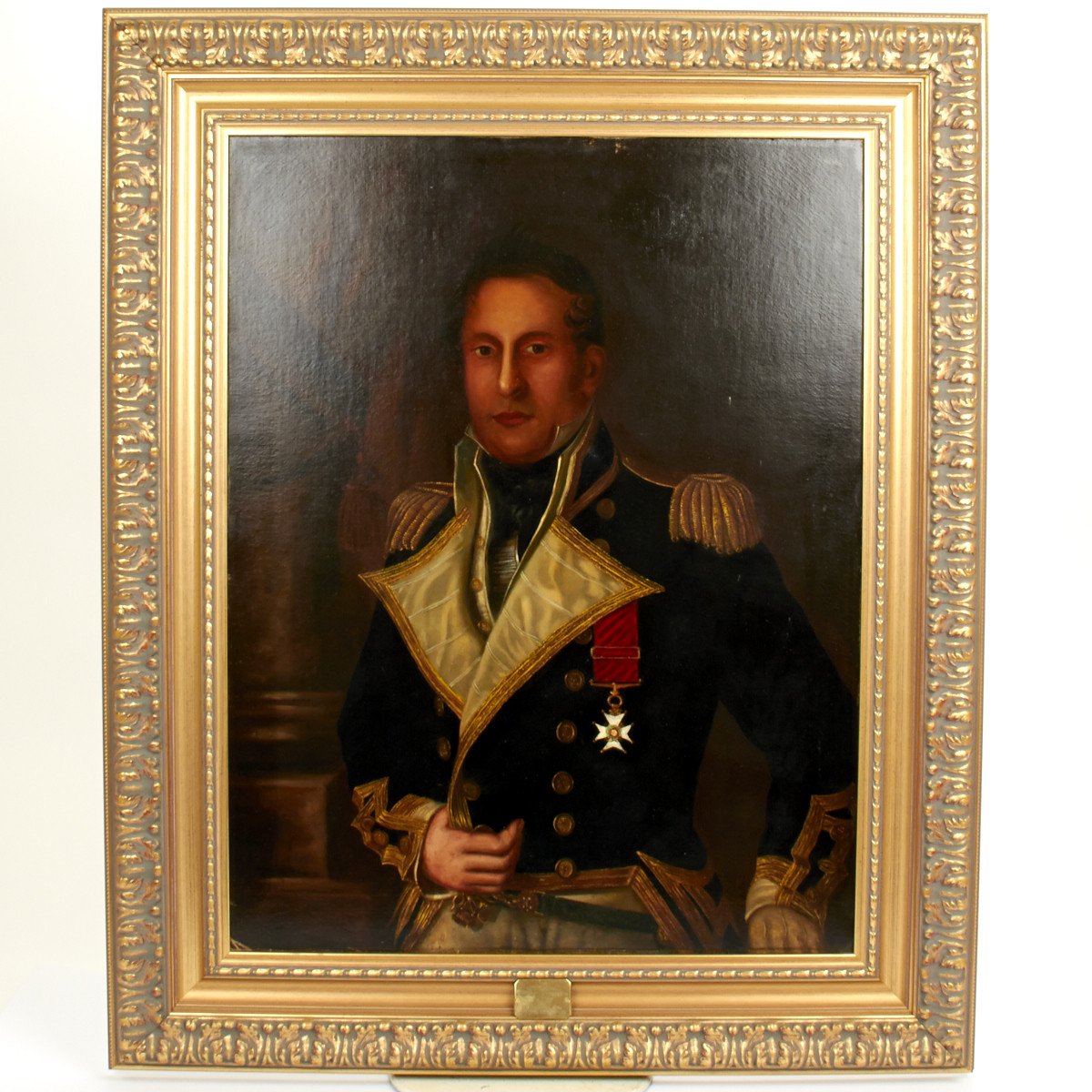 Original Item: One-of-a-kind. A most impressive magnificent large oil painting of a British Naval Officer who saw service in the Napoleonic Wars, starting as a Midshipman on HMS Queen Charlotte at the age of 12 and took part in Lord Howe's Glorious 1st of June 1794 naval victory.