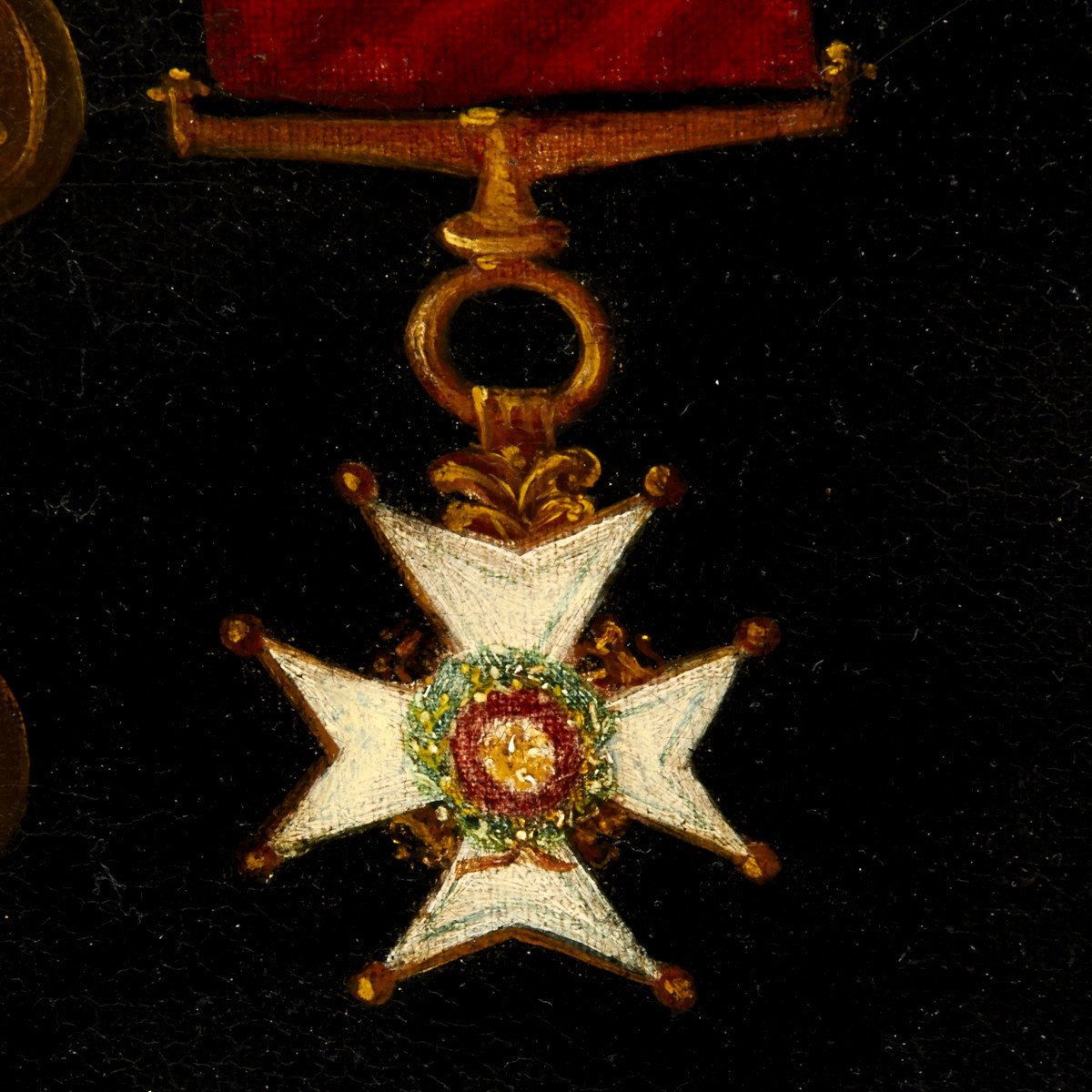 This is an original period oil painting of a known officer who sat for this piece, there is no visible signature (common) and has a finely engraved mounted brass plaque with details of the man.