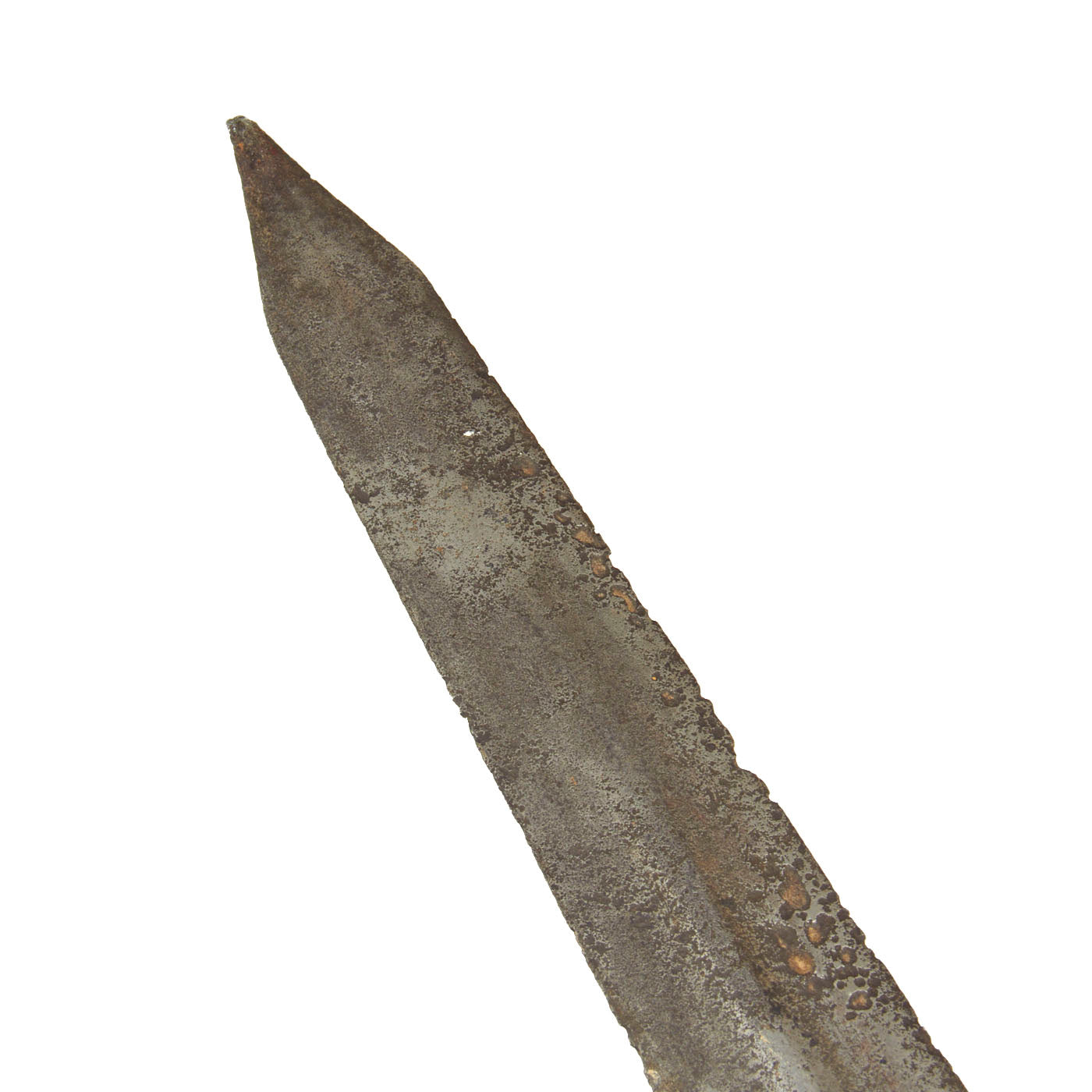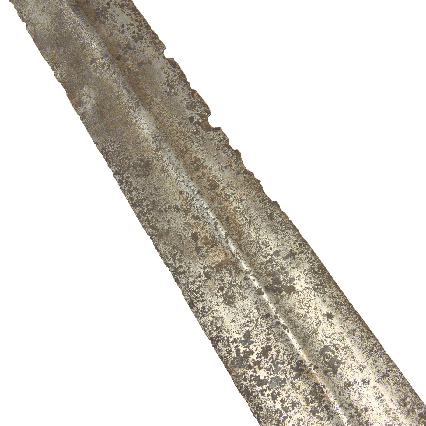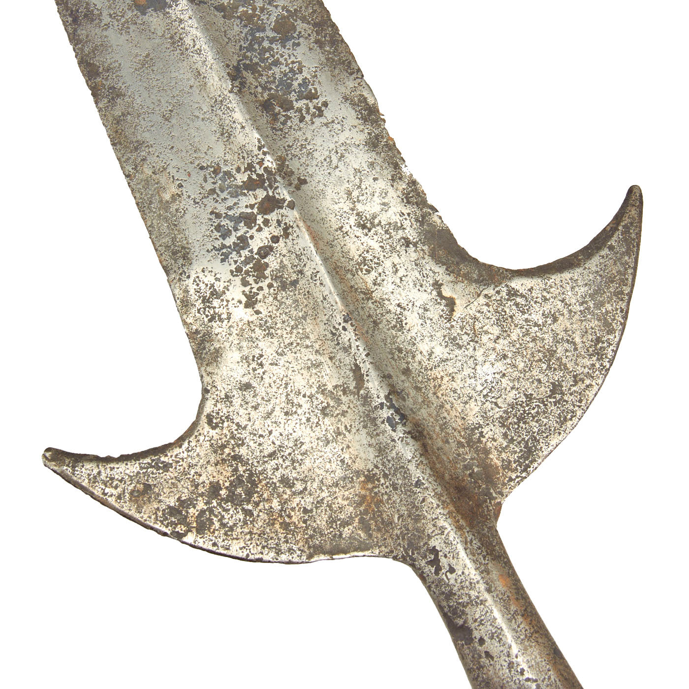 The total length is 94 ¼ ” with a 30 ¾ ” total length for the steel head. The condition is very good, especially considering the age, showing some expected pitting and nicks to the leading edge of the blades.