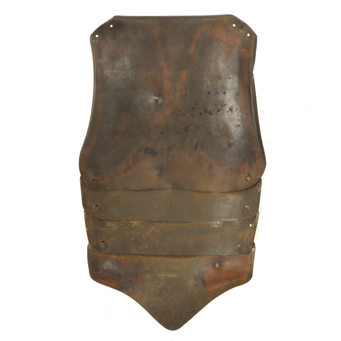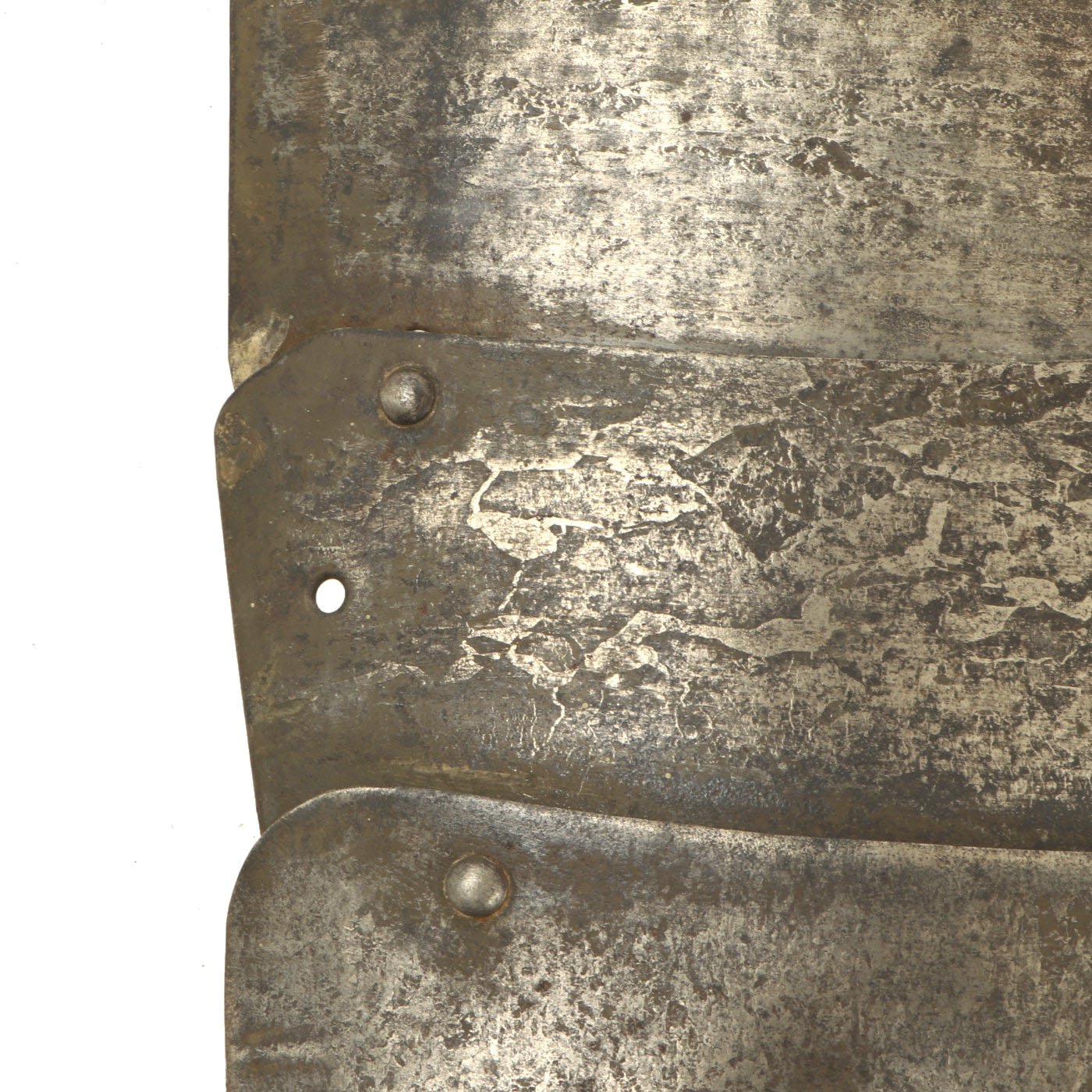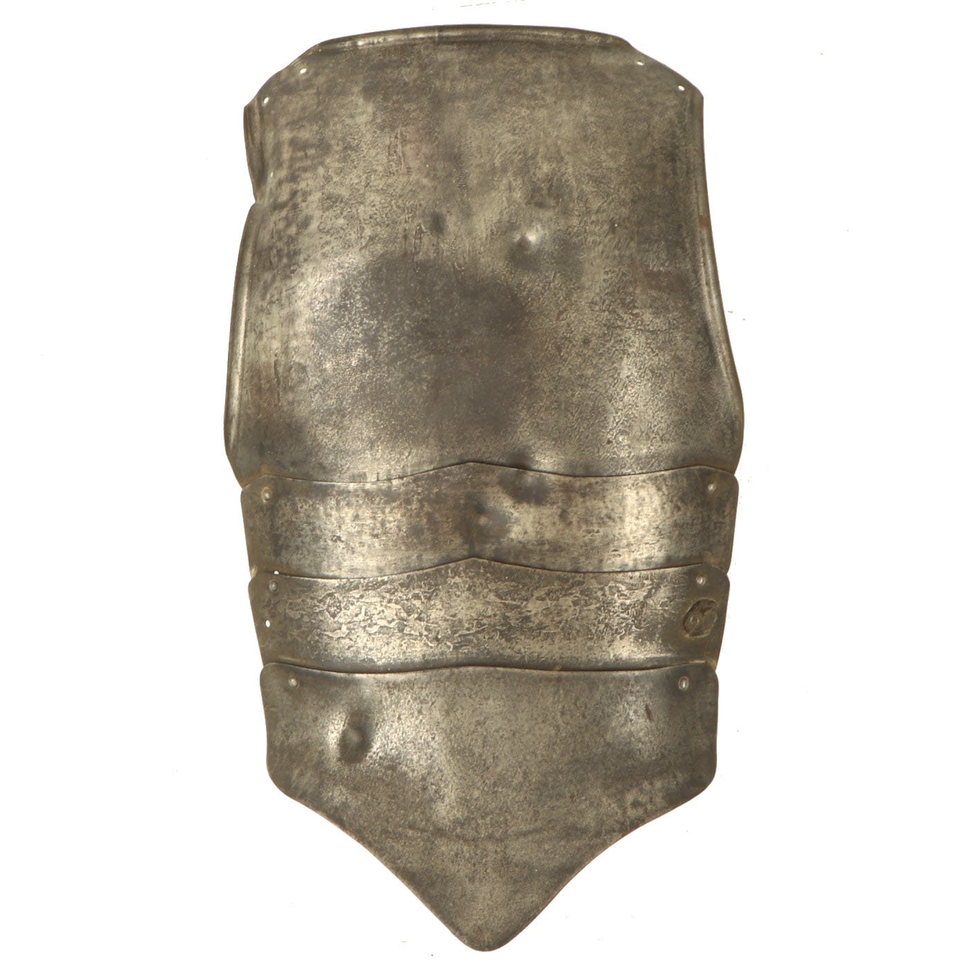 Original Item: Only One Available. This is a very well made 17th century European (French?) suit of armor Back plate. It measures approximately 22" tall by 13.25" at the widest point. Appears to have stopped a musket ball at some point in its history. Overall condition is very good and it displays beautifully.