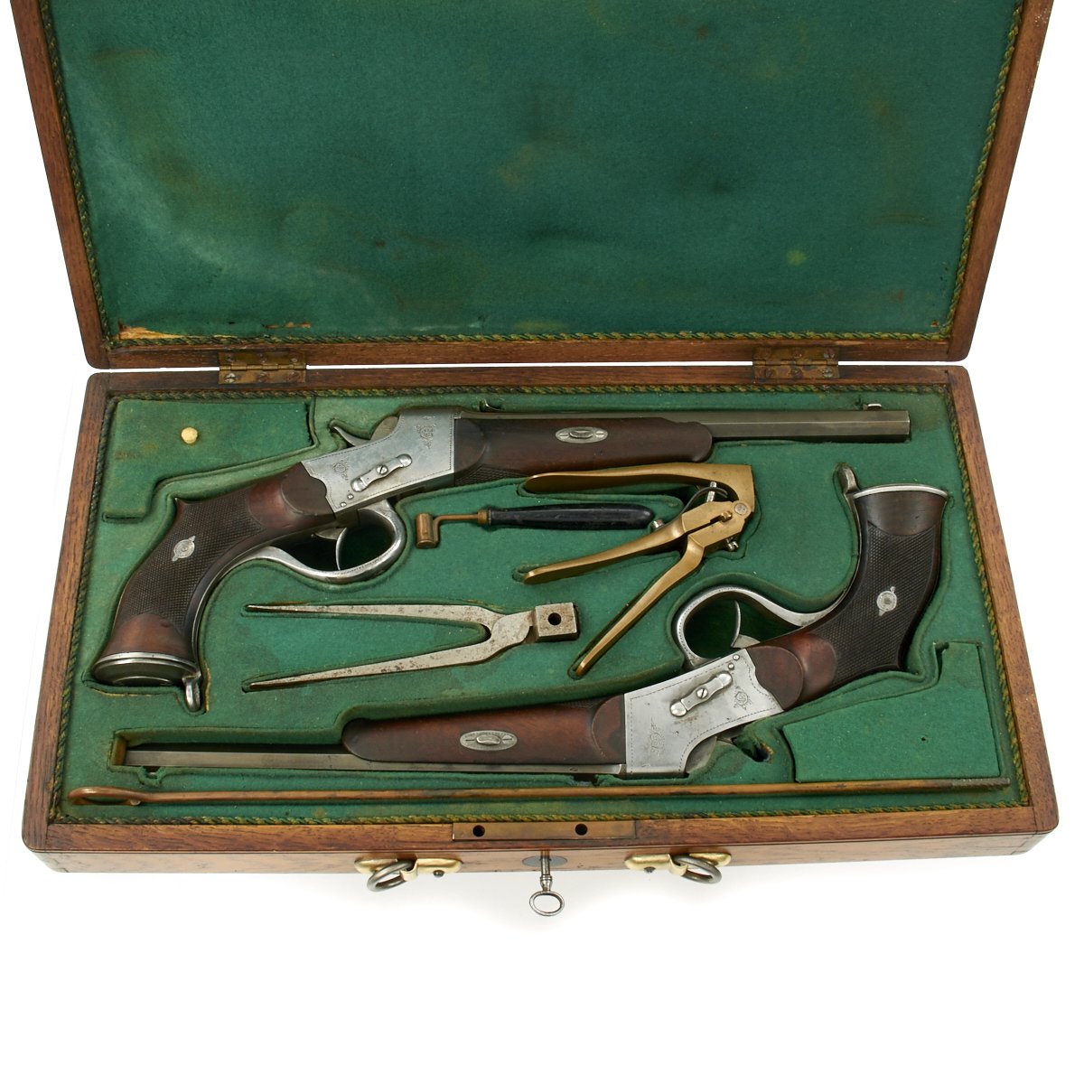 A truly superior set dating to the 1870's when both in the United States and Europe, target shooting, both indoor and outside, was becoming a very popular pastime for the wealthy.