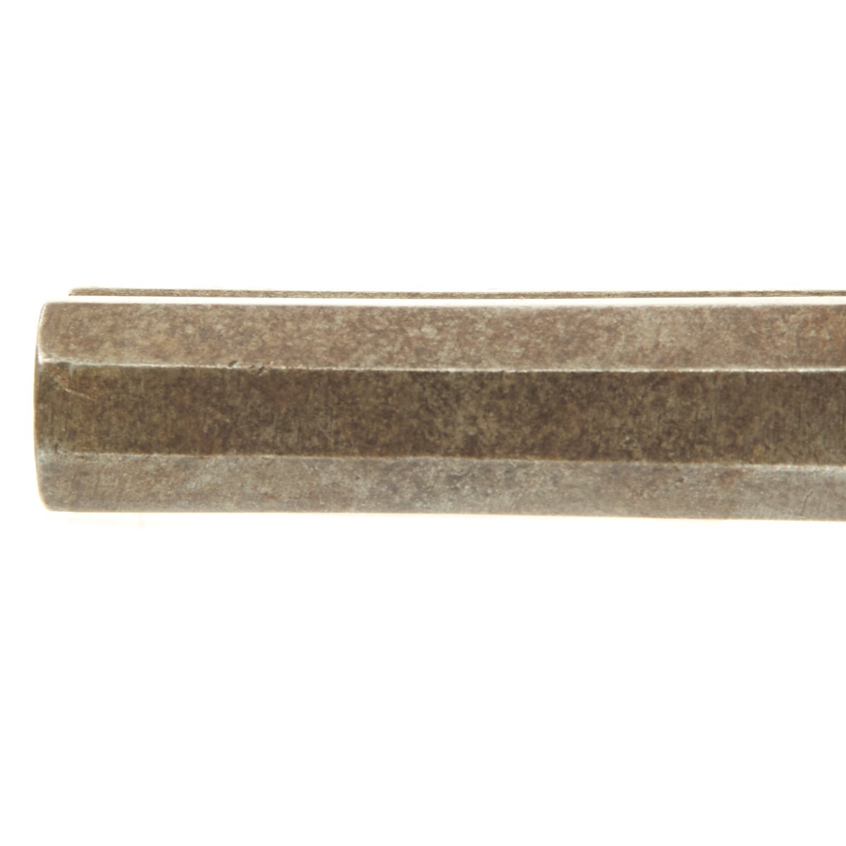 Unadorned this was a tool not a work of art. These were carried by Gentlemen, Traders, Bankers, Gamblers, and many others. The bore is approximately .43 caliber smooth bore, and the condition is quite nice, though without the fit and finish of more expensive weapons. One of the two screws to the rear of the trigger guard is missing, and the right side action sear is not functional, so the hammer will not hold half of full cock. The left side action works correctly.