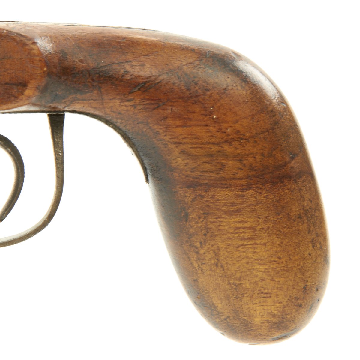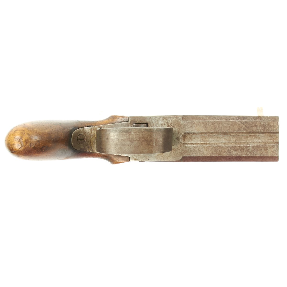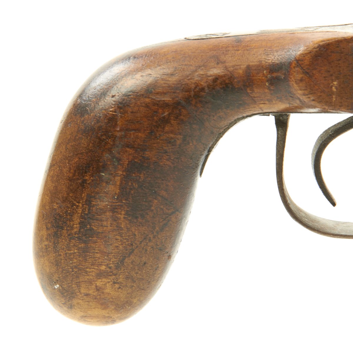 Original Item: Only one available. Produced mostly in Belgium this is a LIFE SAVER: a small Double Barrel percussion cap pocket pistol that could easily carried in a coat pocket. In the dank times of Dickensian London and Paris and New York for that matter CRIME was rife! Foot pads and thugs were everywhere.