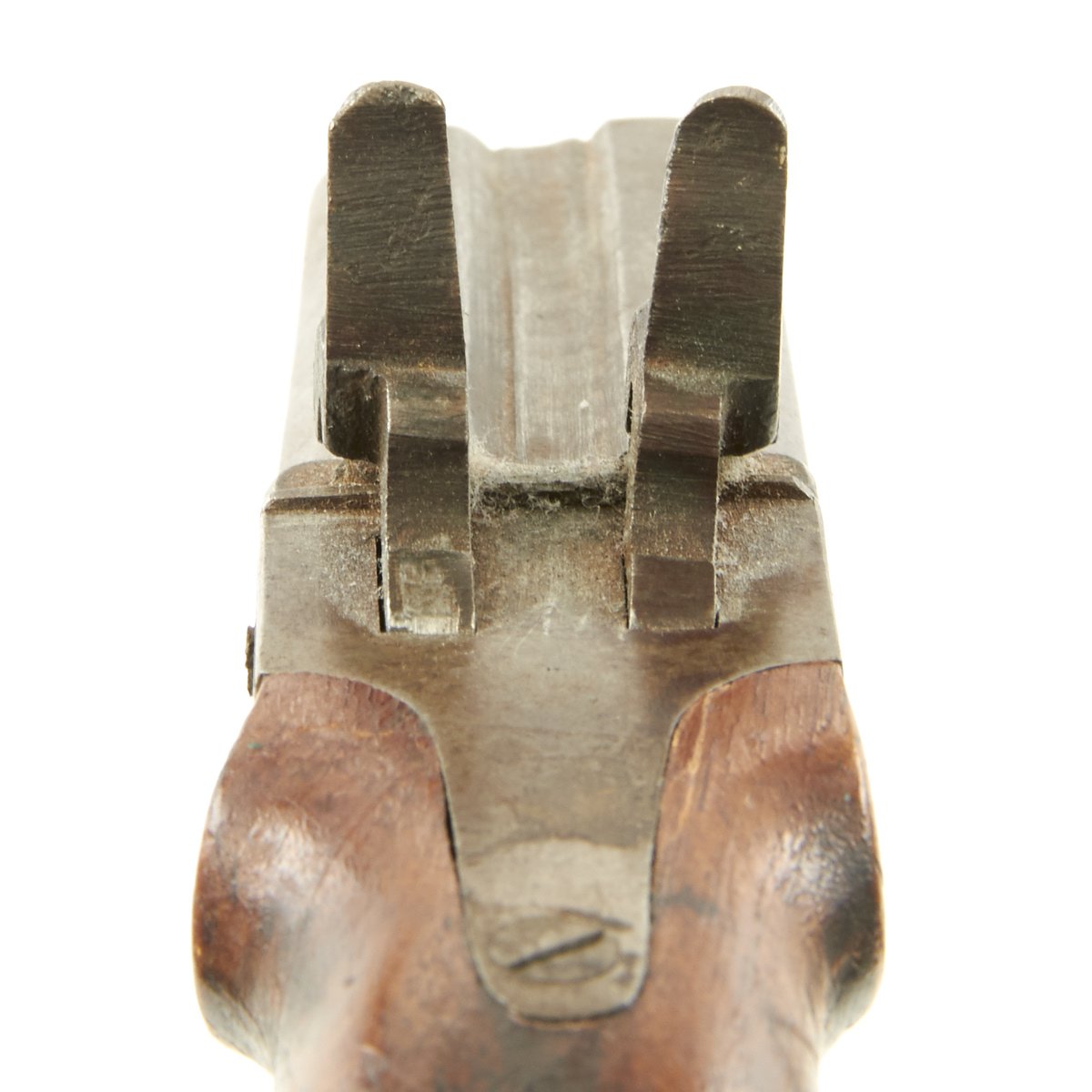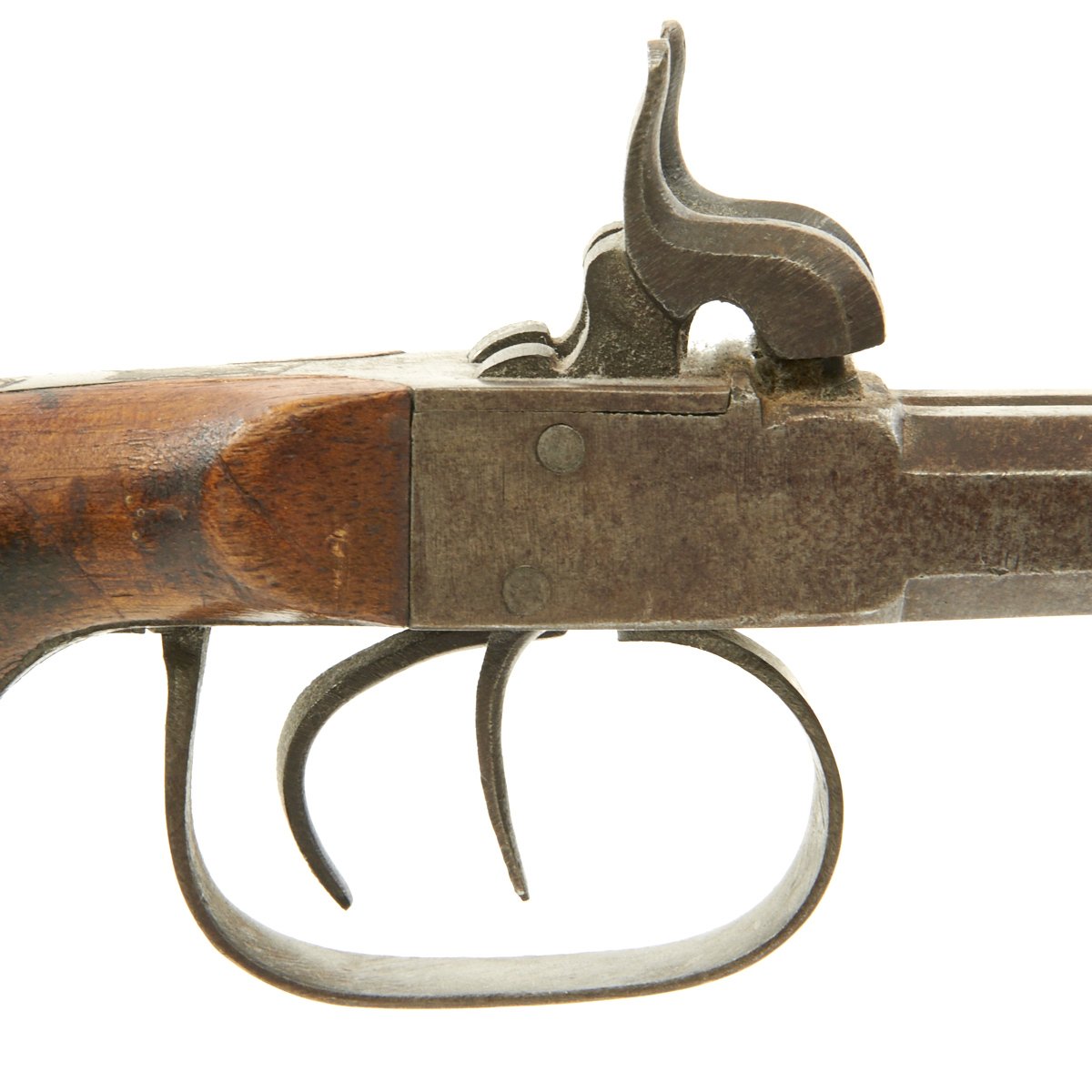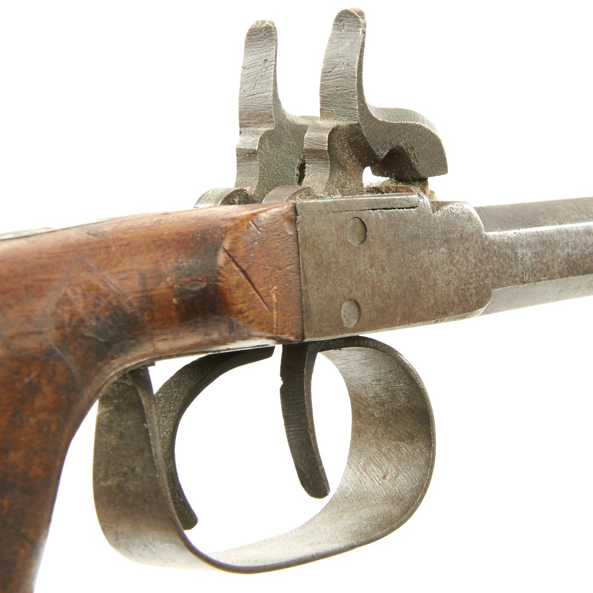 Original Item: Only one available. Produced mostly in Belgium this is a LIFE SAVER: a small Double Barrel percussion cap pocket pistol that could easily carried in a coat pocket. In the dank times of Dickensian London and Paris and New York for that matter CRIME was rife! Foot pads and thugs were everywhere.
