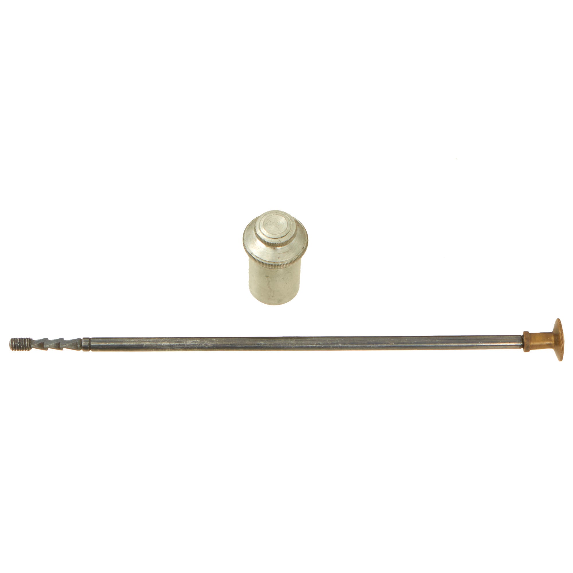 This example even comes with an original custom wooden case, which has the E. M. REILLY & Co label on the inside of the lid. It measures approximately 12" x 6 3/4" x 2 1/4", and is lined on the inside with red velvet plush material, which does show fading and wear from age and use. This definitely looks to be a period example, made by Reilly for the officer who purchased it. It has compartments on the inside, and there is a lovely cleaning rod, as well as the original key and an oiler, though the lock on the front is missing.