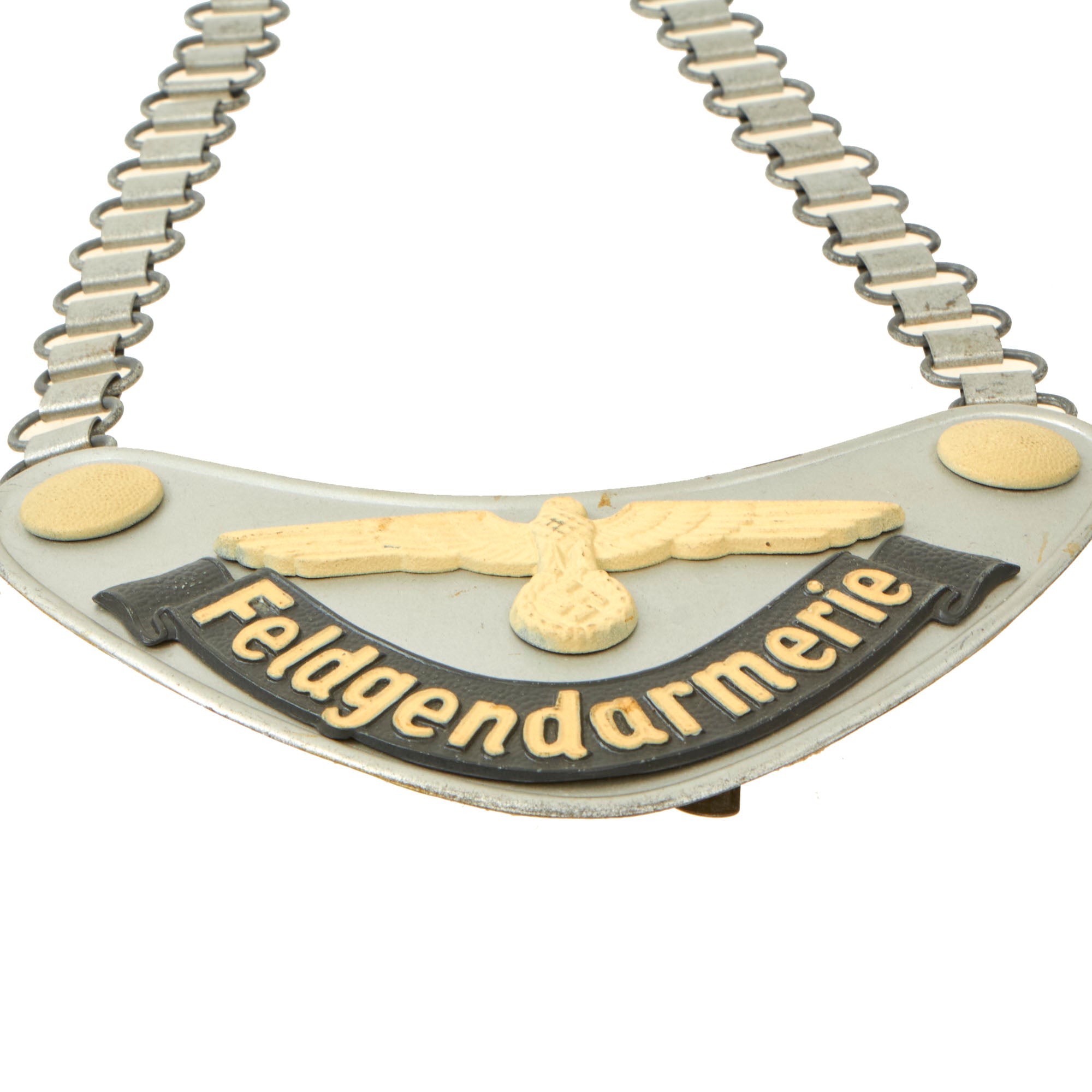 Original Items: Only One Available. Gorgets hold an interesting place in history, as they are a throw-back to the days of knights, when suits of armor included a neck protection device called a Gorget. They have been used since that time to identify membership or function in various military and police organizations, and Gorgets were thoroughly used during the Third Reich.