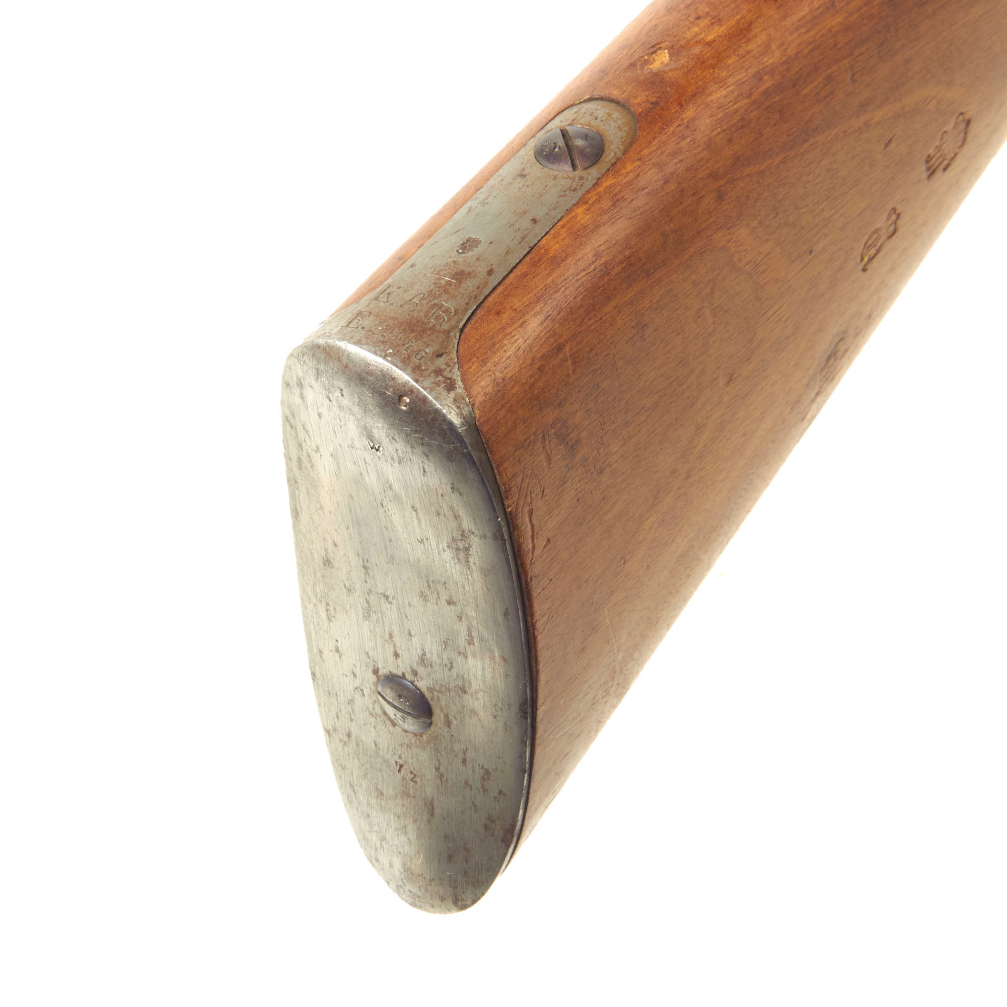 The butt plate tang of the rifle gives the clear regimental designation K. A. R. E. 2. 146.. Research indicates this would be for the Kaiser Alexander Garde Grenadier Regiment, also known as the "1st (Emperor Alexander) Guards Grenadiers". Designated in German as the Kaiser Alexander Garde-Grenadier-Regiment Nr. 1, this unit was first raised in 1814 and located in Berlin. The rest of the designation indicates it is for the Ersatz (Replacement) 2nd Squadron, Weapon 146. Guard regiments were usually staffed by the elite of German society, so it's not abnormal to find rifles that have seen very little service marked to these regiments.