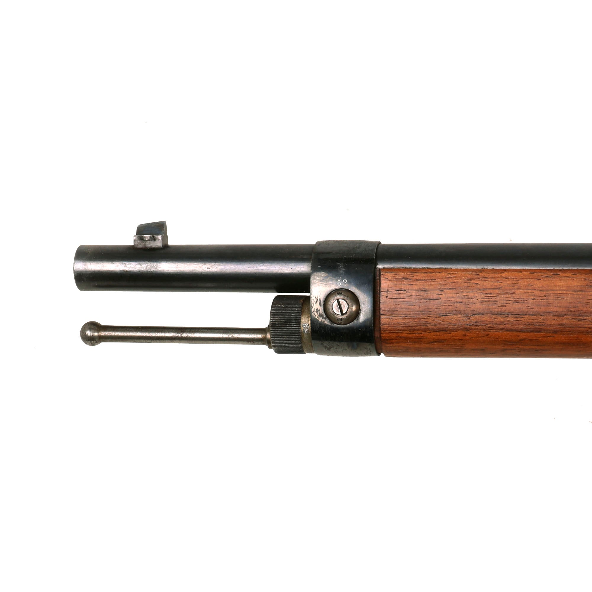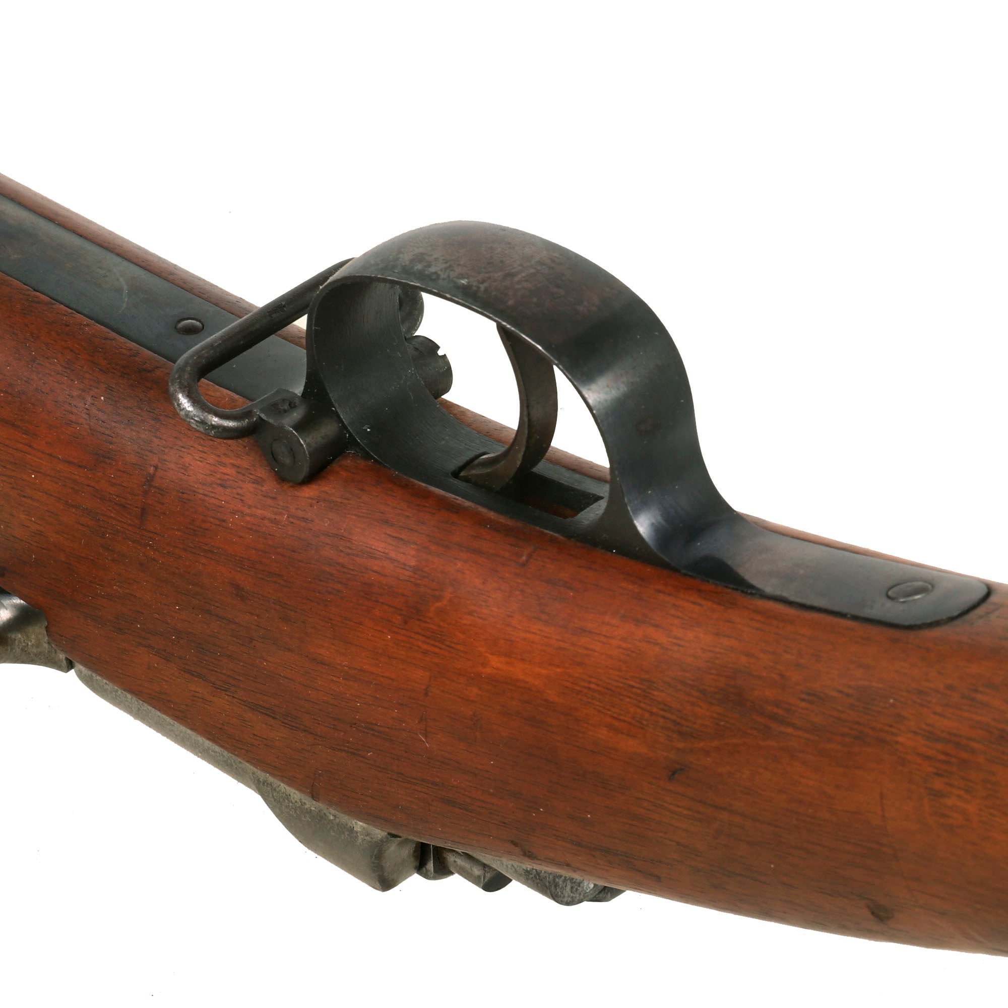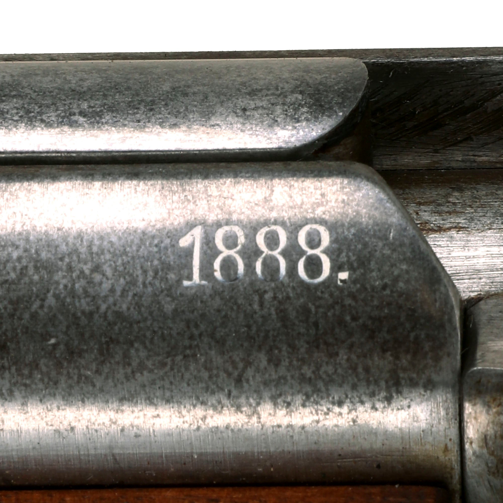 The receiver is dated 1888. on the right and marked I. G. Mod. 71/84. on the opposite side in "Black Letter" typeface. The rifle is complete with all major parts intact and functional, and almost all of the original finish. The receiver is bright steel with minor staining, while the barrel and other fittings are a lovely blued finish, with just some light wear in areas. It looks like an unissued gun that was kept in storage for decades, with maybe a wipe down occasionally to keep it clean, which allowed light staining to take hold on the bright steel.