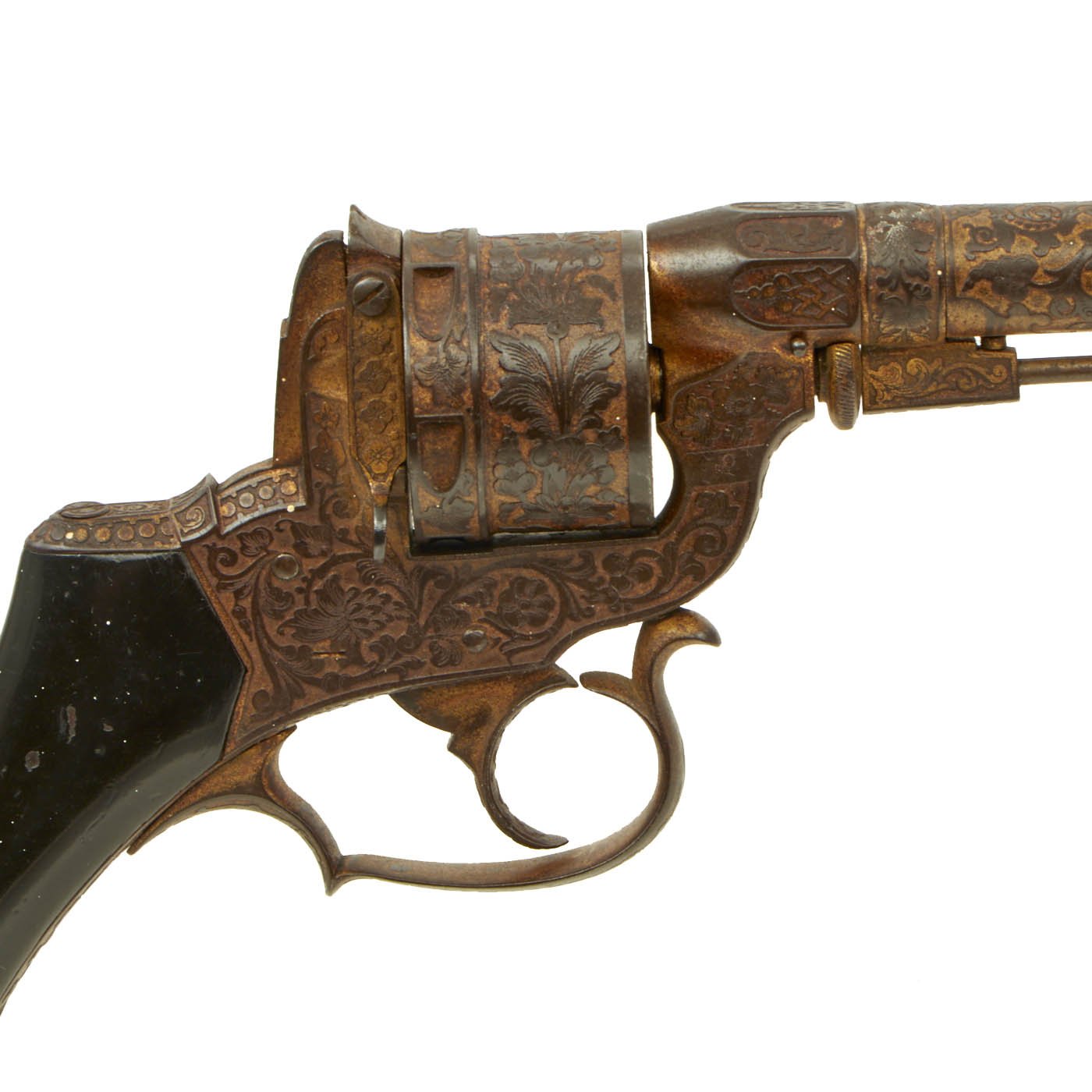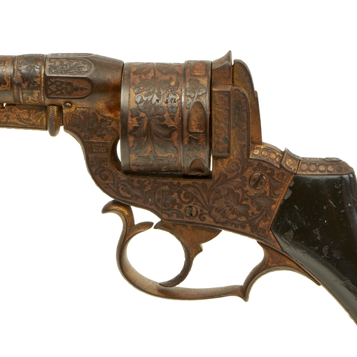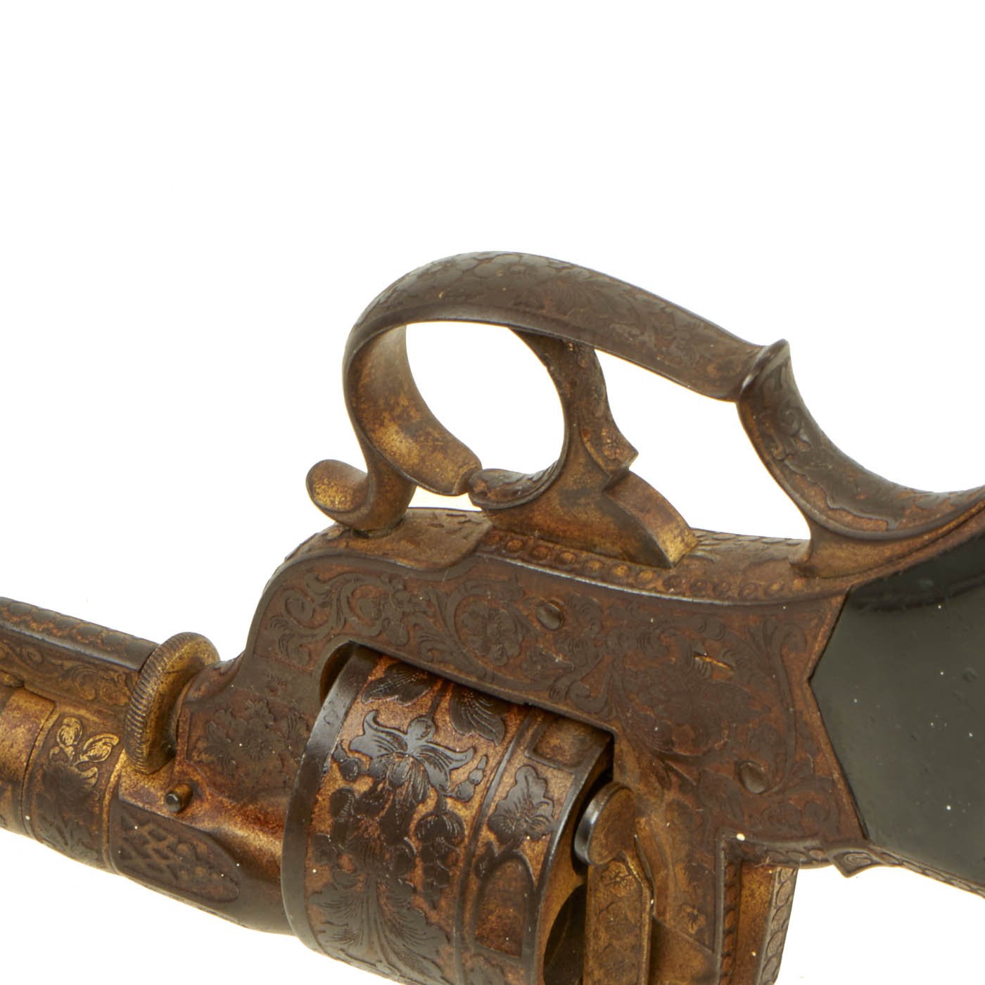Original Item: One of a Kind. This is a true showpiece! This is a fabulous exhibition grade French gold washed and embossed 11mm six shot presentation revolver, made by the famous gunsmith Louis Perrin of Paris. This magnificent piece is said to have been first shown at Napoleon III's Parisian Universal Exposition of 1855.