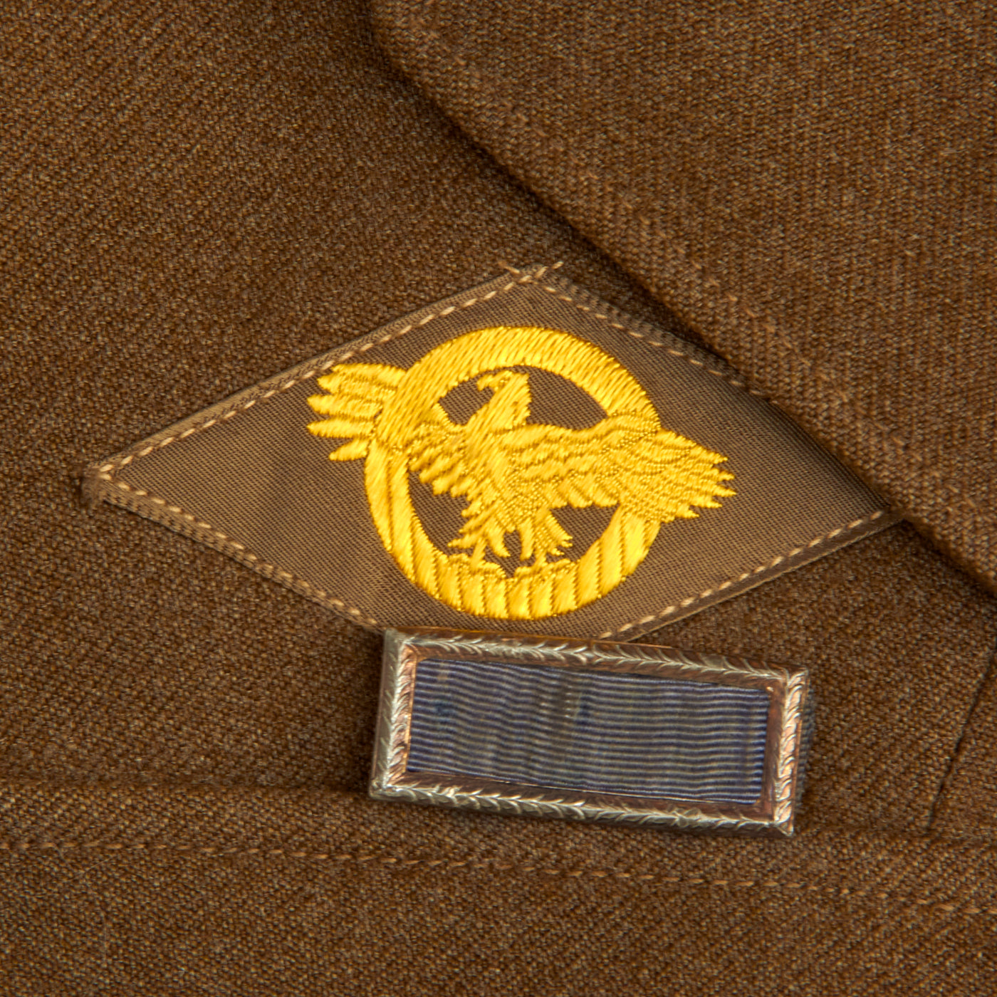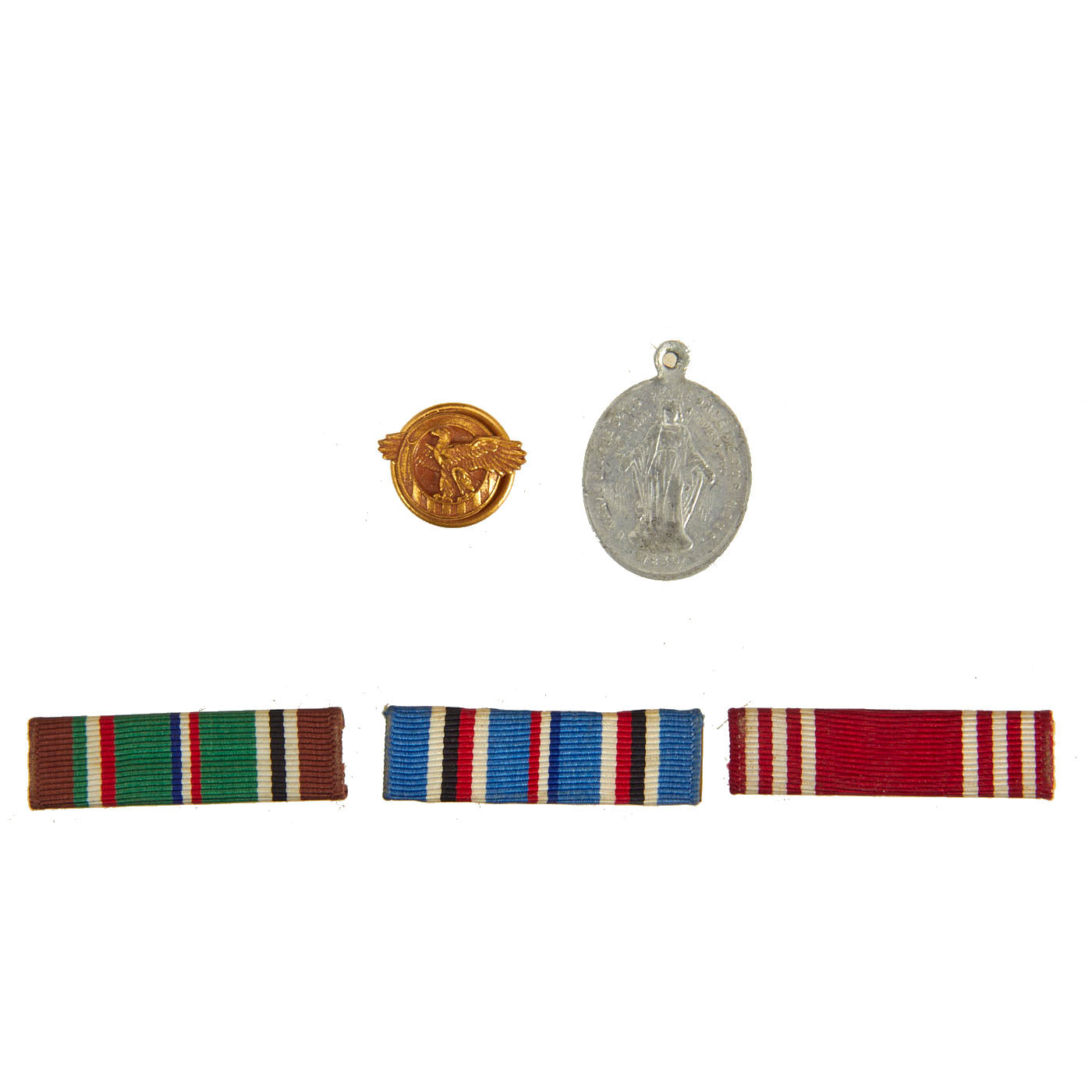 - Spare American Campaign, Good Conduct, and ETO Ribbons, Ruptured Duck Lapel Pin, St Christopher’s Medallion