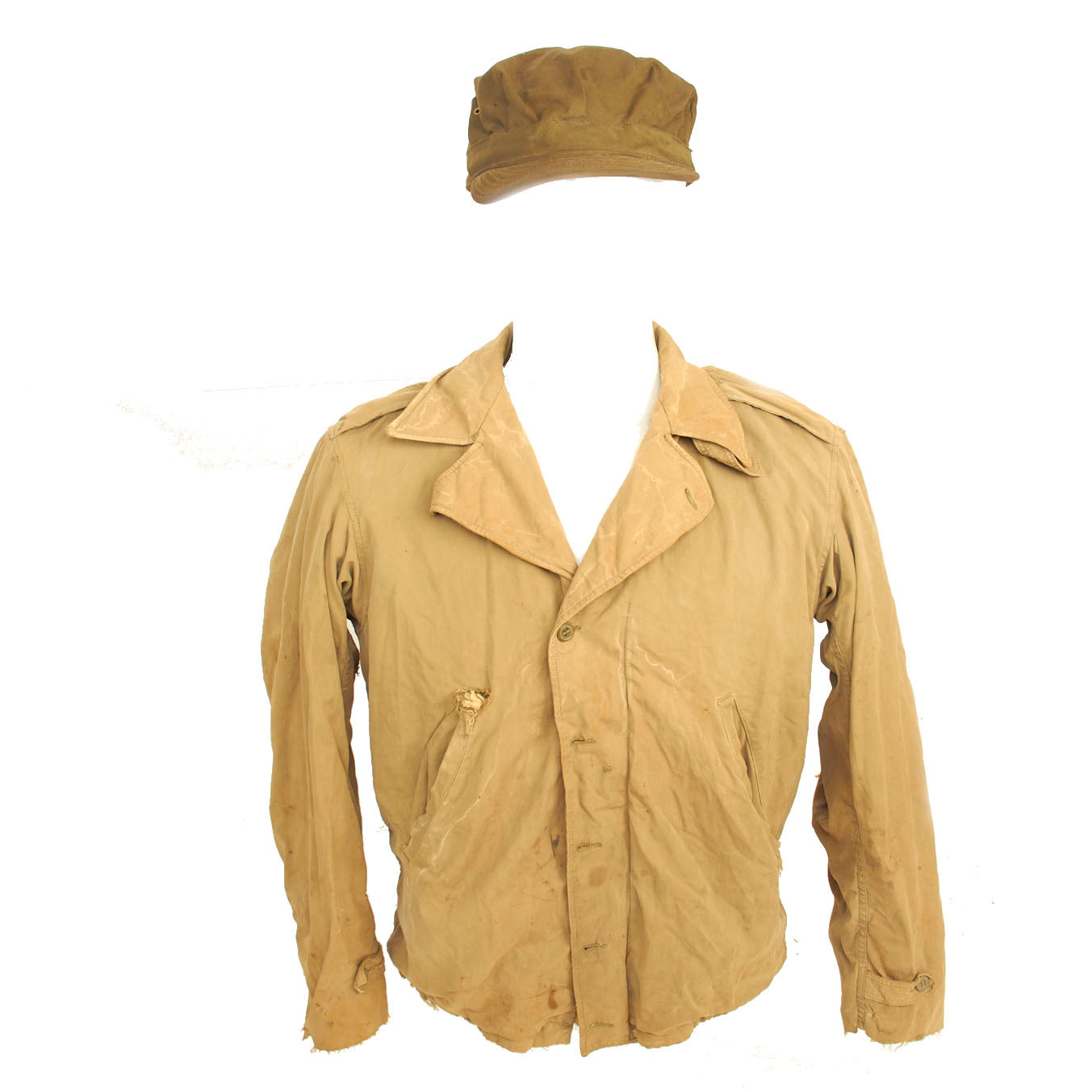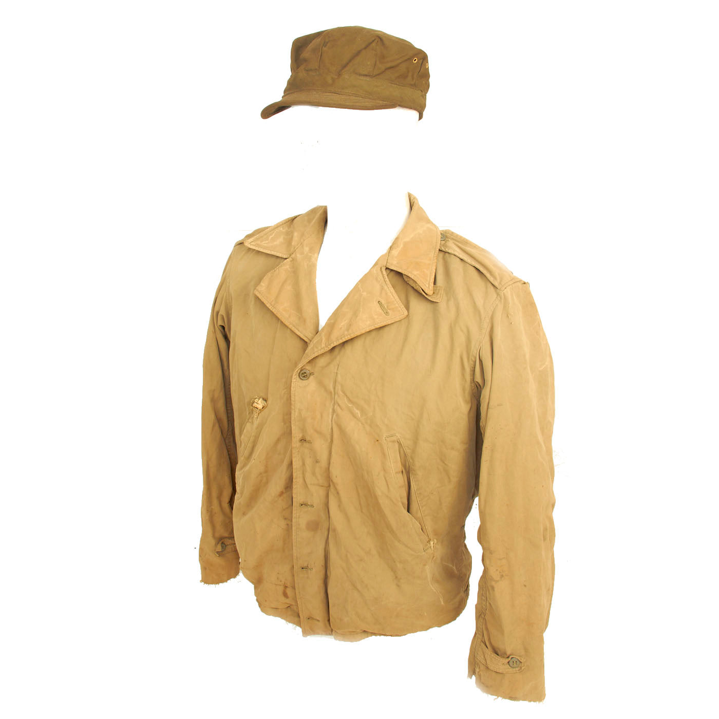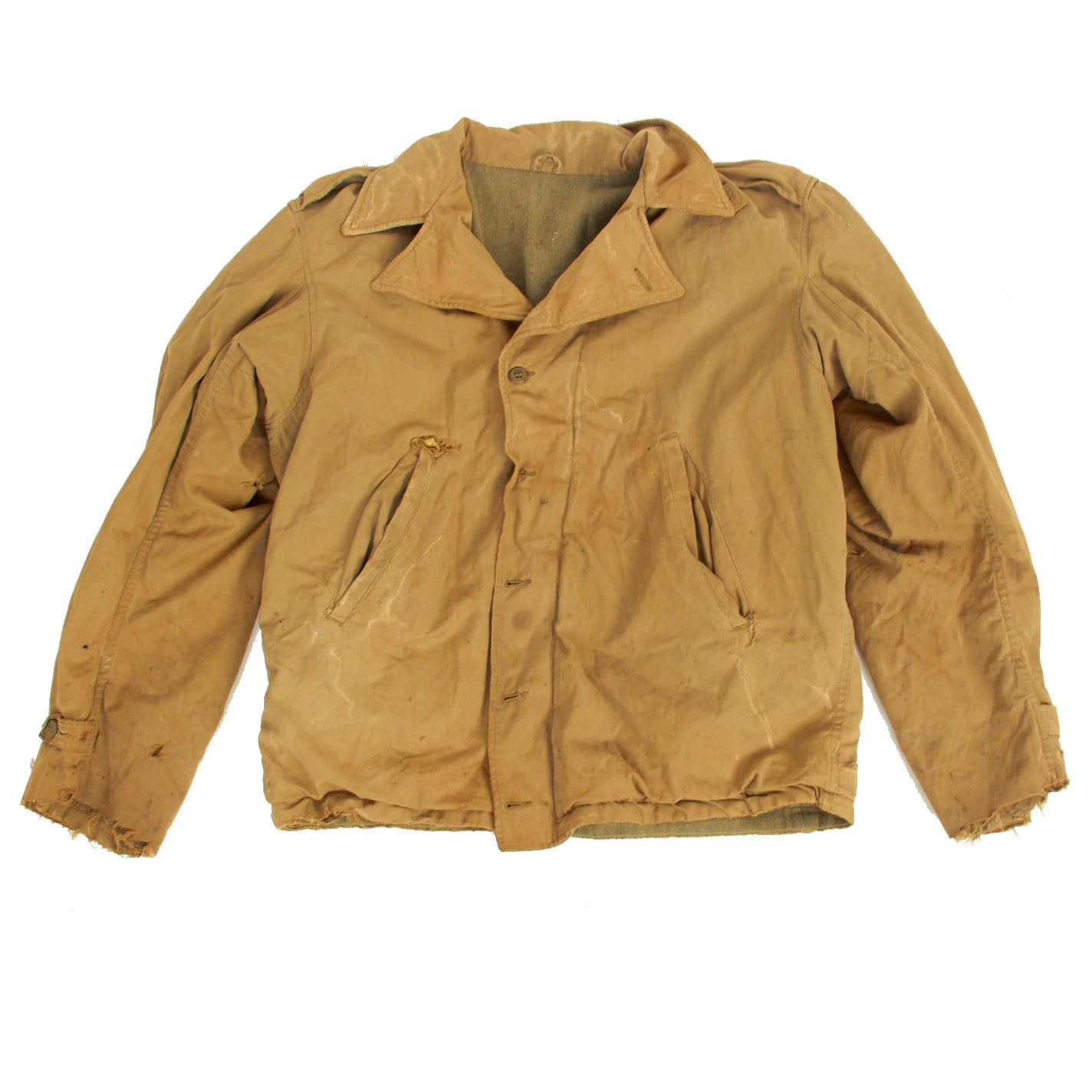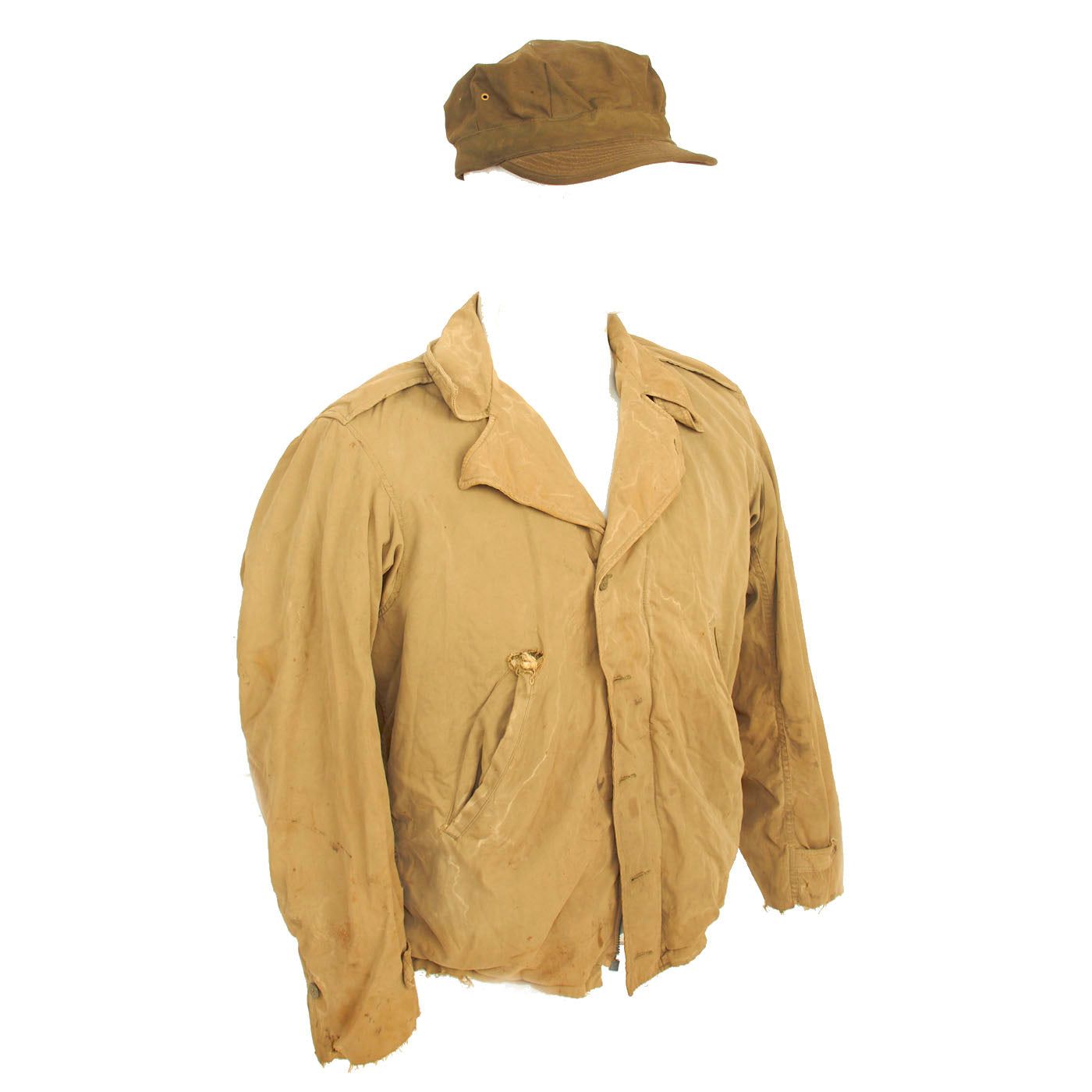 - Combat Worn M-1941 Field Jacket. This is the “real deal” Stained, tattered, sweat stained… exactly the way one would expect a real worn combat used garment to look!