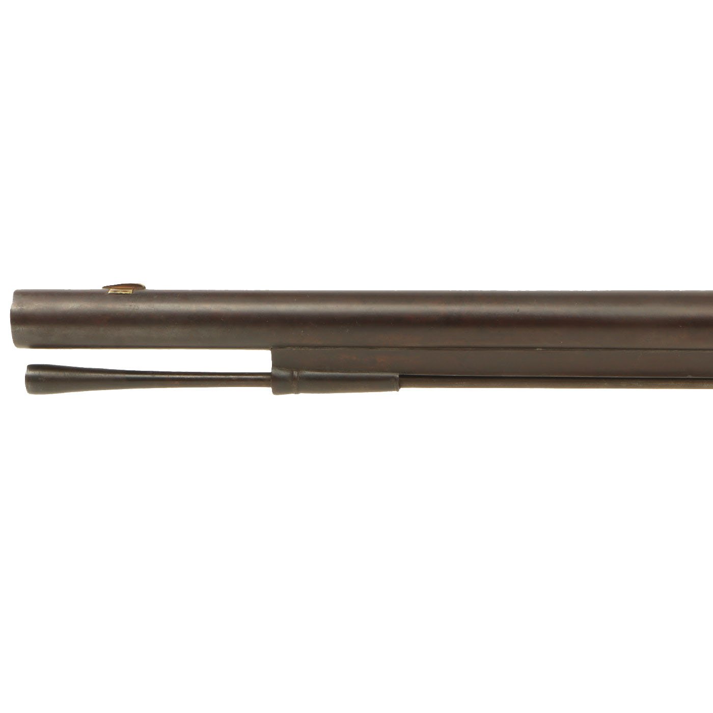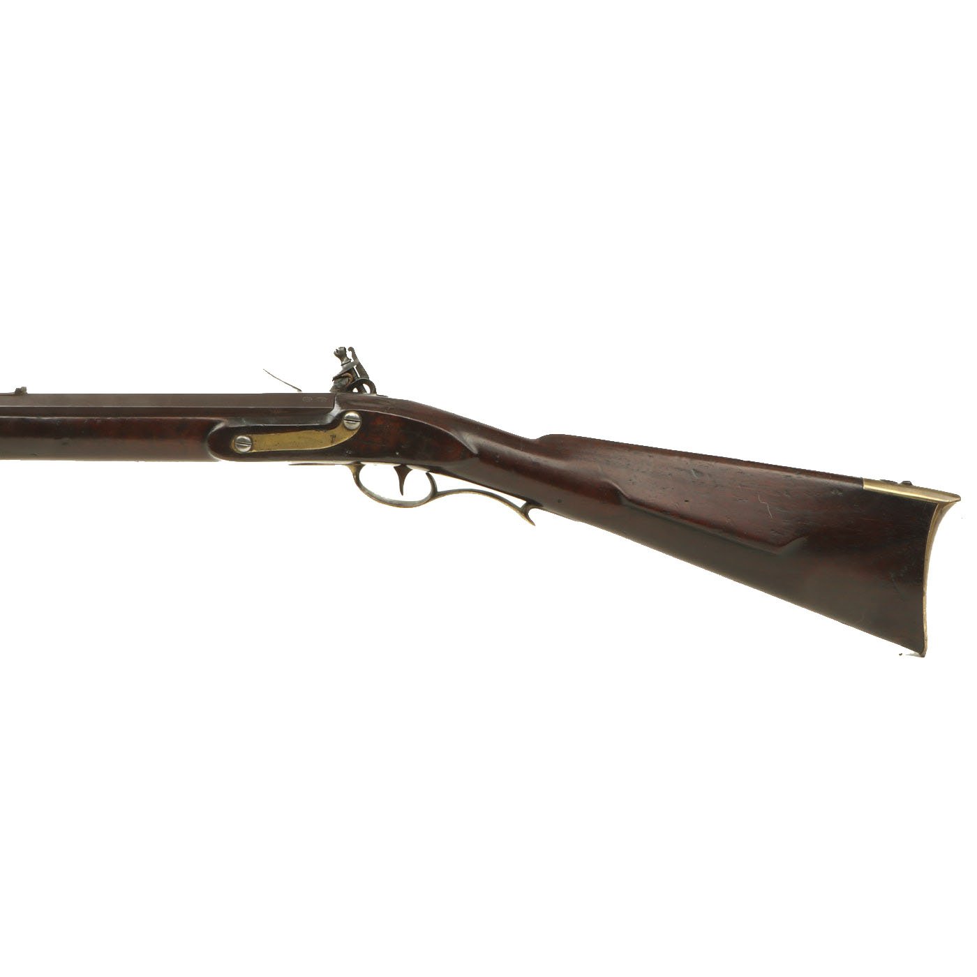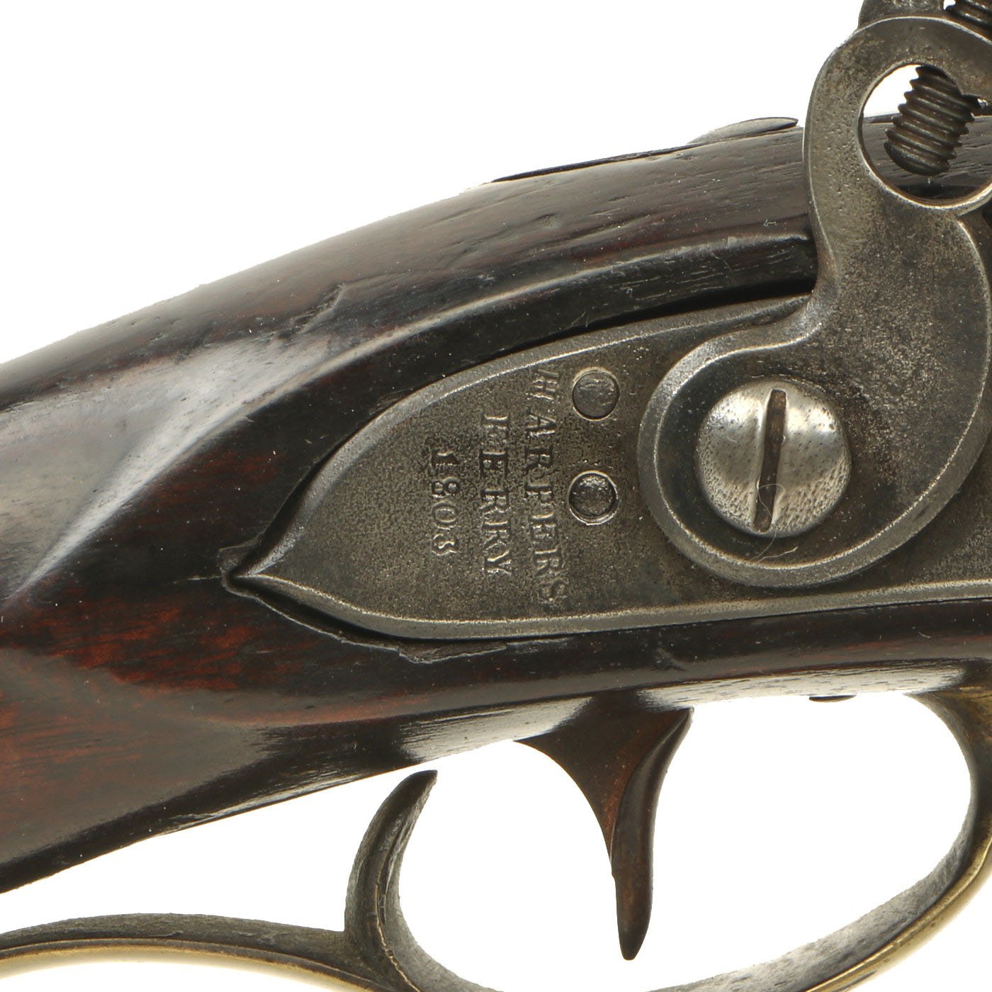 Original item: One of a Kind. Now this is something we do not see every day! This is a very early American Flintlock Rifle, in fact the first model rifle ever issued by the Federal Armories! Previously only Flintlock muskets and pistols has been produced, but with the world moving towards the increased accuracy of rifled barrels, the United States had to keep up. The first model designed the Harpers Ferry Model 1803, which is what we have here. There were several different models made, but the 33 inch barrel and octagonal to round barrel identify this definitively as a First Model, especially with the 1803 dated lock. By 1805, the barrel design had changed to have the entire bottom octagonal, so this is definitely an early production example.