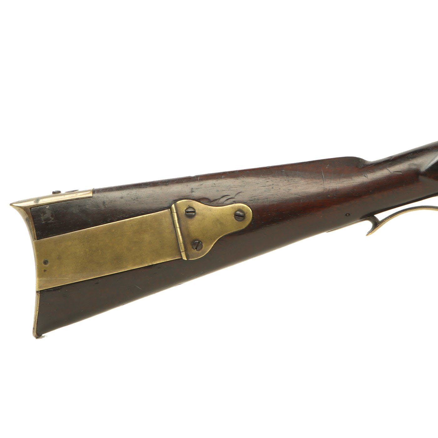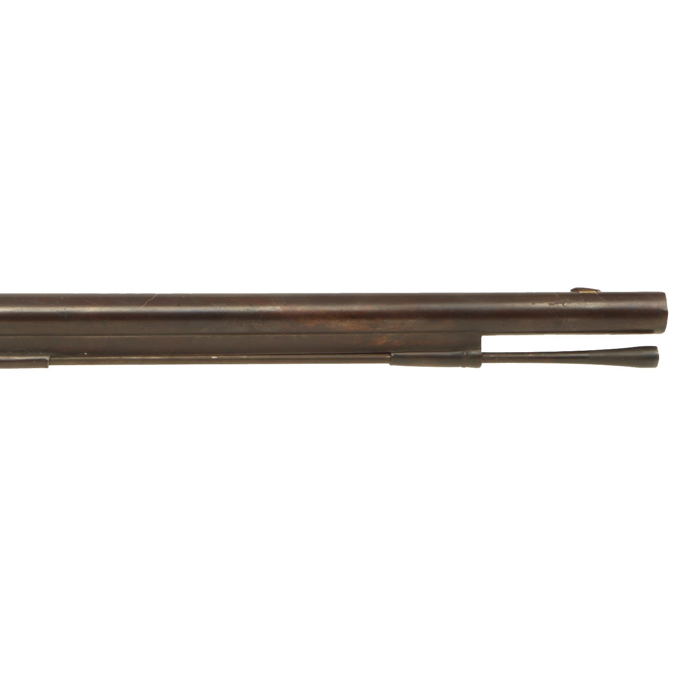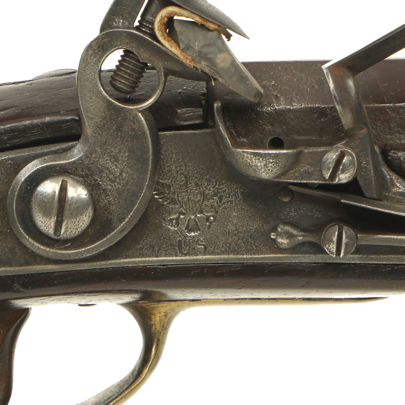 Original item: One of a Kind. Now this is something we do not see every day! This is a very early American Flintlock Rifle, in fact the first model rifle ever issued by the Federal Armories! Previously only Flintlock muskets and pistols has been produced, but with the world moving towards the increased accuracy of rifled barrels, the United States had to keep up. The first model designed the Harpers Ferry Model 1803, which is what we have here. There were several different models made, but the 33 inch barrel and octagonal to round barrel identify this definitively as a First Model, especially with the 1803 dated lock. By 1805, the barrel design had changed to have the entire bottom octagonal, so this is definitely an early production example.