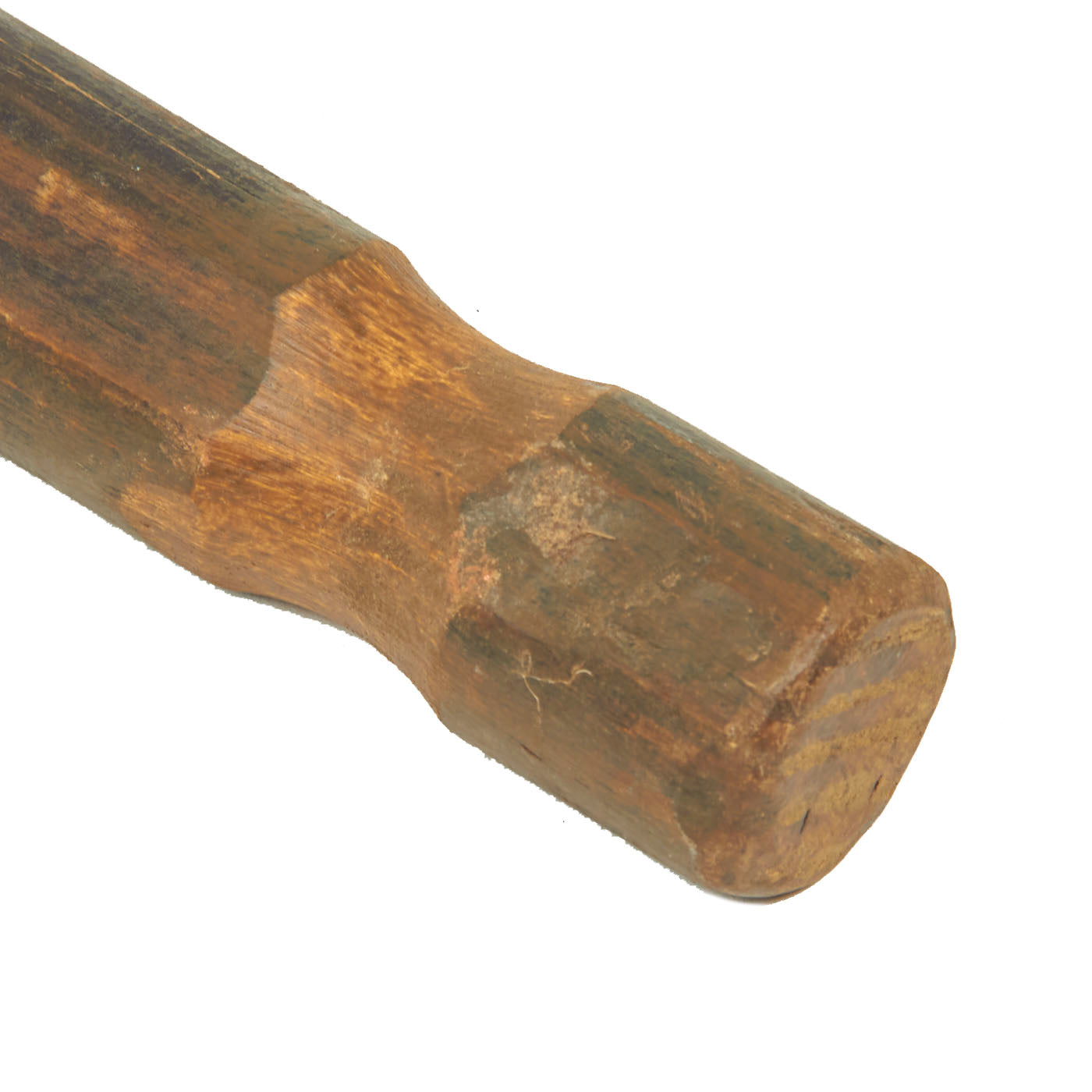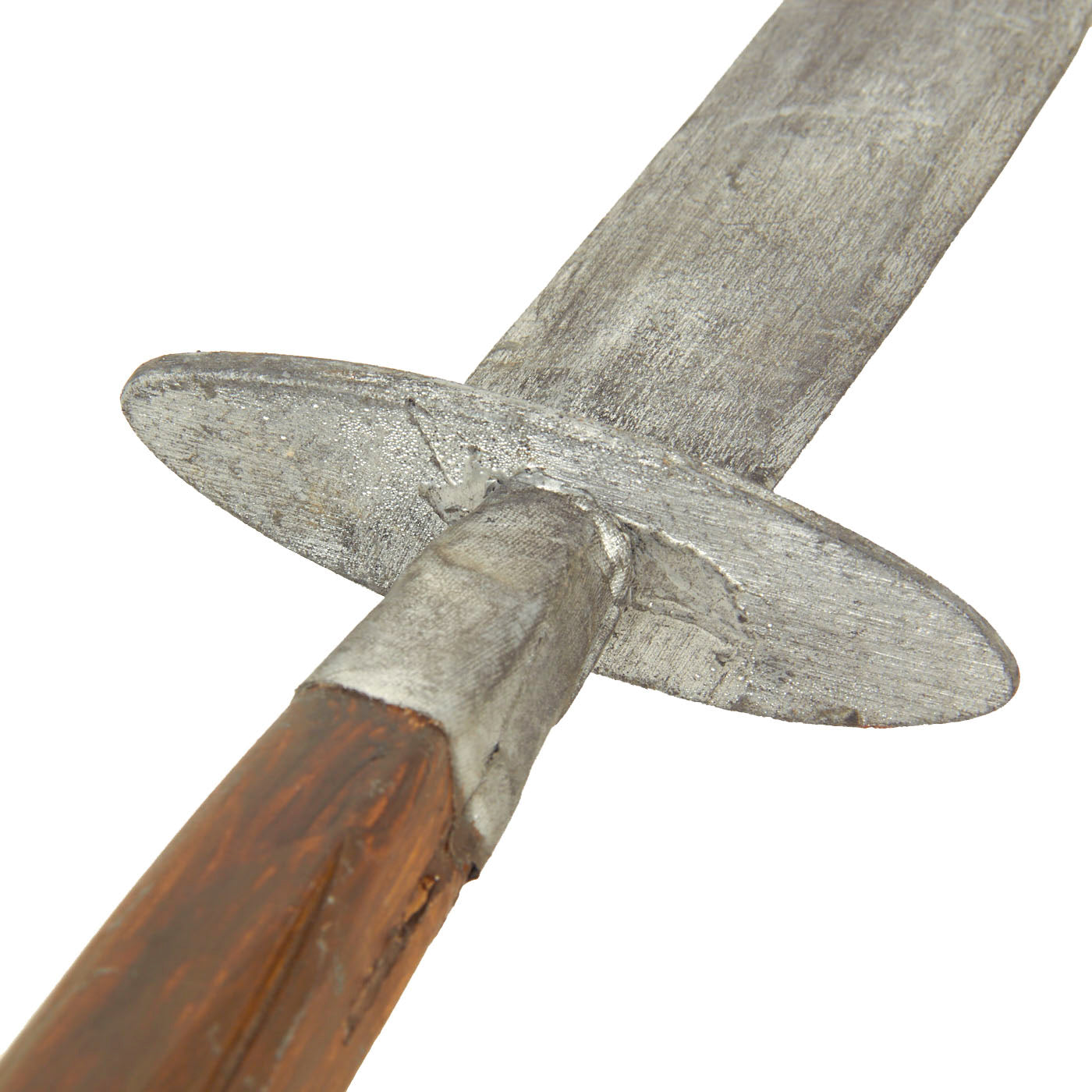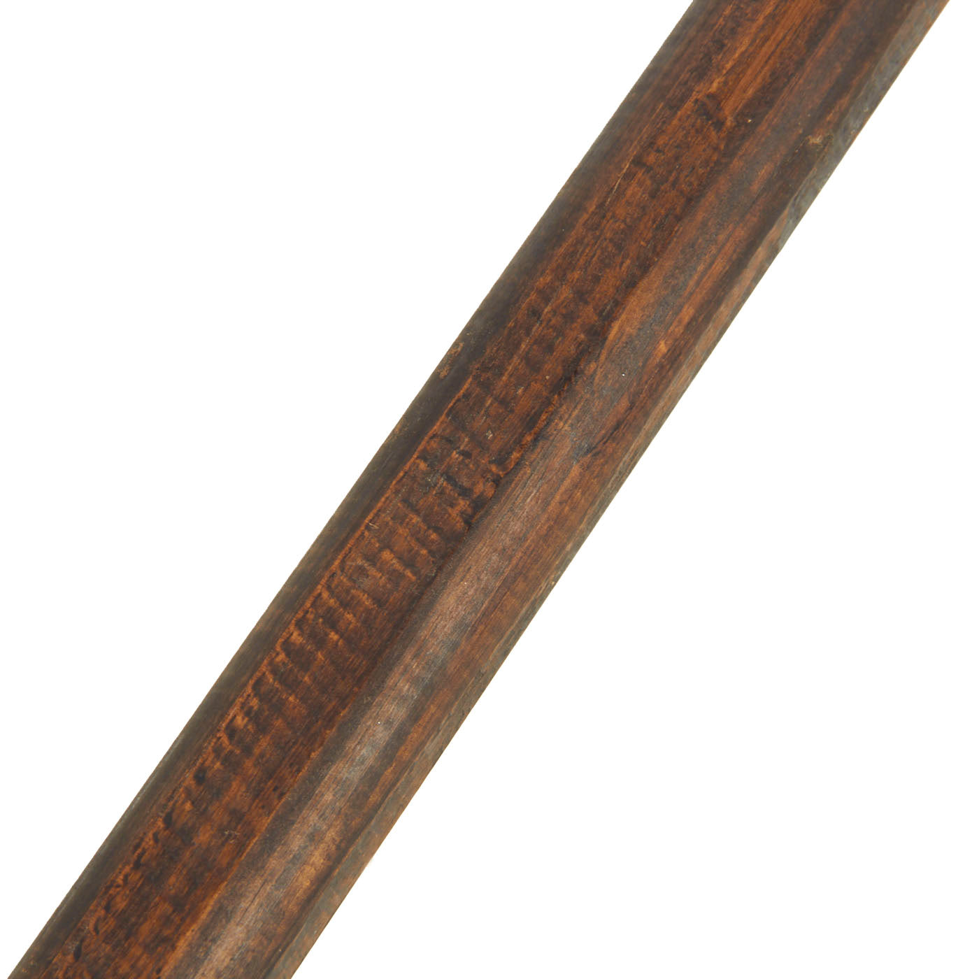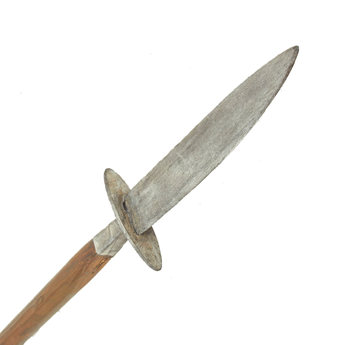 The pikes Brown ordered consisted of a 9 ½ to 10-inch long double-edged blade of forged cast steel, a 4 ½ inch wide iron guard, a 3 ¼ inch long, tapering ferrule, and a screw. These were fitted onto six-foot ash handles. Serial numbers were stamped on three parts of the weapon. This pike is stamped 630.