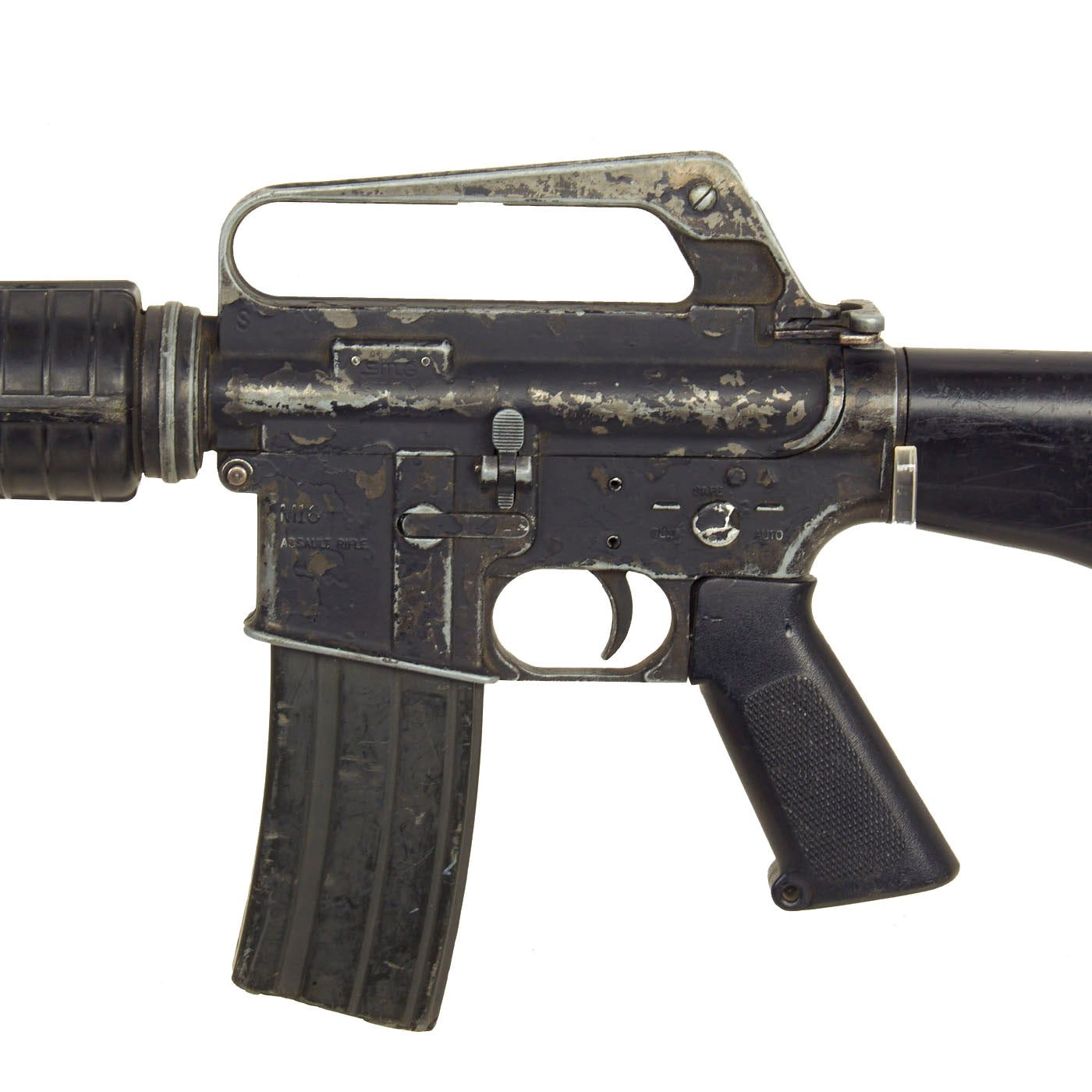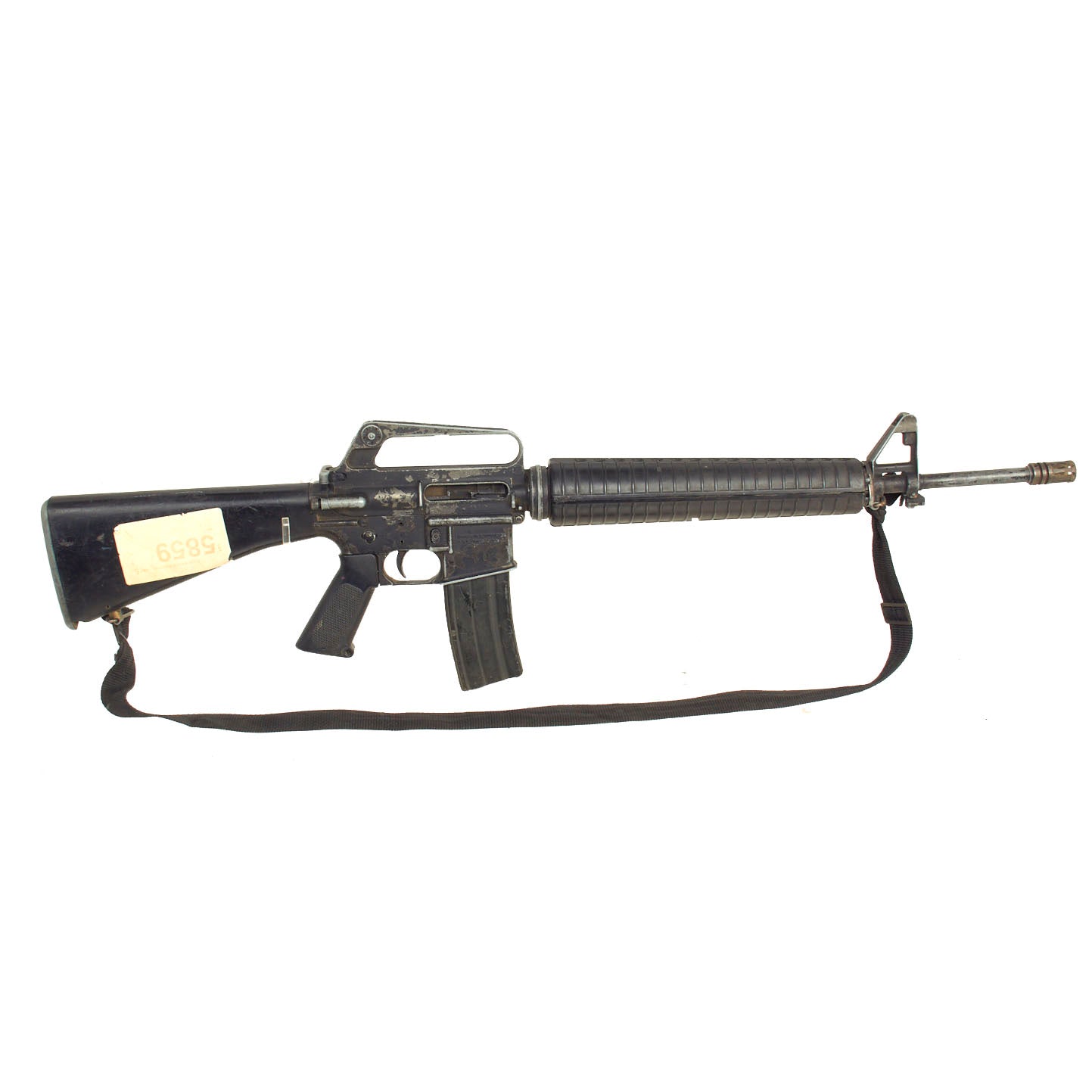 Original Item: Only One Available. This is a full scale metal replica non-firing prop M16 as used in the Hollywood film “Courage Under Fire” (1996). This was acquired from the Ellis Props and Graphics liquidation auction. Ellis was the oldest and the largest Prop Houses in the World until it went our of business in the early 2000s. The original ELLIS AUCTION LABEL IS STILL ATTACHED to the butt stock of this prop gun and reads DAY 5, LOT 5859.