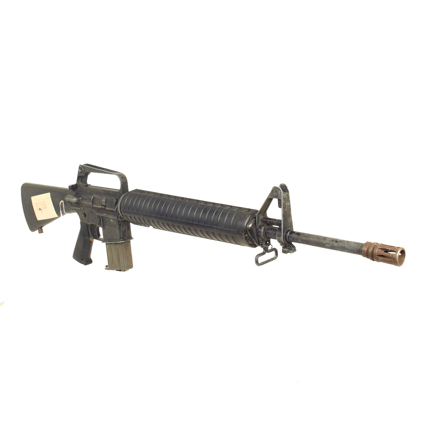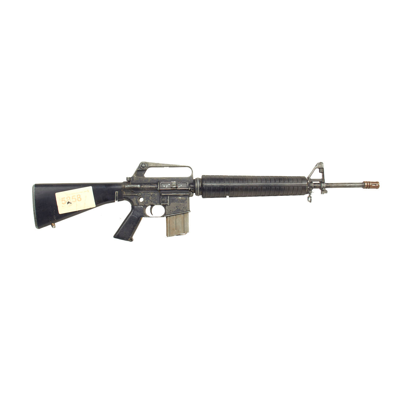 Original Item: Only One Available. This is a full scale metal replica non-firing prop M16 as used in the Hollywood film “Courage Under Fire” (1996). This was acquired from the Ellis Props and Graphics liquidation auction. Ellis was the oldest and the largest Prop Houses in the World until it went our of business in the early 2000s. The original ELLIS AUCTION LABEL IS STILL ATTACHED to the butt stock of this prop gun and reads DAY 5, LOT 5858.