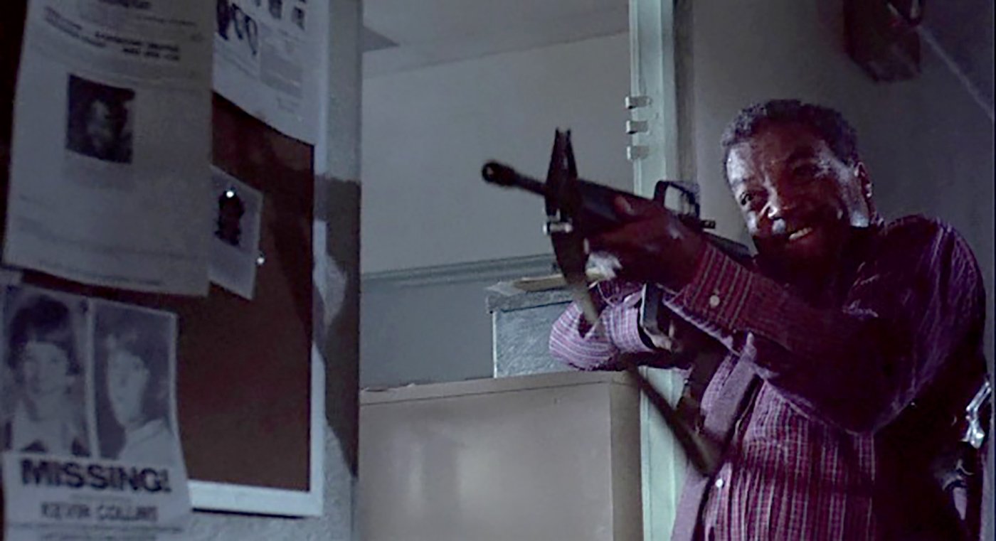 During the assault on the police station by the Terminator, several police officers head to the armory and begin passing out M16A1 rifles with 20-round magazines. Lt. Edward Traxler (Paul Winfield) is seen with an M16A1 and uses the rifle to shoot the Terminator in the back (which resulted in the Terminator turning around with his own AR-18 rifle). Detective Hal Vukovich (Lance Henriksen) opens up on the Terminator with one of his own after finding Traxler wounded by the cyborg. The Terminator returns fire with both the AR-18 and SPAS-12.