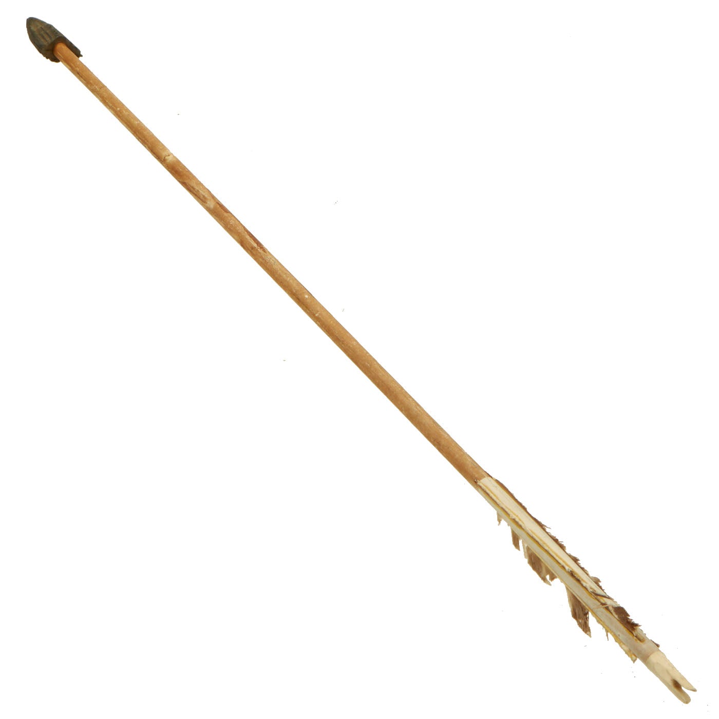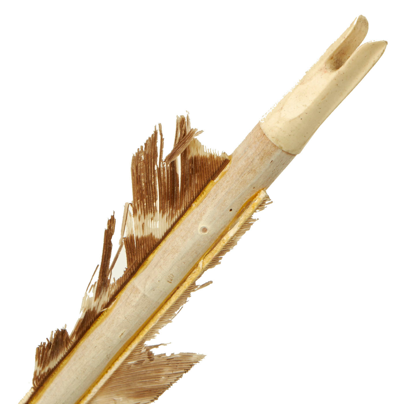 - 30 Arrows: Each quiver contains 10 arrows each. Each arrow differs in size and construction, but are mostly made of wood. Many still have the feather fletching but some are missing. The points are made of either wood, rubber or foam and some were crafted to look like stone arrowheads. Not all arrows are complete and a few are without any points at all.
