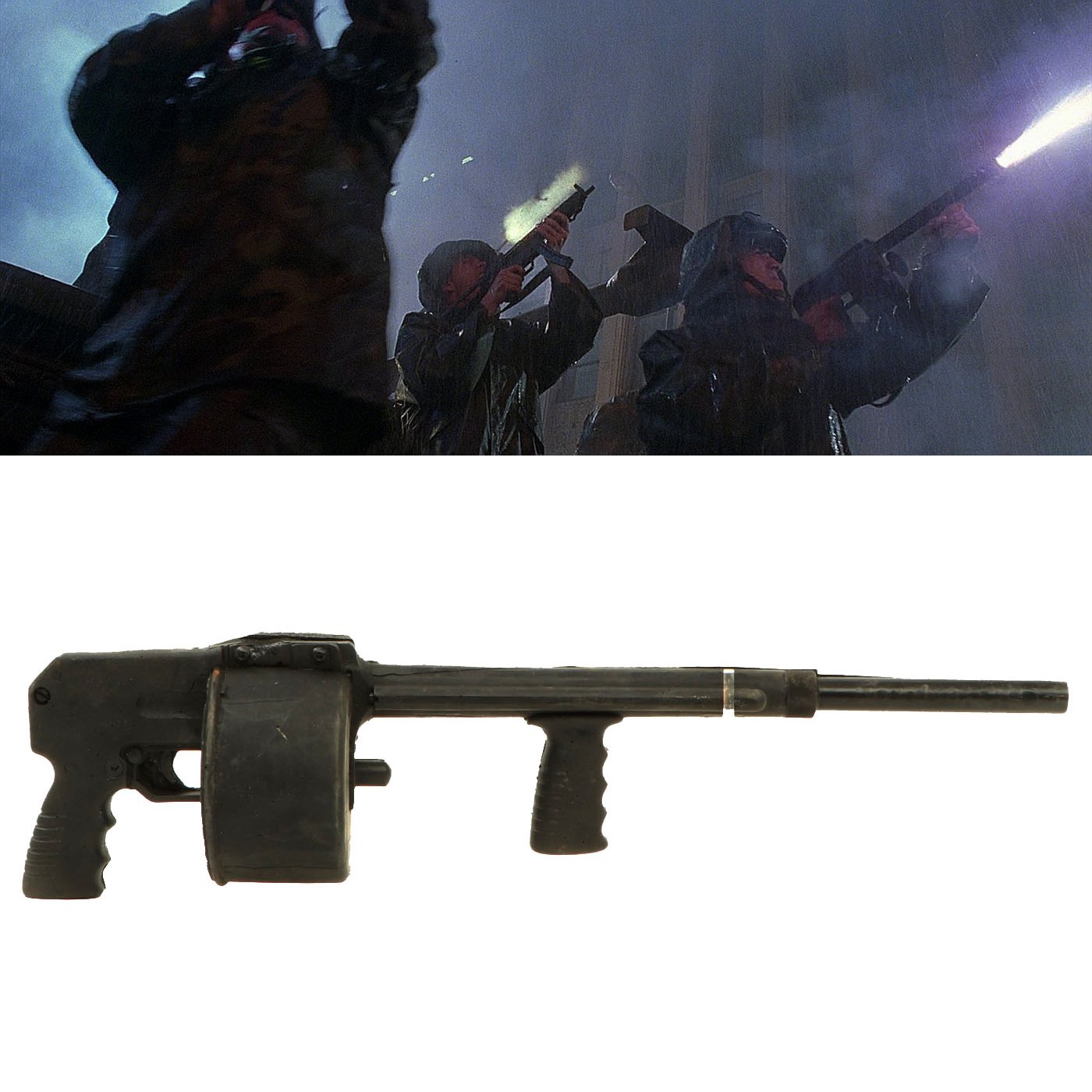 Original Item: Only One Available. This is a full scale rubber replica non-firing prop SWD/Cobray Street Sweeper shotgun as used in the Hollywood film Godzilla (1998). This was acquired from the Ellis Props and Graphics liquidation auction. Ellis was the oldest and the largest Prop Houses in the World until it went our of business in the early 2000s.