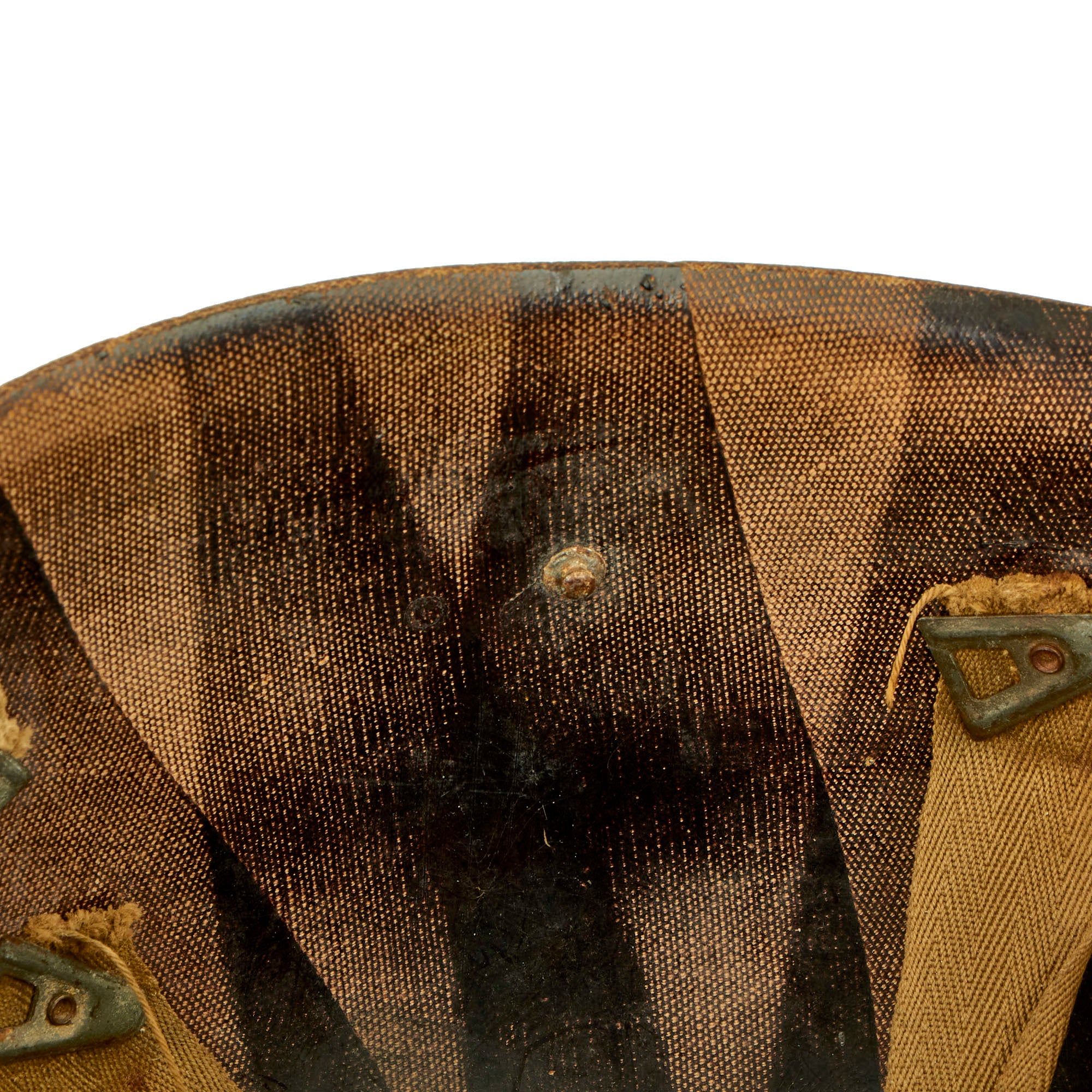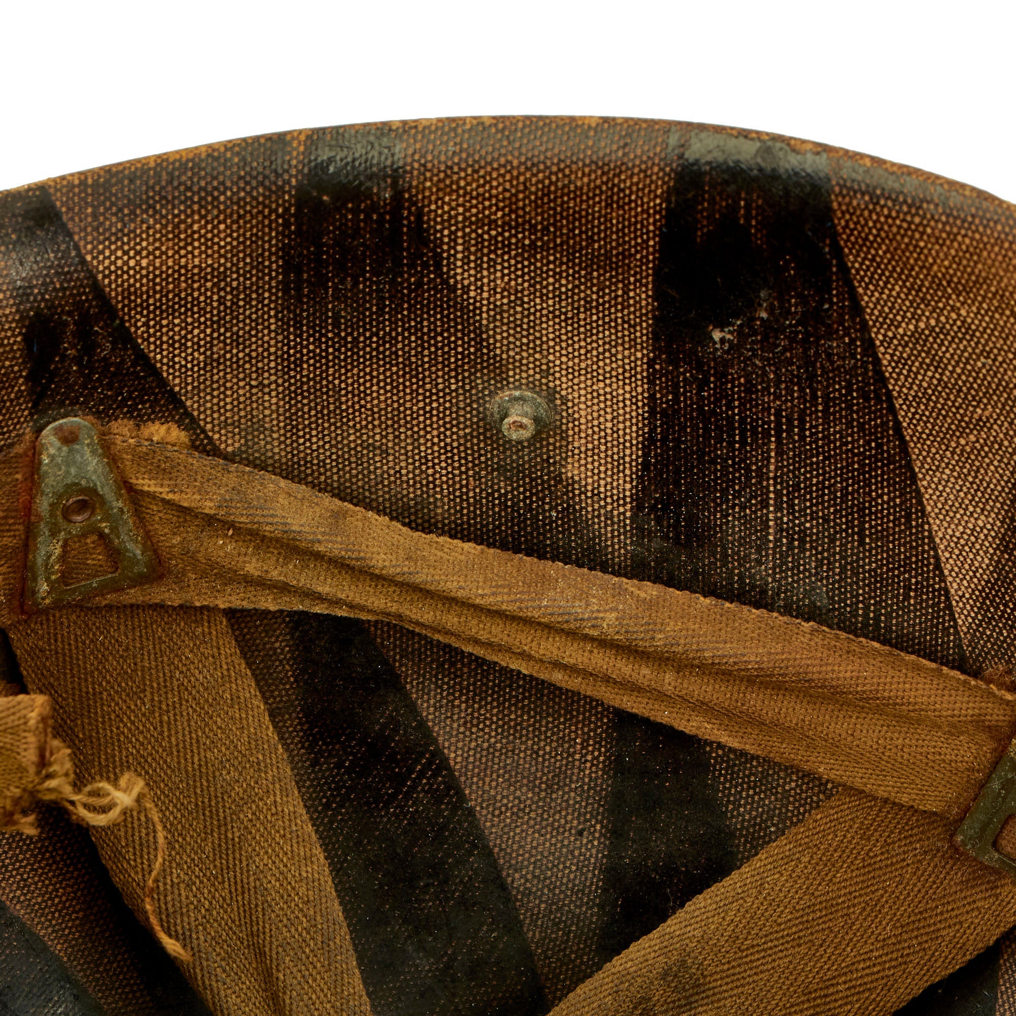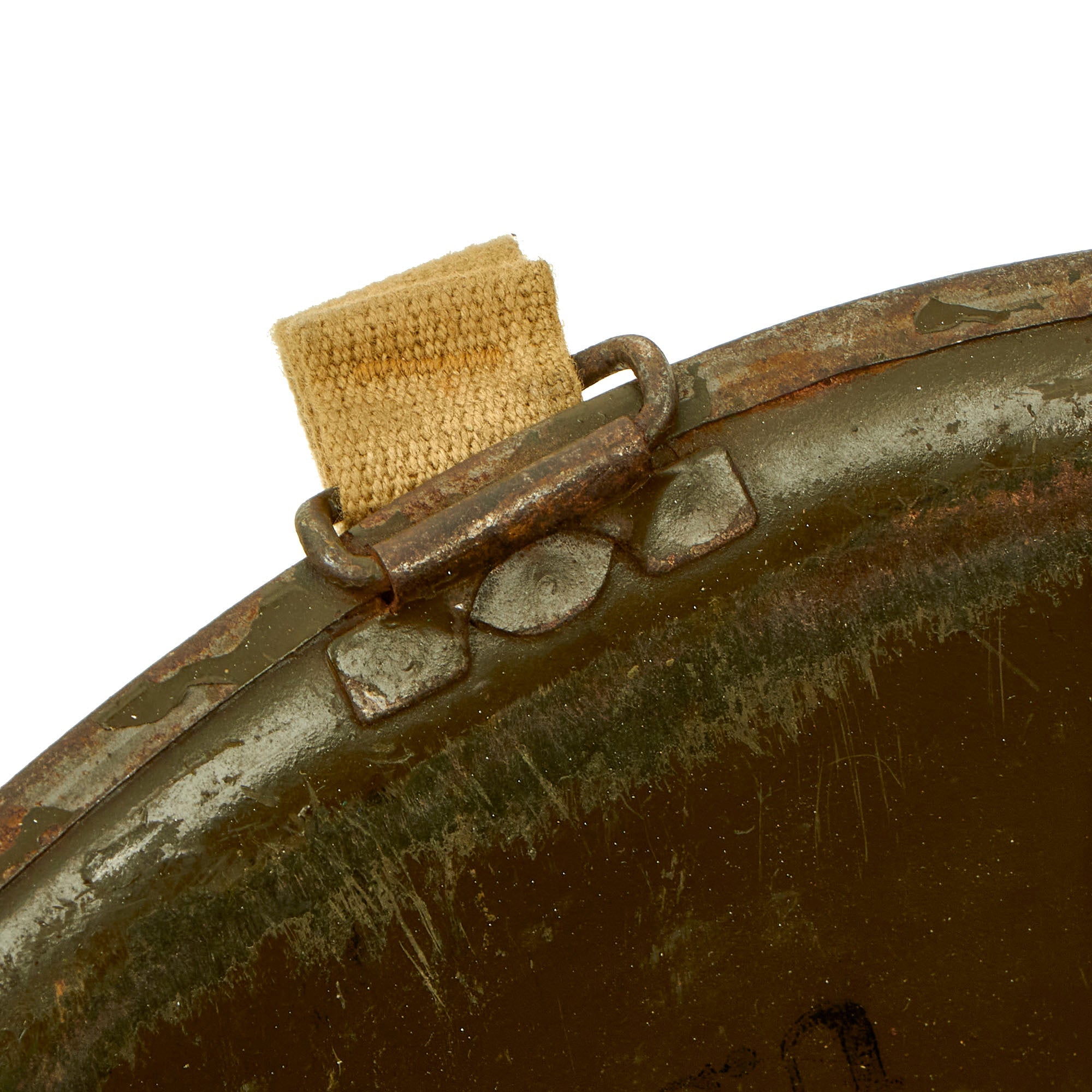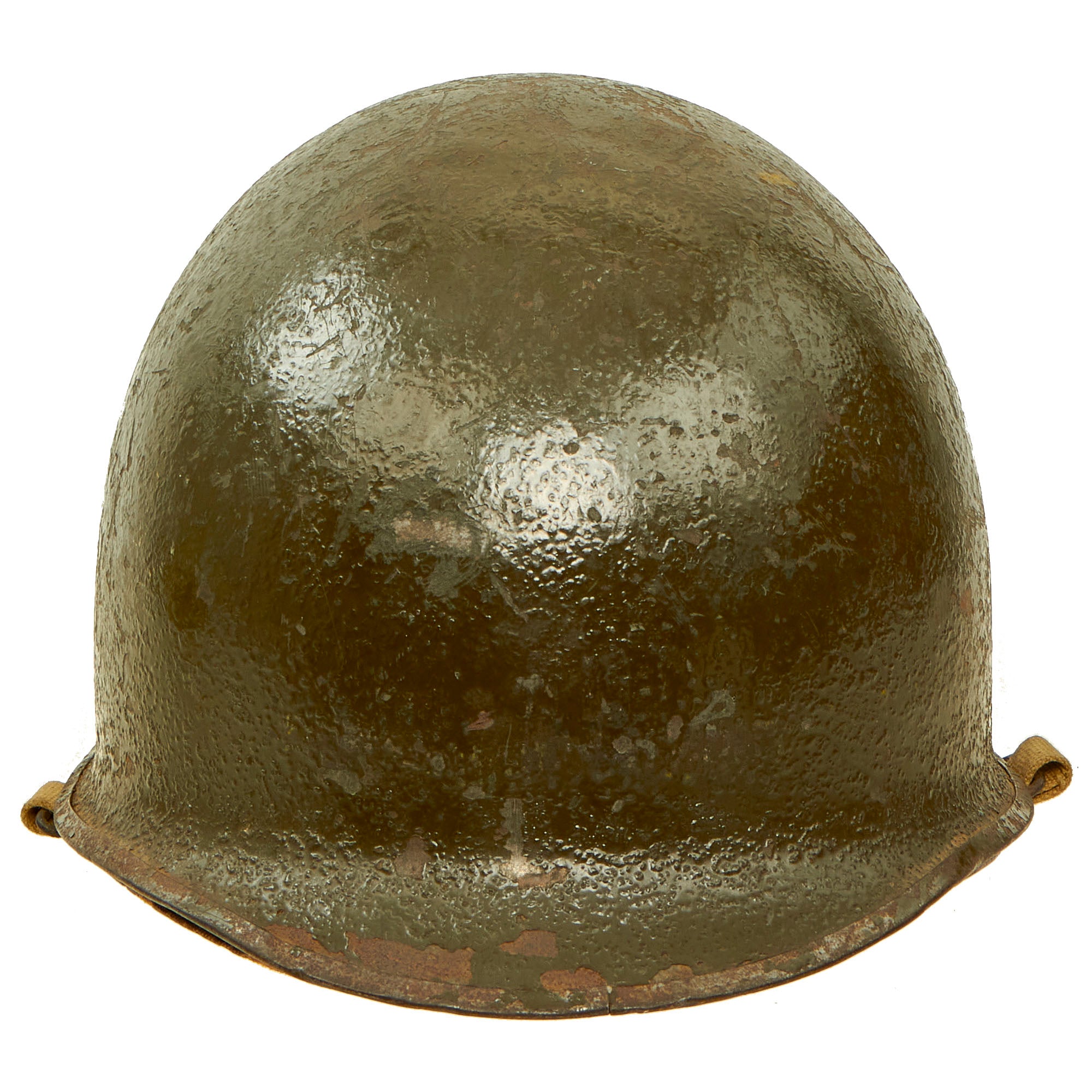 There is unfortunately no provenance we can provide for this helmet, aside from the source from which it came, which is why we are able to offer it at such an attractive price. It should be noted that when these items were originally sold back in 1998, none of these items were accompanied by a Certificate of Authenticity. They were originally sold on the reenactor market, as reenactors at the time, it was believed, would make the ideal customer who could repurpose these goods. The inside of the shell does not have a visible “SPR” stamp but it does have the appearance of having multiple markings on the interior of the shell.