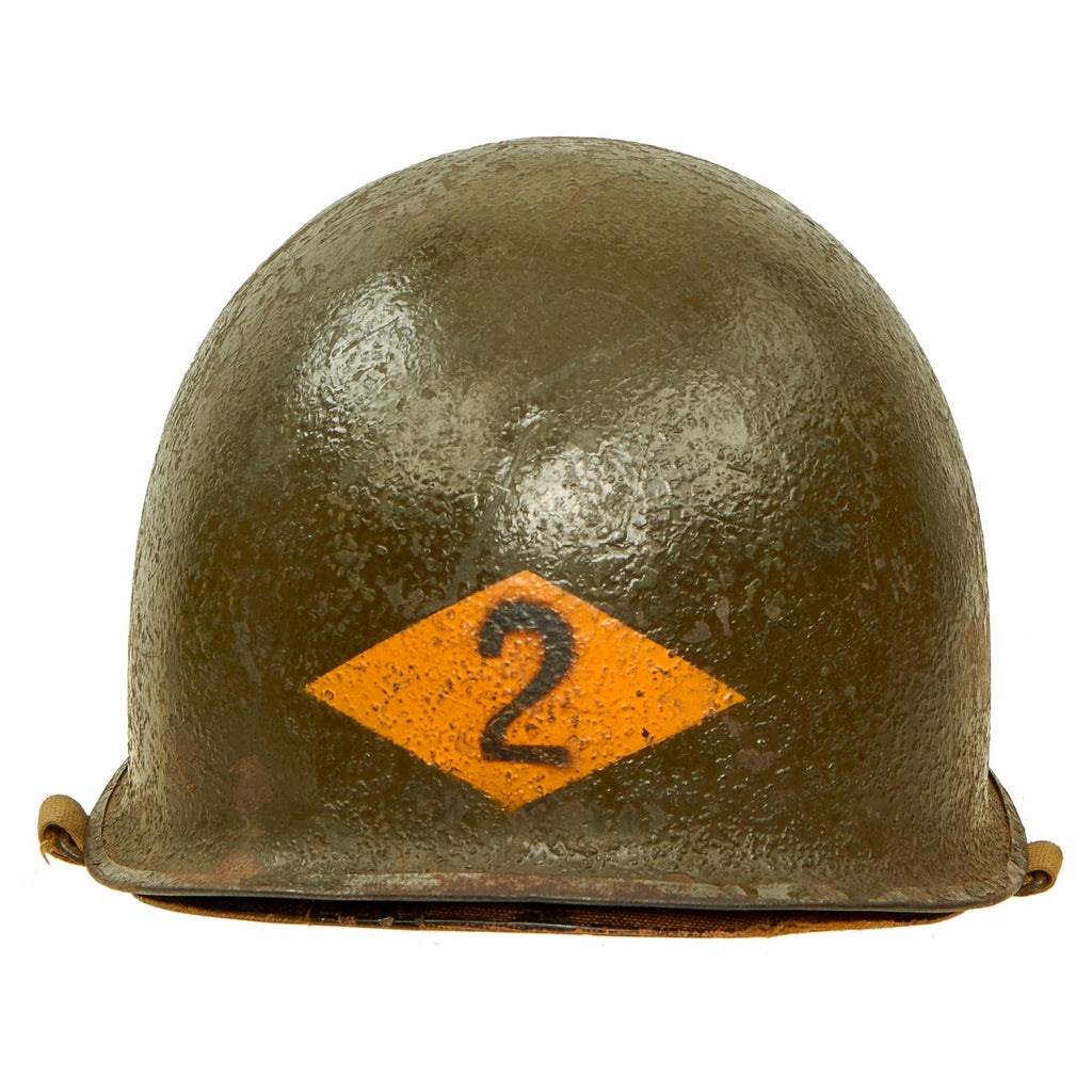 Original Item: Only One Available. This is one of the original prop helmets used during the filming of "Saving Private Ryan". There are not any original property department stamps on the inside of the shell, and the outside was painted with <2> 2nd Ranger Battalion markings on the rear. The shell itself is a copy of an original WWII Swivel Bale. Like most helmets used in the production, a variety of shells and liners were used. Liners used were a wide variety, ranging from original WWII production, Vietnam era, 1980s, foreign clones, etc. The particular liner in this helmet that was used was an original WWII era CAPAC liner.